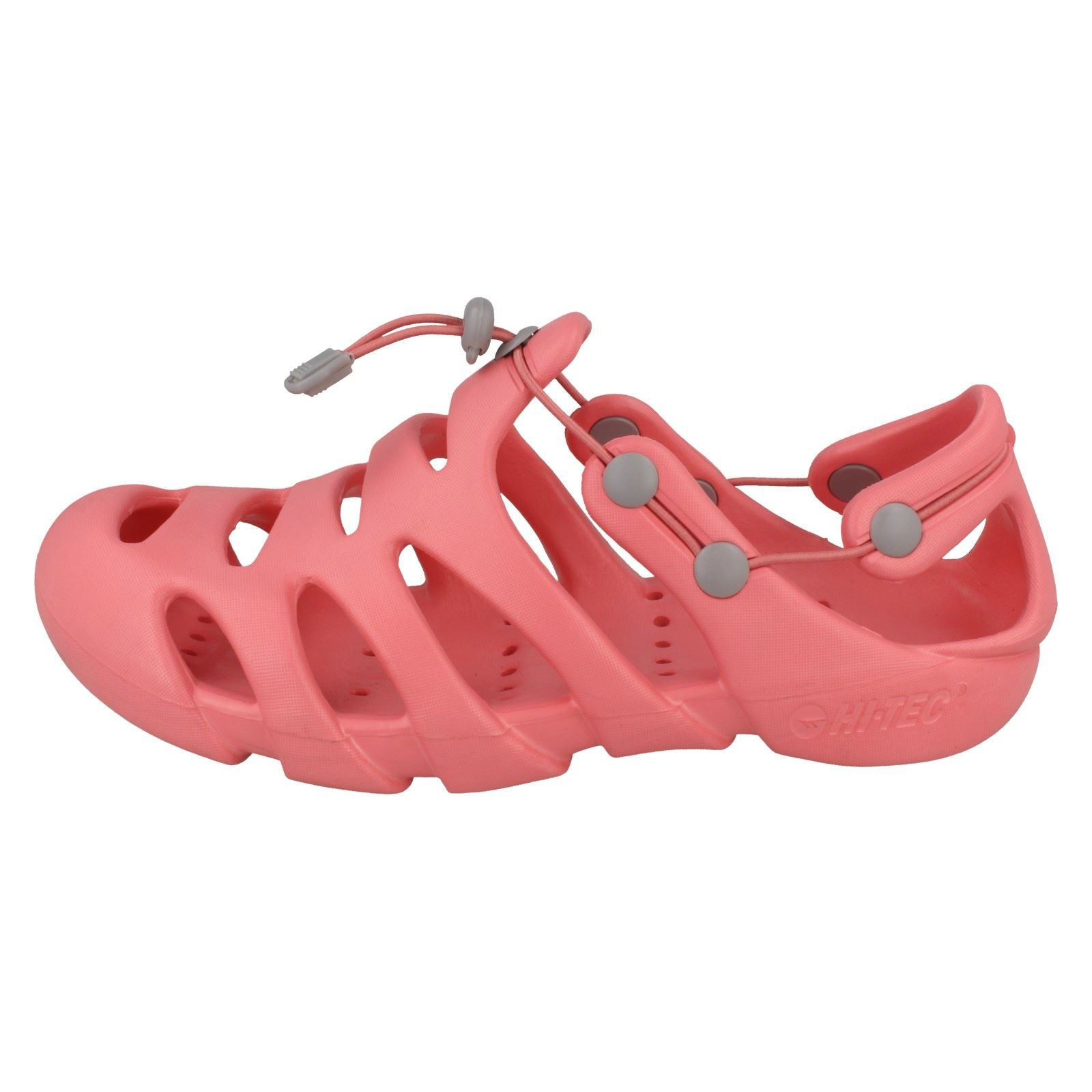 Hi Tec's Hydro Jr beach shoes unleash waterproof freedom for little adventurers! Watch them splash, roam, and explore without fuss. These slip-on sandals feature an ultra-light EVA construction, cradling feet in cushioned comfort from the sand to the street. Perfect for spontaneous seaside trips or backyard play. Let their summer journey begin!
