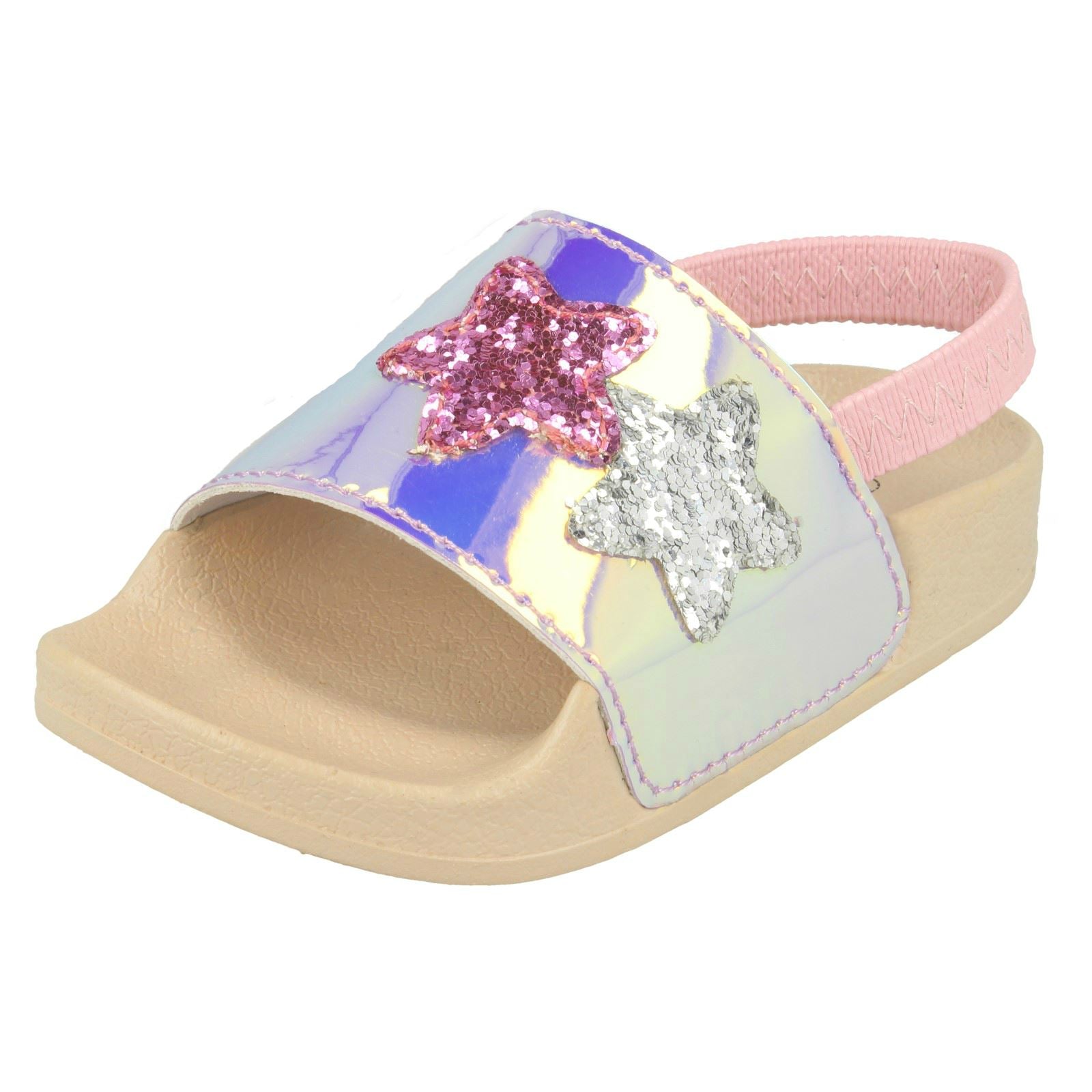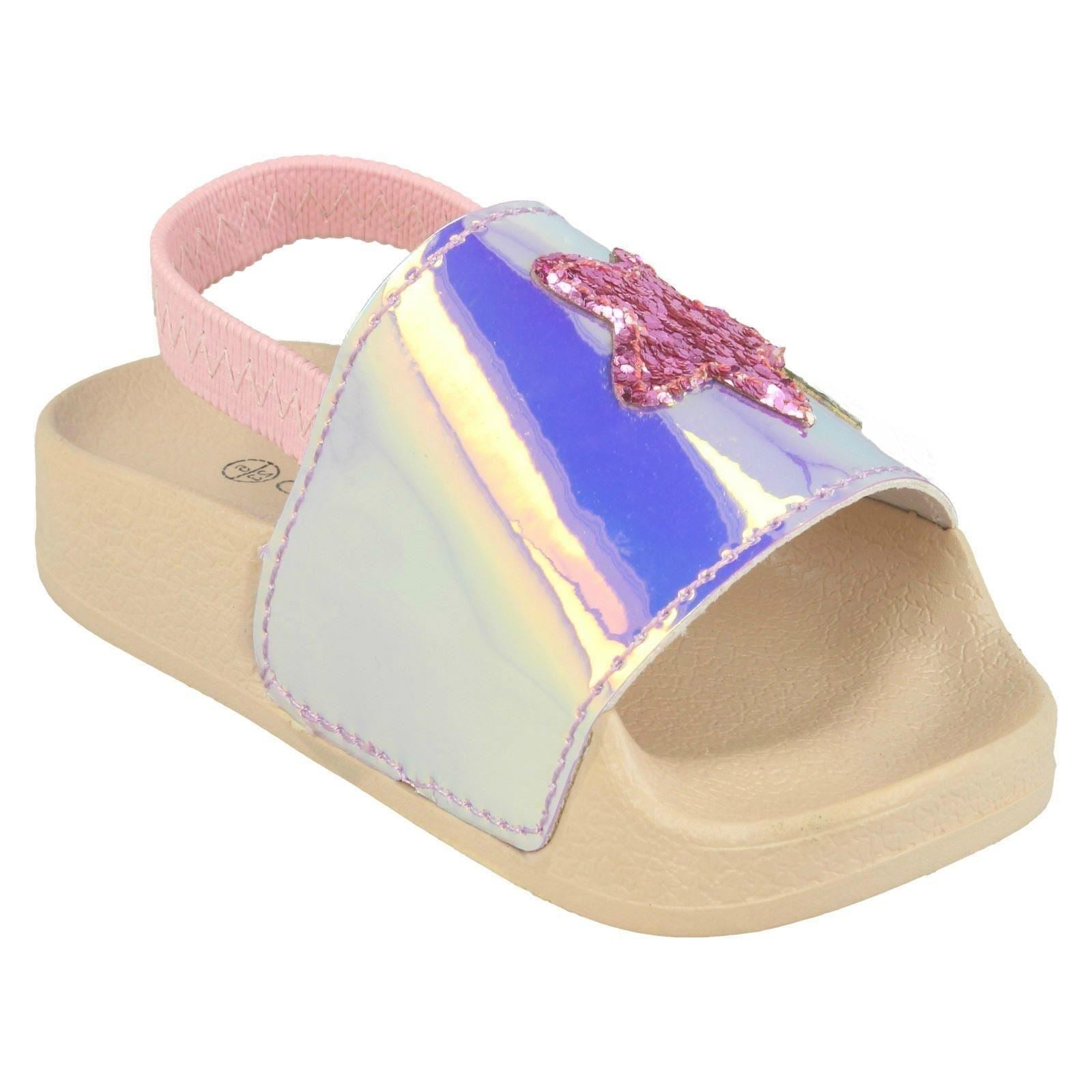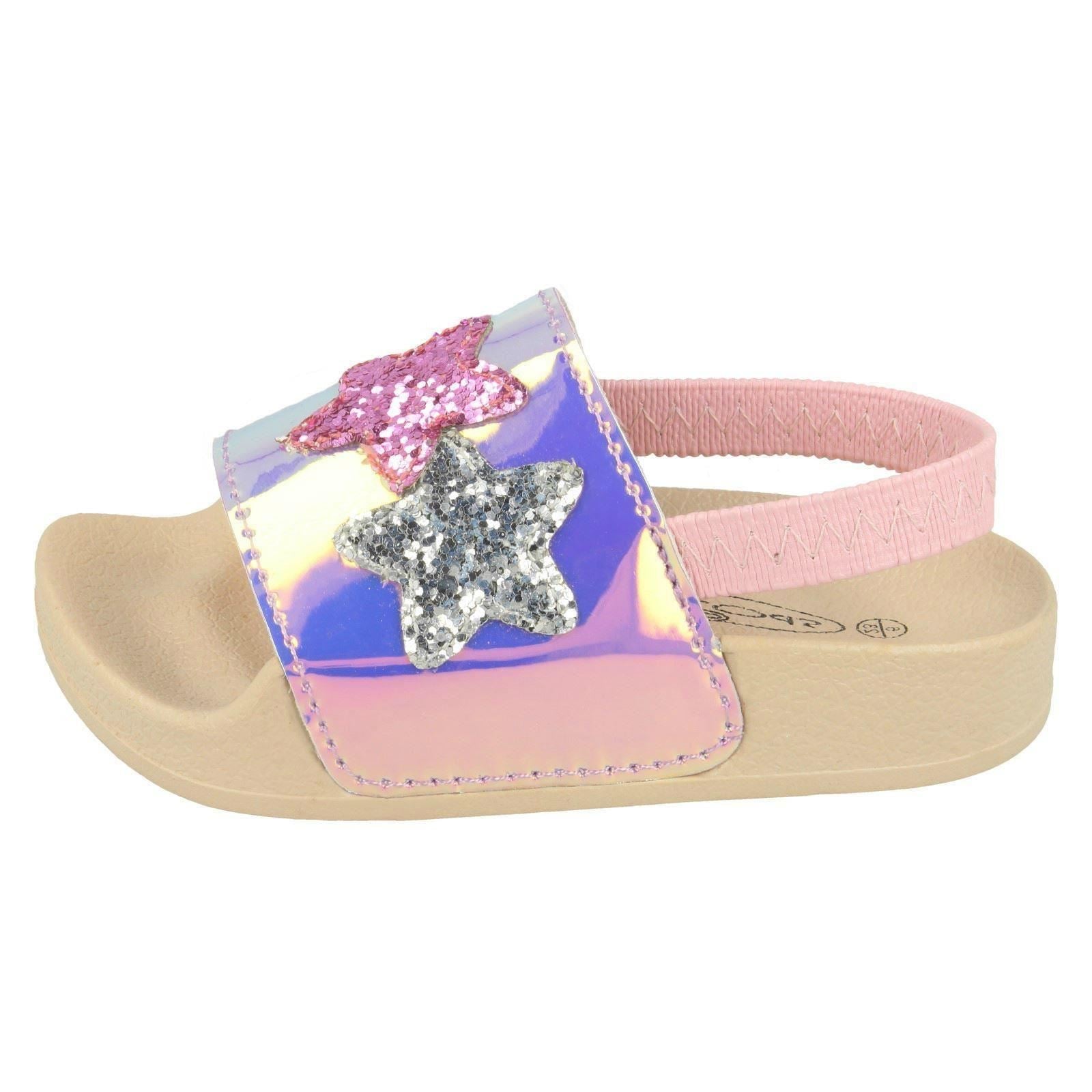 Girls Spot On Slingback Sliders With Glitter Star Design H0310