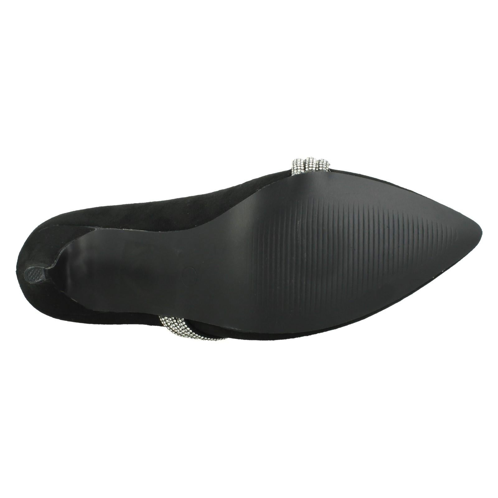 Ladies Anne Michelle High Heel Pointed Toe Court Shoe with Diamante Twist Knot F90118