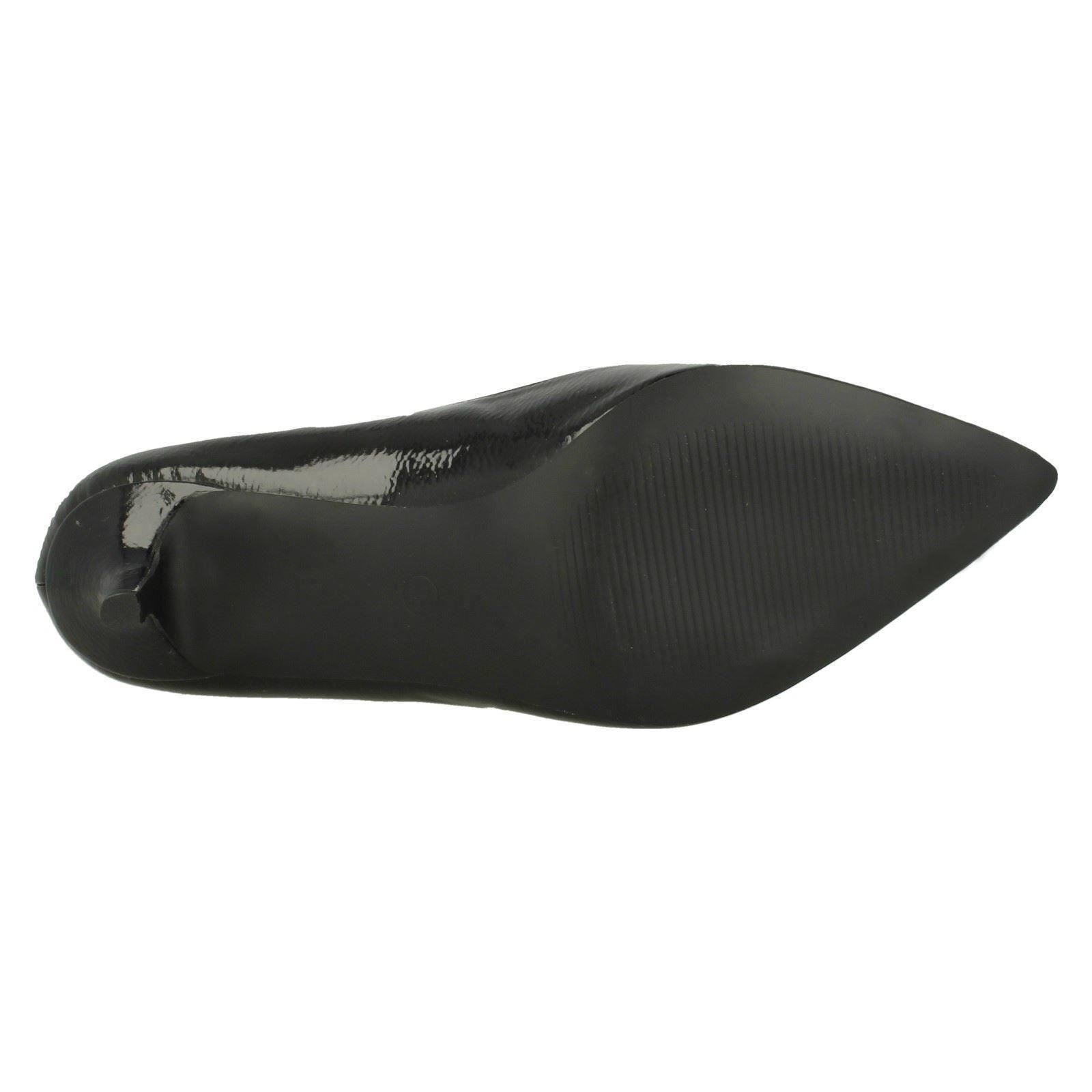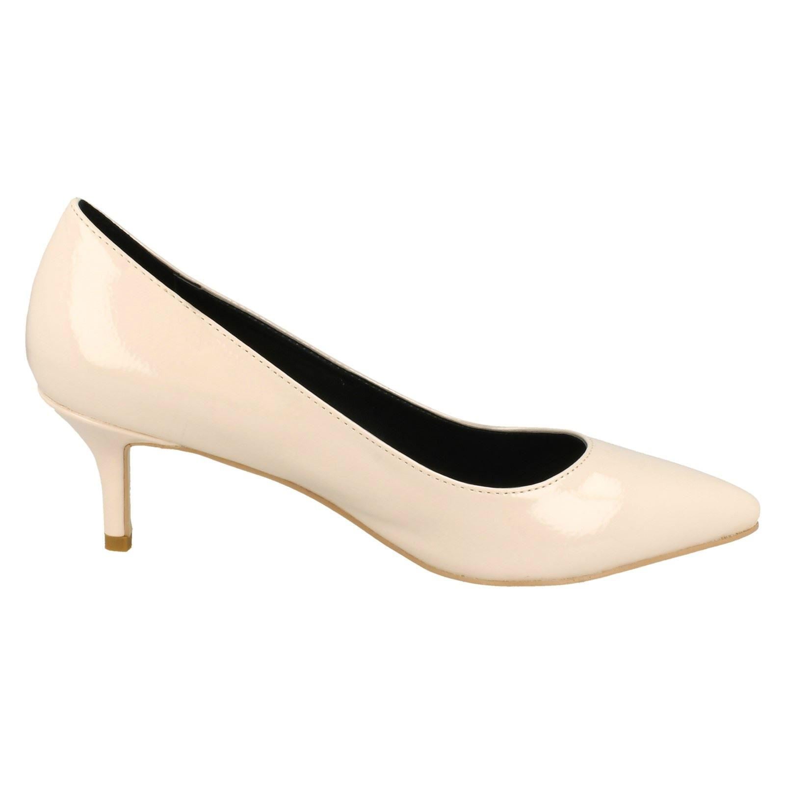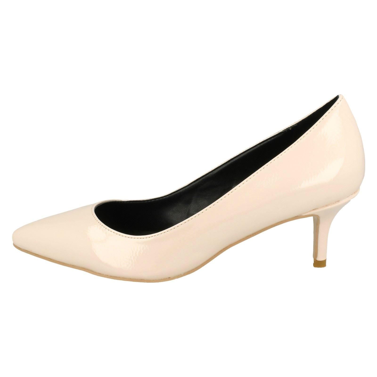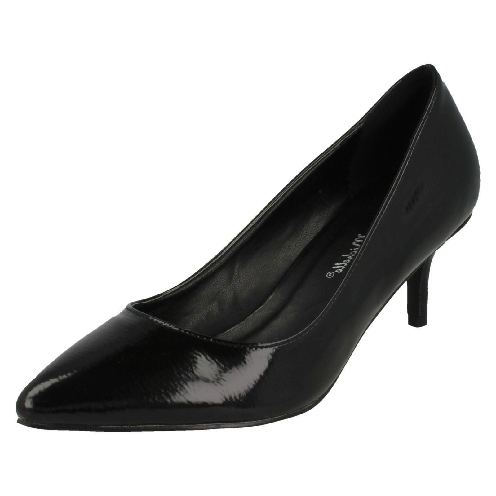 Ladies Anne Michelle Kitten Heel Crinkle Patent Court Shoes