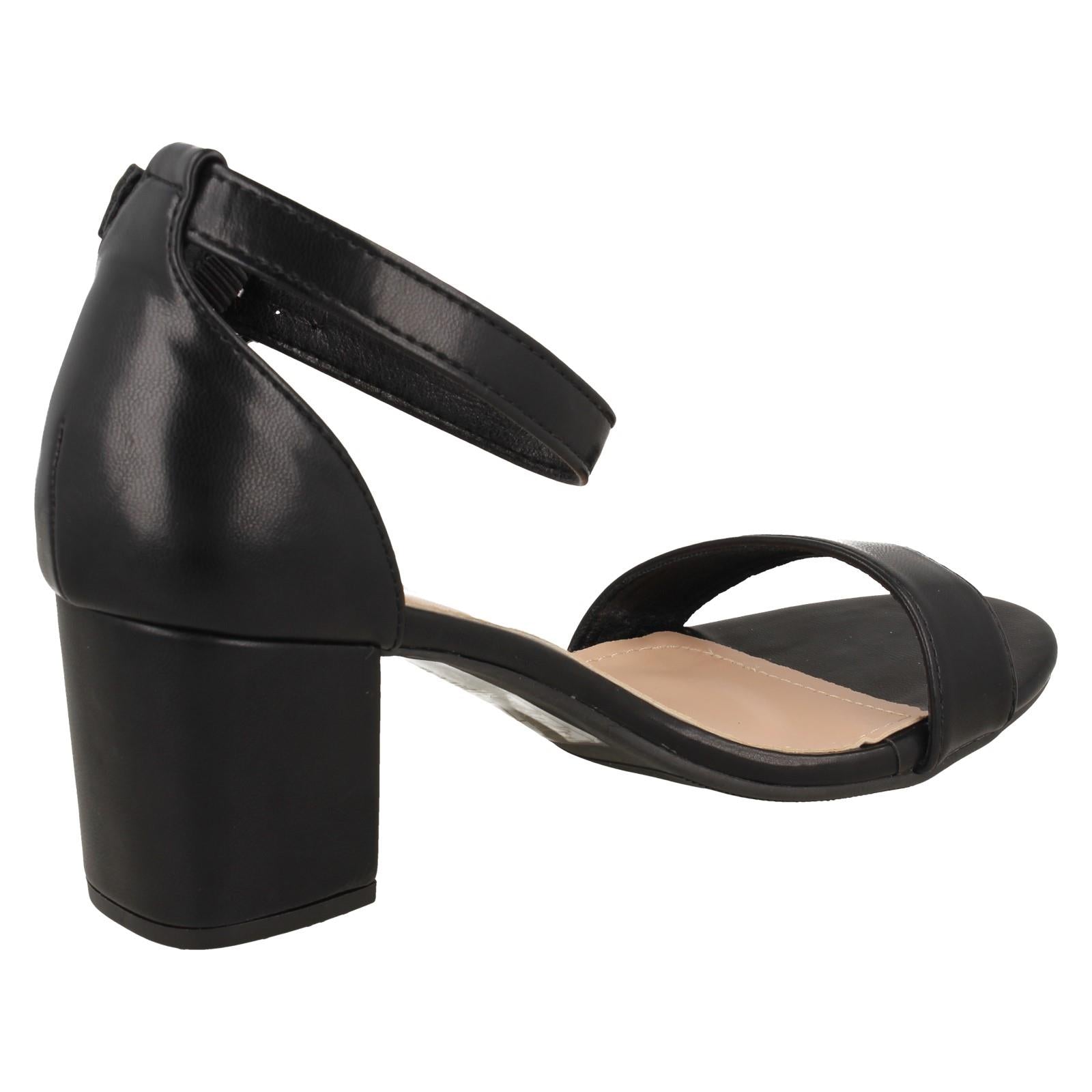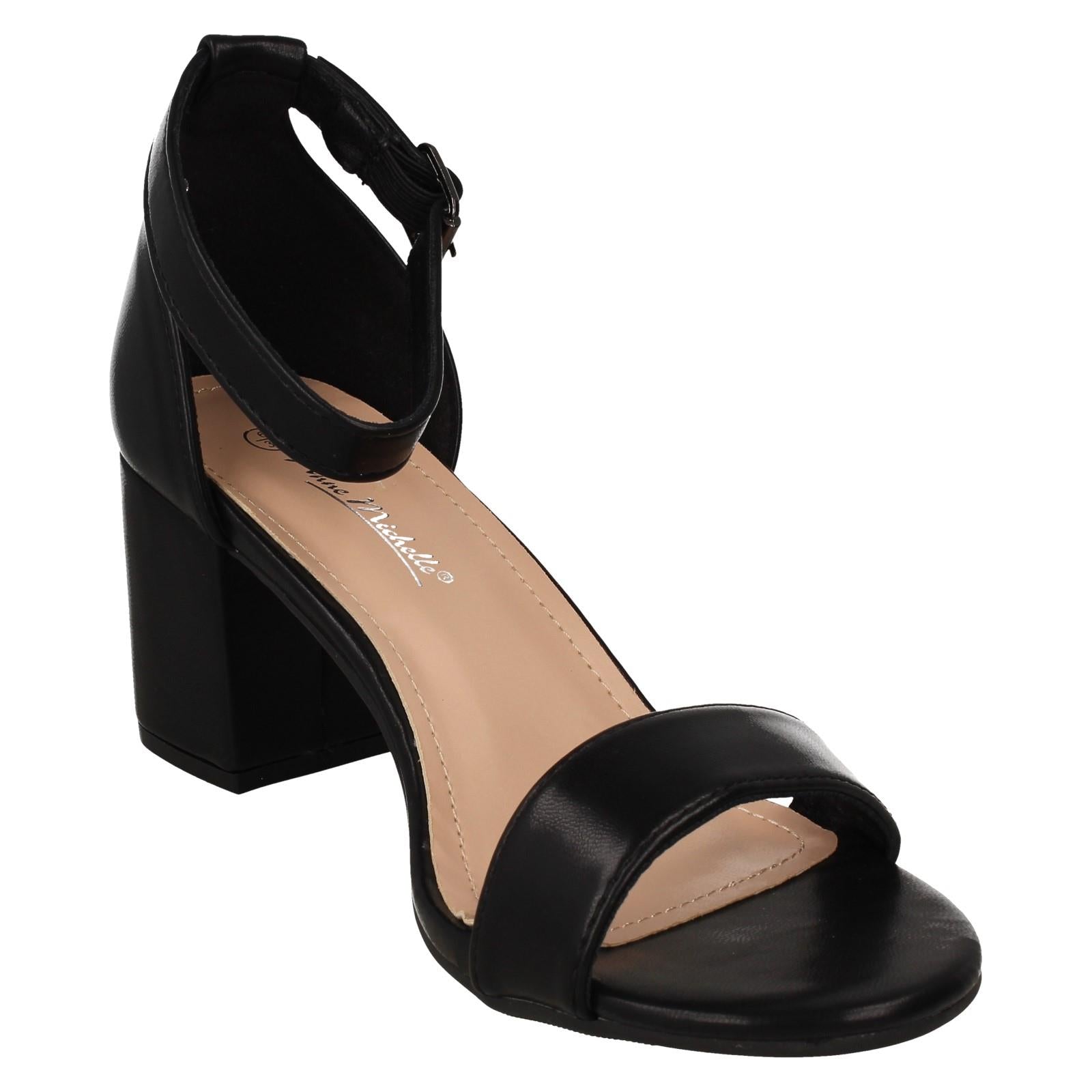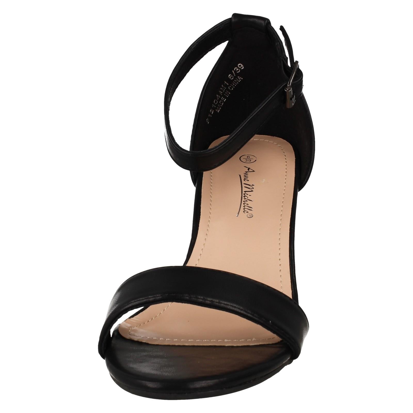 Ladies Anne Michelle Mid Block Heel Buckle Ankle Strap Wide Fitting Sandals F12104