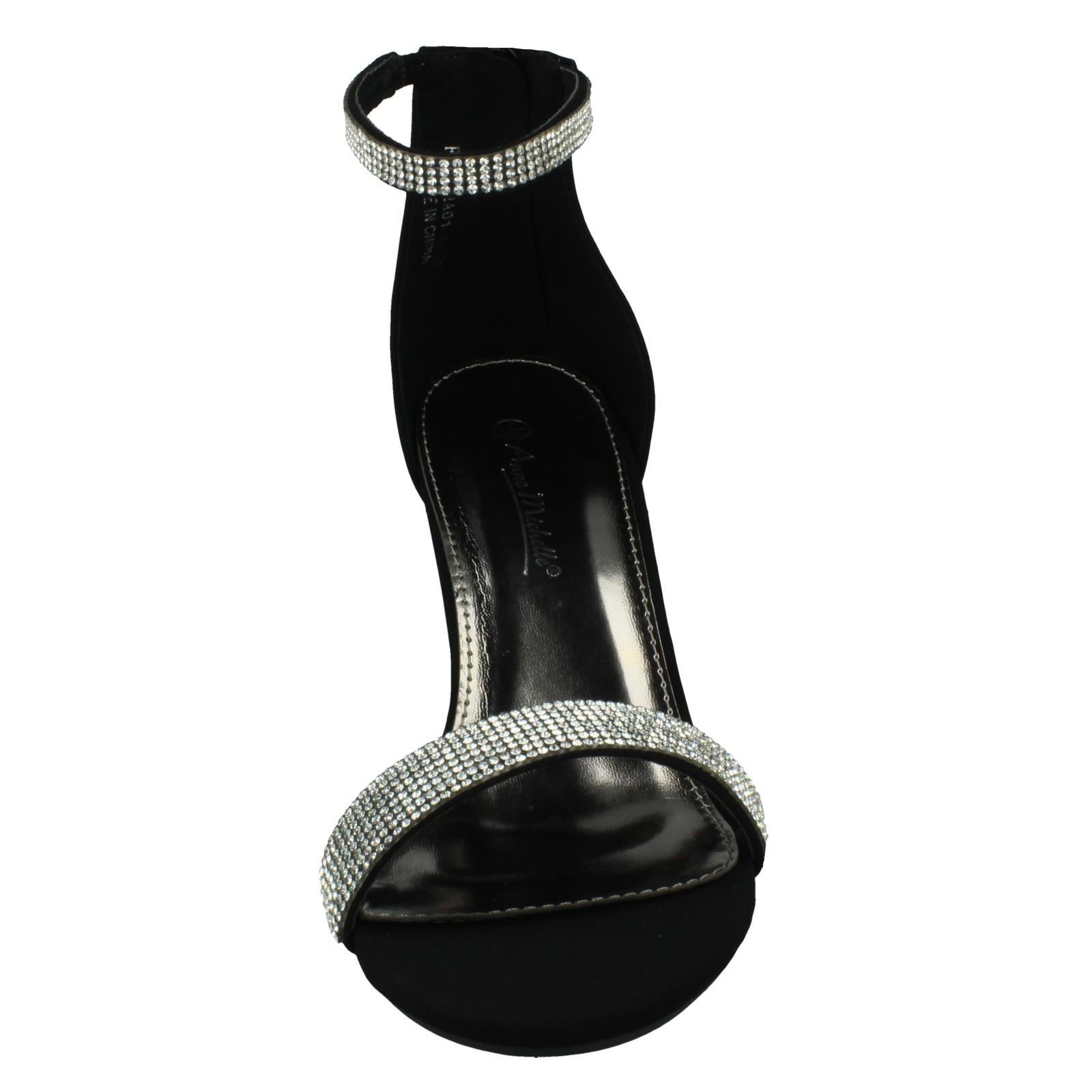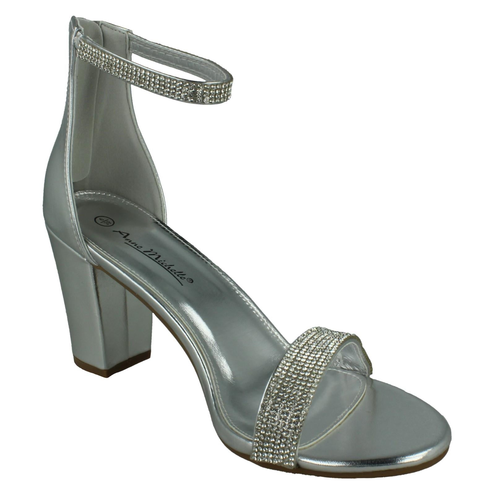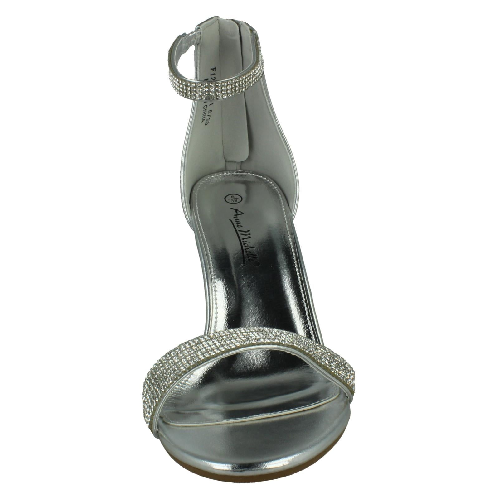 Ladies Anne Michelle Wide Fit Block Heel Diamante Mule Sandal F12052