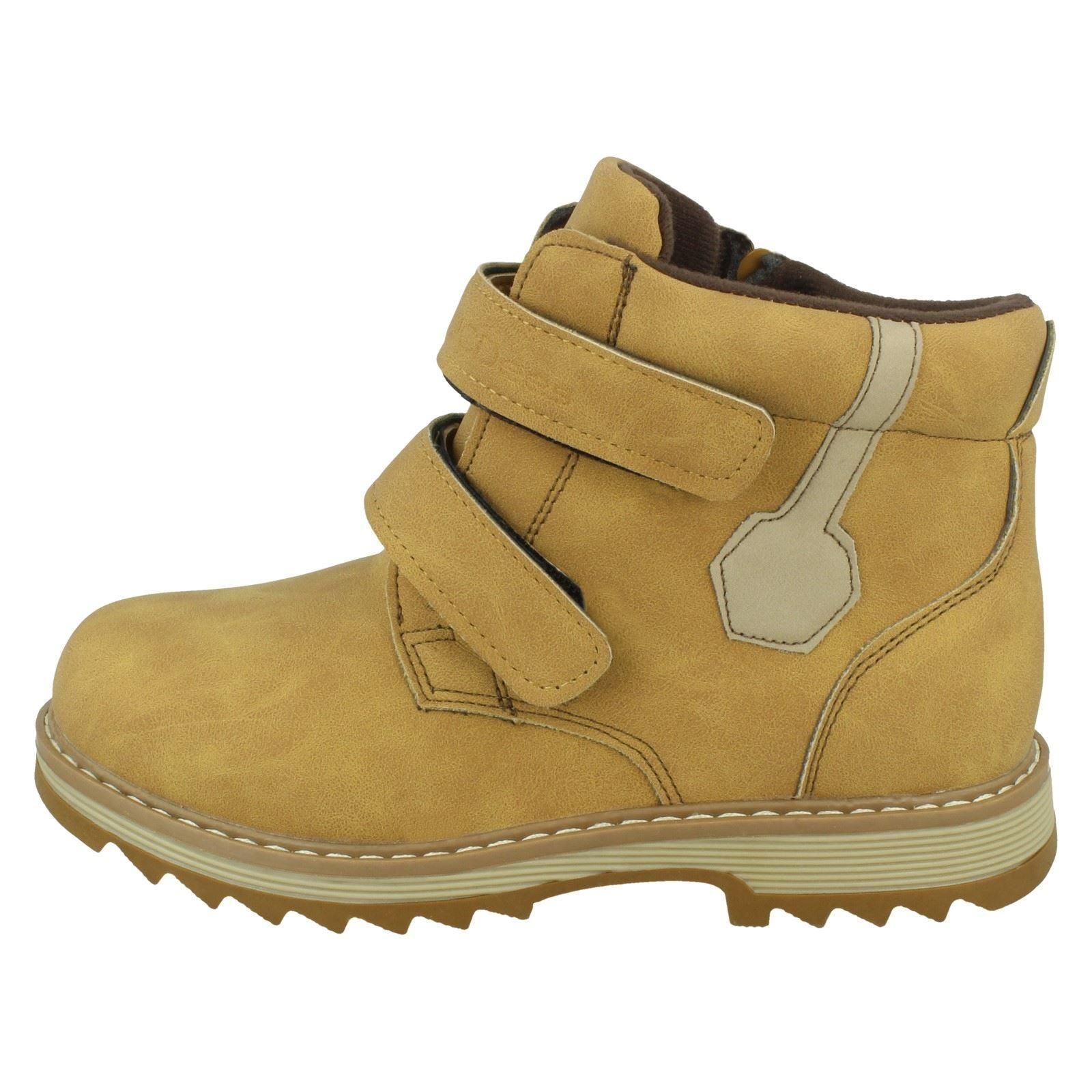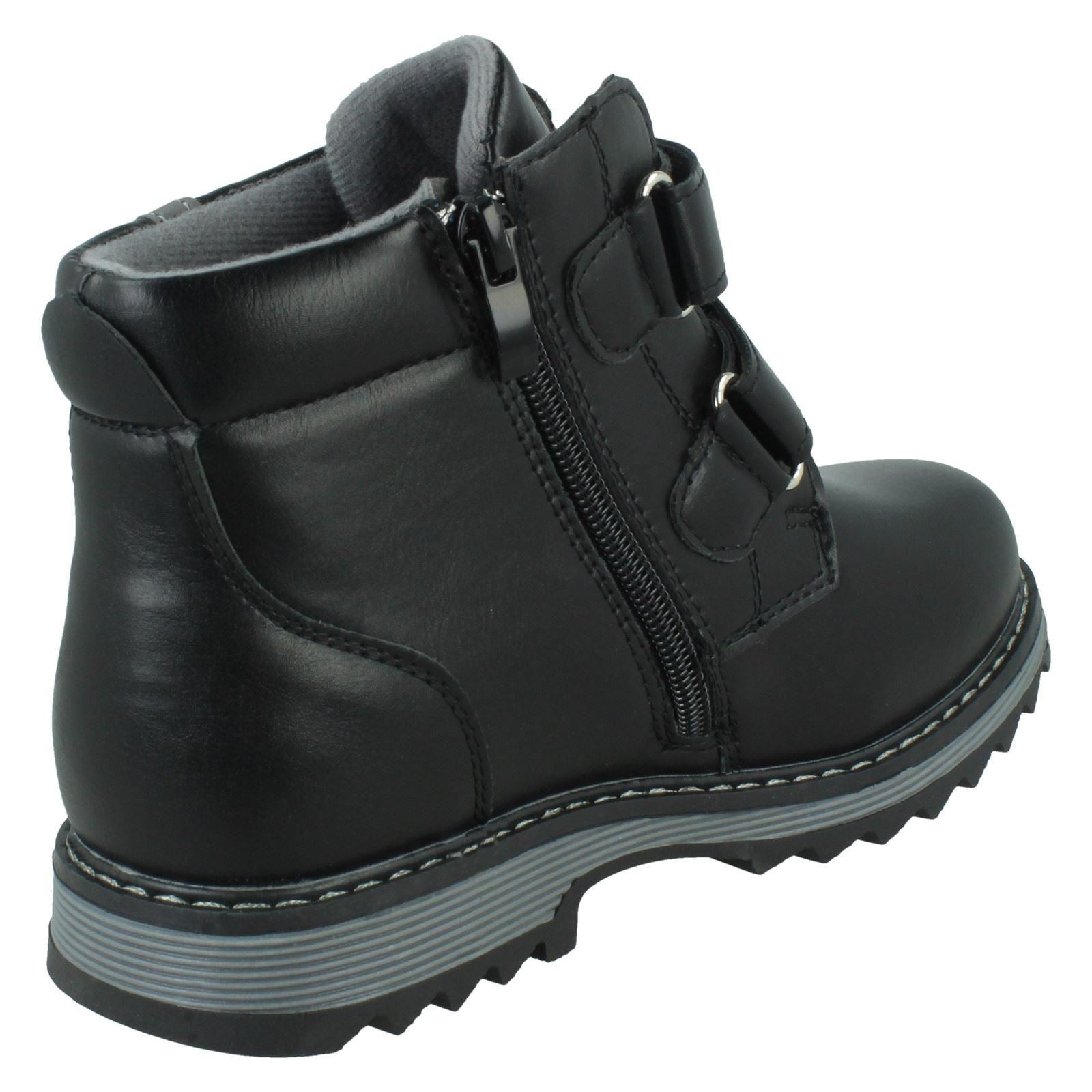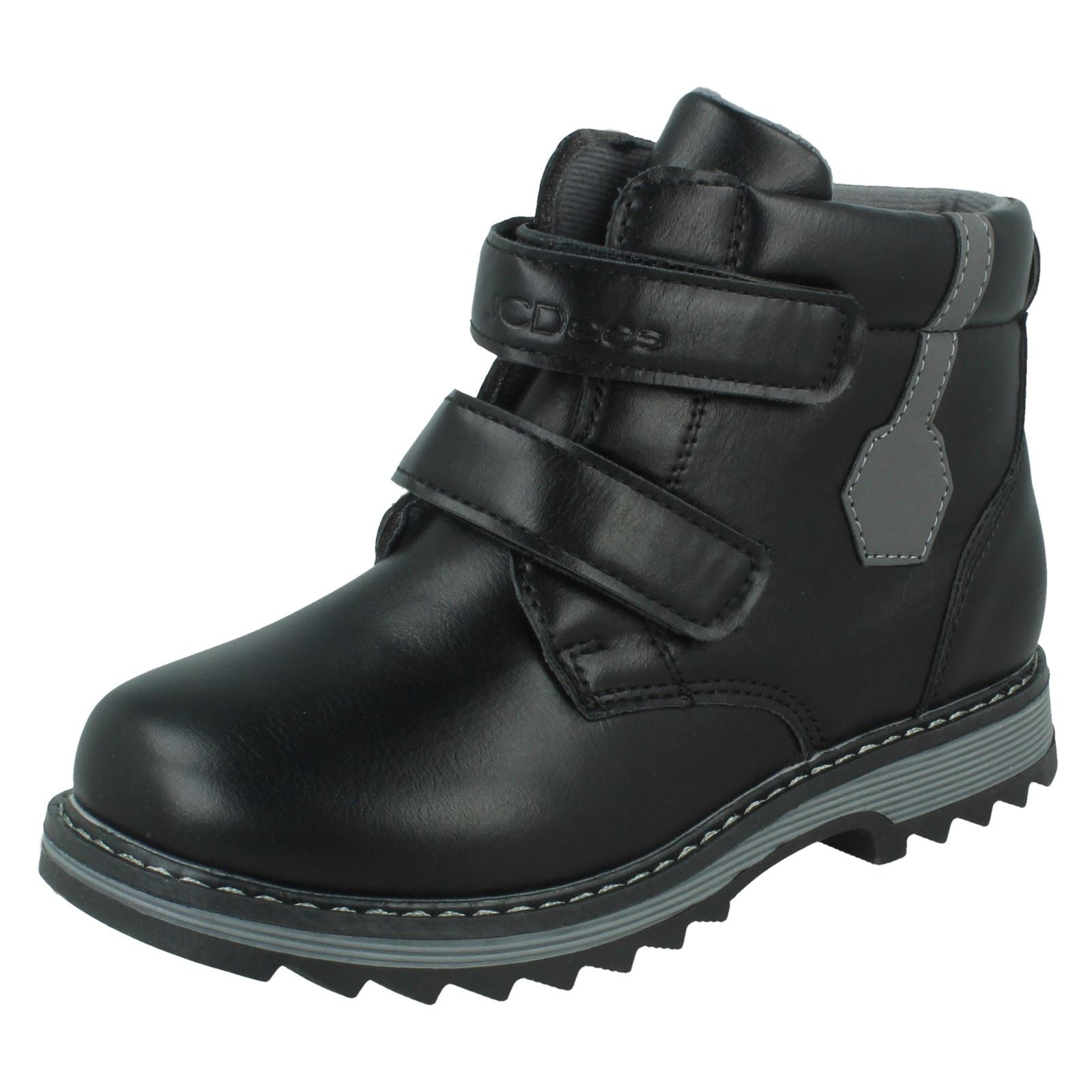 JCDees Boys Ankle Boots lock out the cold and keep feet comfy for every adventure. Let him stomp and explore all winter long in these durable boots. The quick hook and loop fastening means he can strap up fast and run free. A tough synthetic upper and soft textile lining cradle his feet while the sturdy sole grips any terrain. Prepare him for play, whatever the weather.