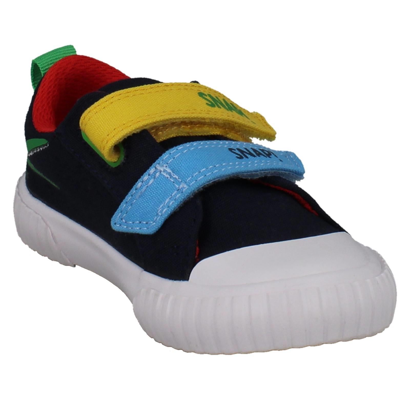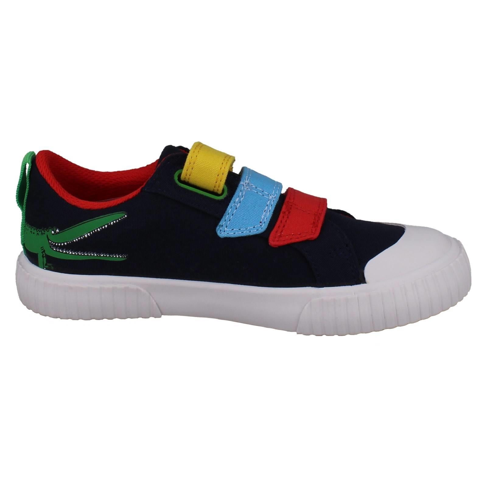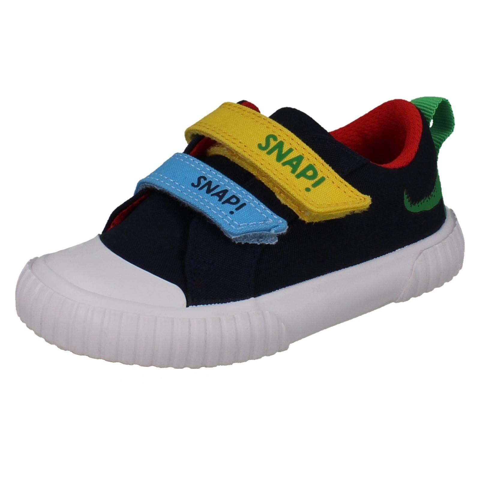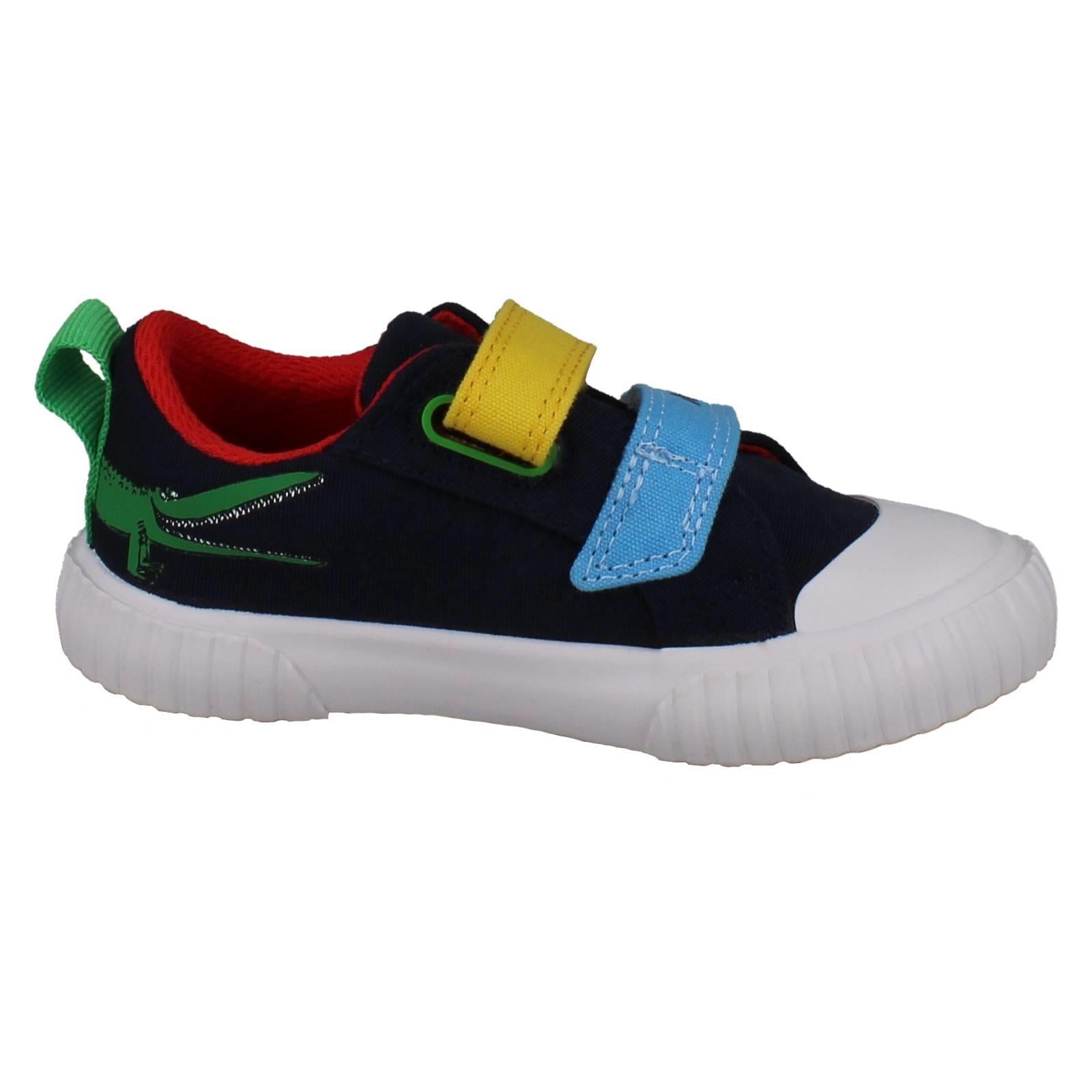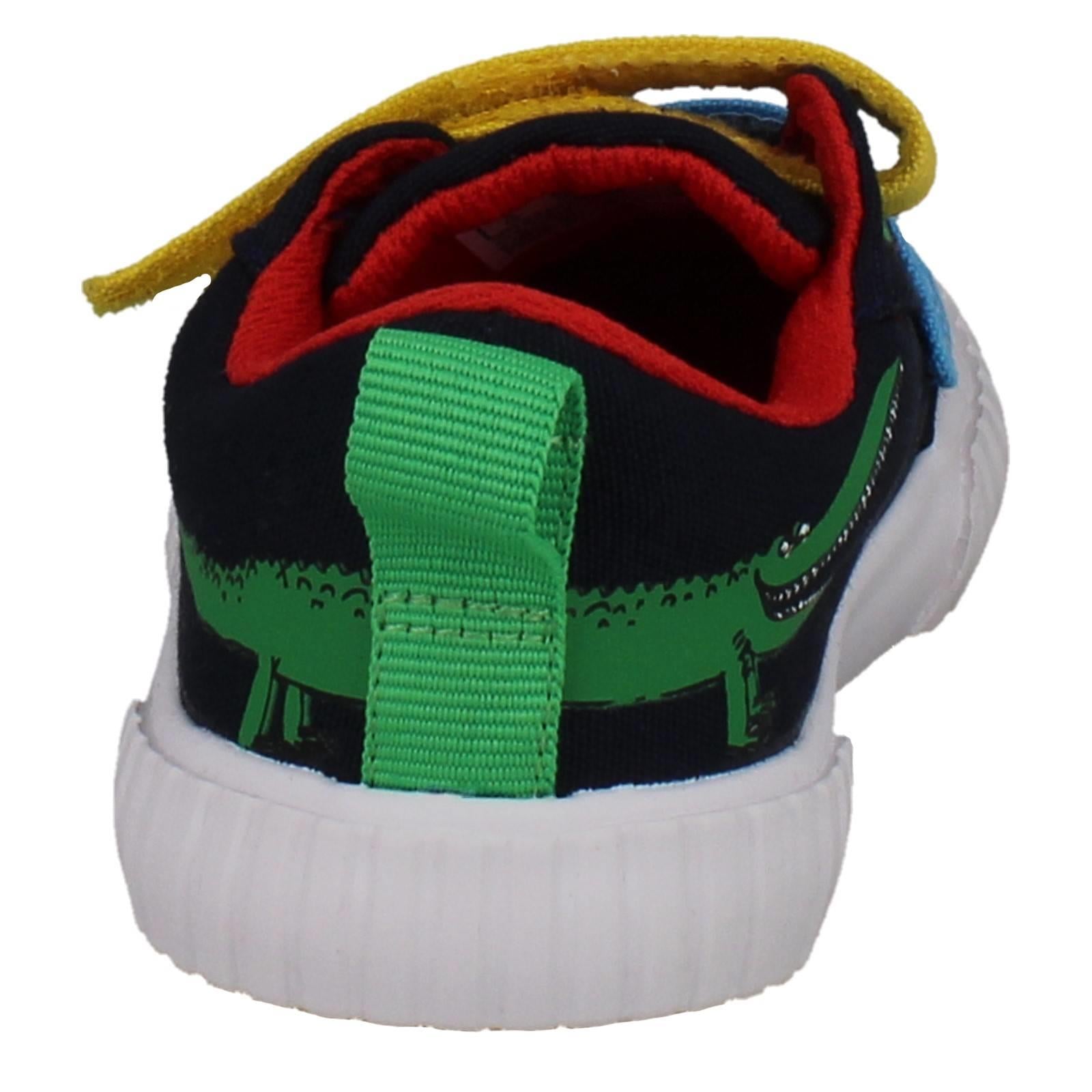 Clarks boys' canvas shoes invite imaginative play! Unleash 'The Enormous Crocodile' adventures with every step. Textile uppers cushion growing feet while the hook and loop fastening secures fast movements, perfect for playground exploration. Watch them SNAP! MUNCH! CRUNCH! through their day in these colourful, action-ready trainers. Give them the freedom to explore wilder worlds.