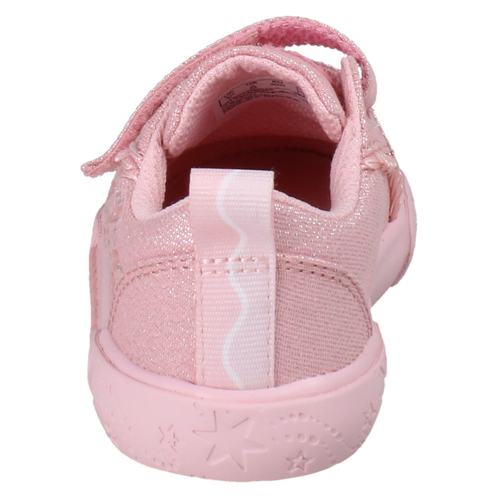 Let her sparkle through every summer adventure in these Clarks Playprints canvas shoes. These Foxing Gleam trainers combine a magical glitter-effect finish with playful sequins, ensuring she shines from the playground to the park. Built with a breathable textile upper and easy hook and loop fastenings, they empower her to dress herself and jump straight into the fun. Durable, lightweight, and full of personality for active sunny days.