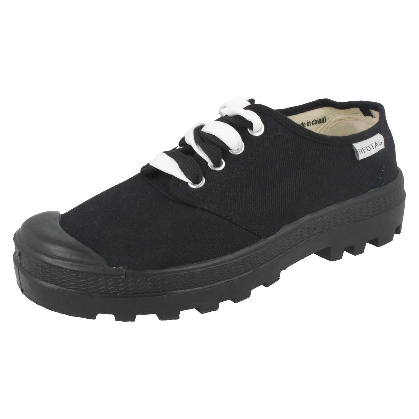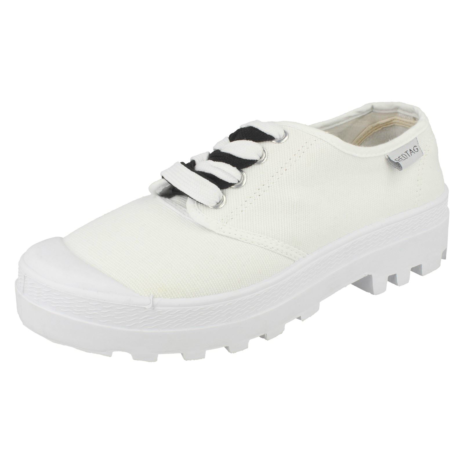 Ladies Red Tag Flat Lace Up Trainers