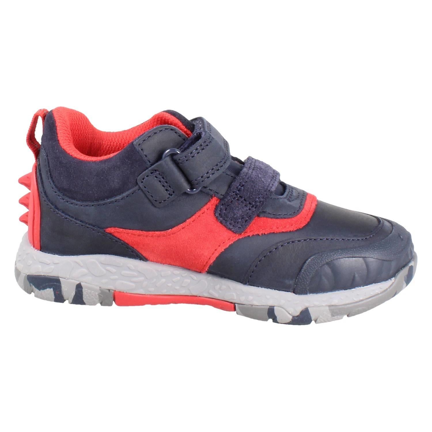 Clarks Steggy Rex ankle boots unleash prehistoric play power. Watch your adventurer stomp and explore with confidence in these waxy leather dinosaur boots. A robust synthetic sole grips terrain, while the hook and loop fastening locks in comfort. Let them conquer the playground, knowing these boots battle-proof every step.