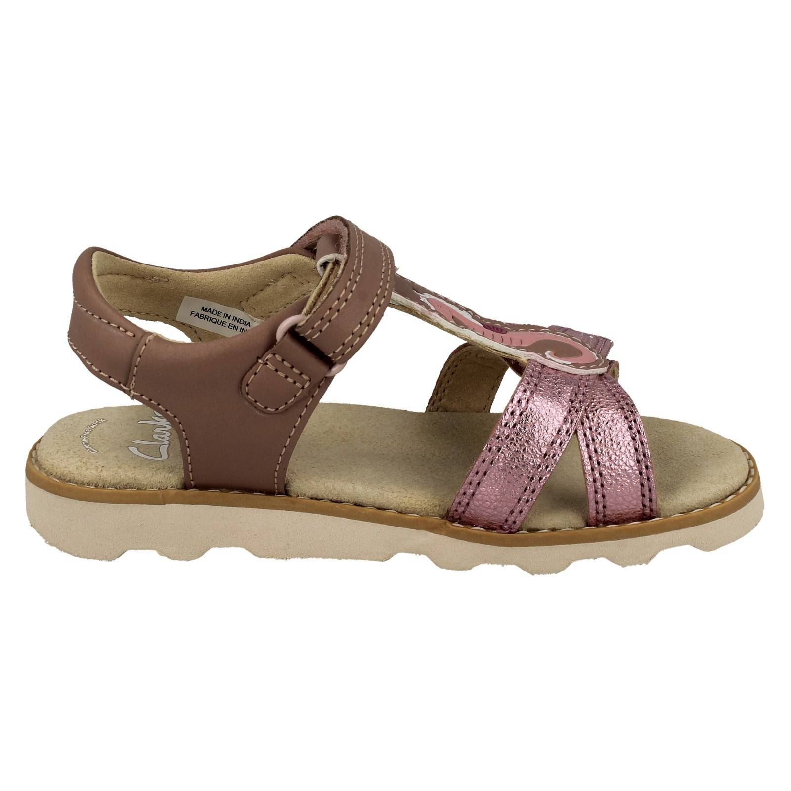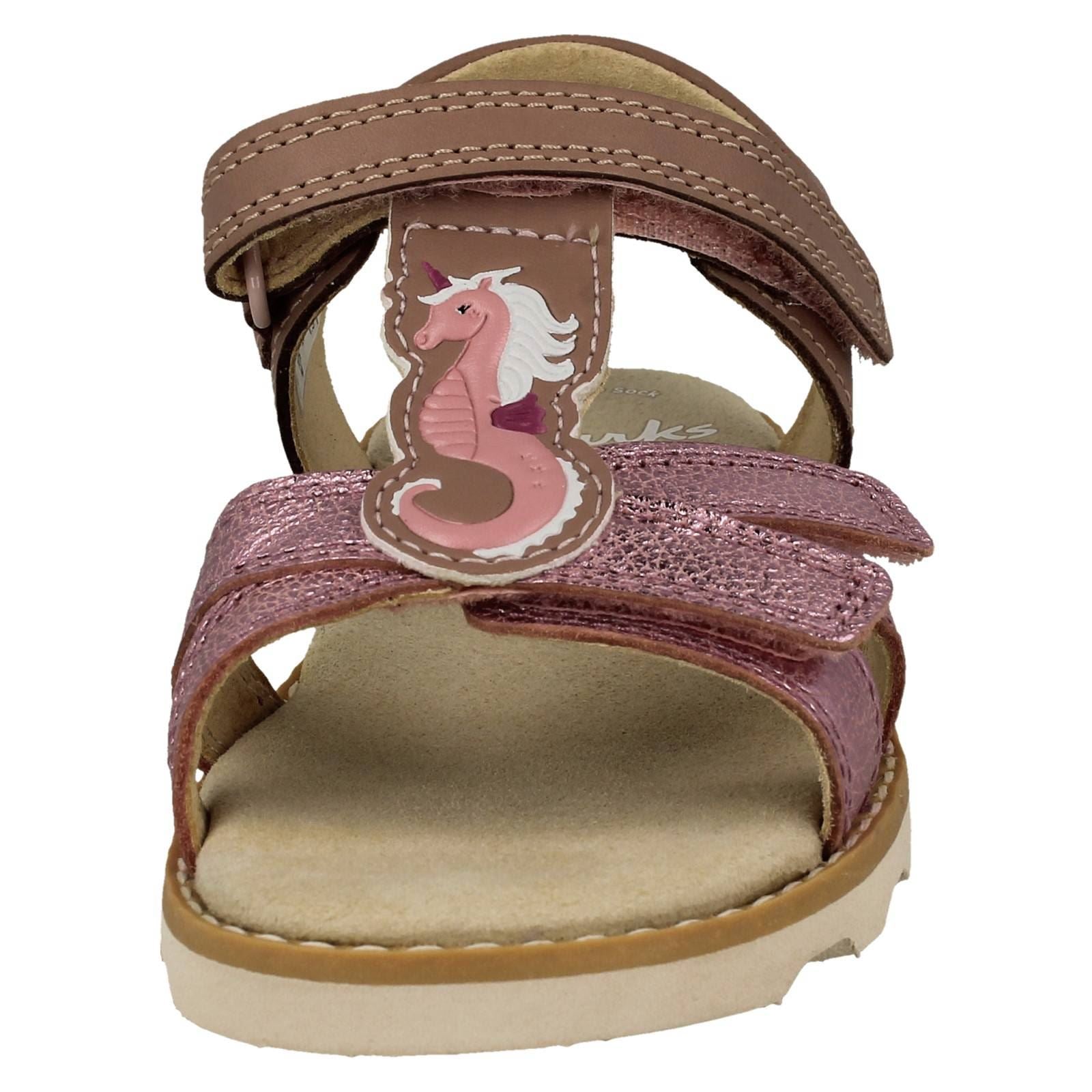 Girls Clarks Hook & Loop Sandals With Seahorse Motif Crown Brill