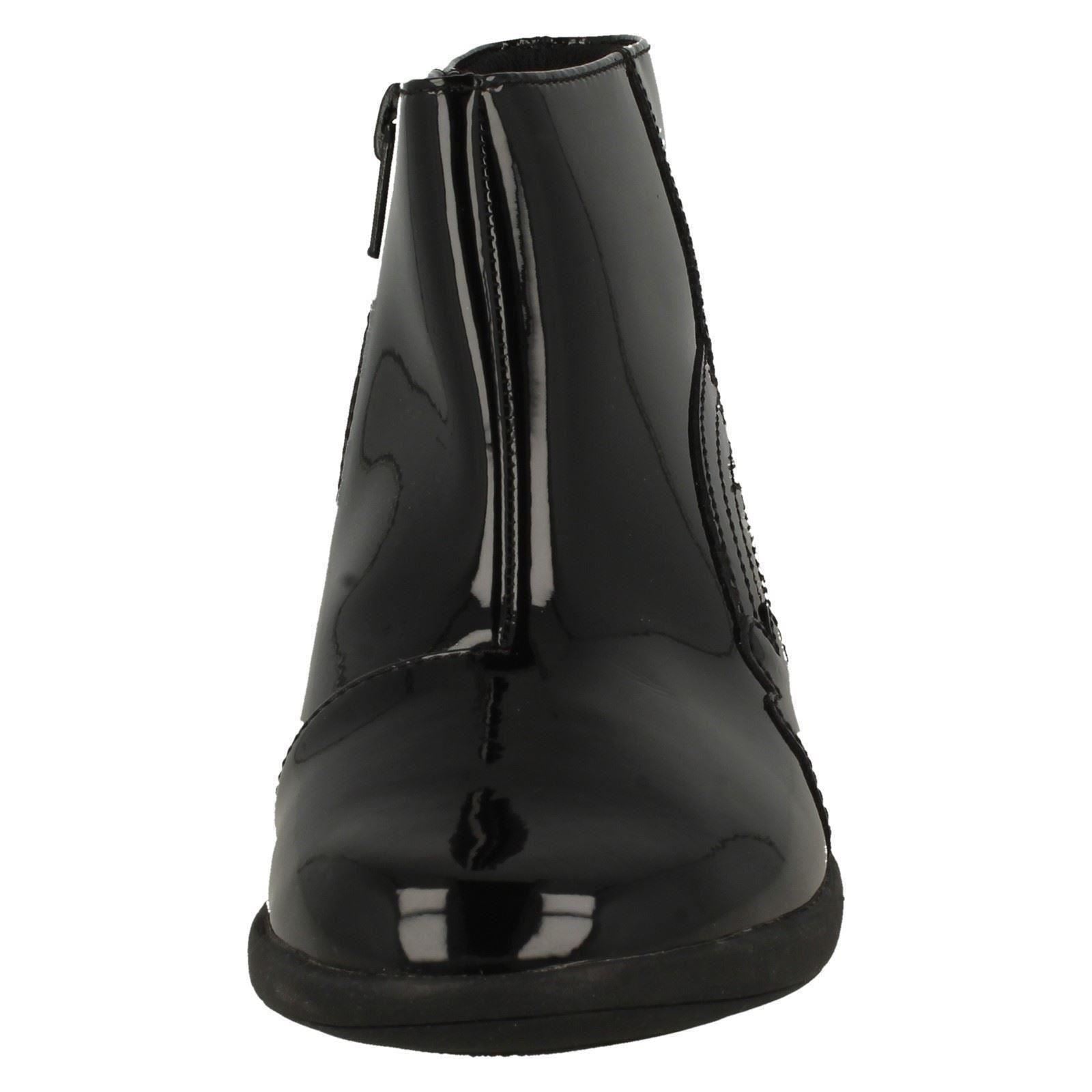 Clarks Girls' Etch Glow boots spark pure joy! Crafted with a coated leather upper and comfy textile lining, these ankle boots feel fantastic. The easy zip fastening means she's ready for anything, from smart events to playground adventures. Watch her step out with confidence, leaving a trail of rainbow magic wherever she goes. Durable synthetic sole for endless fun.