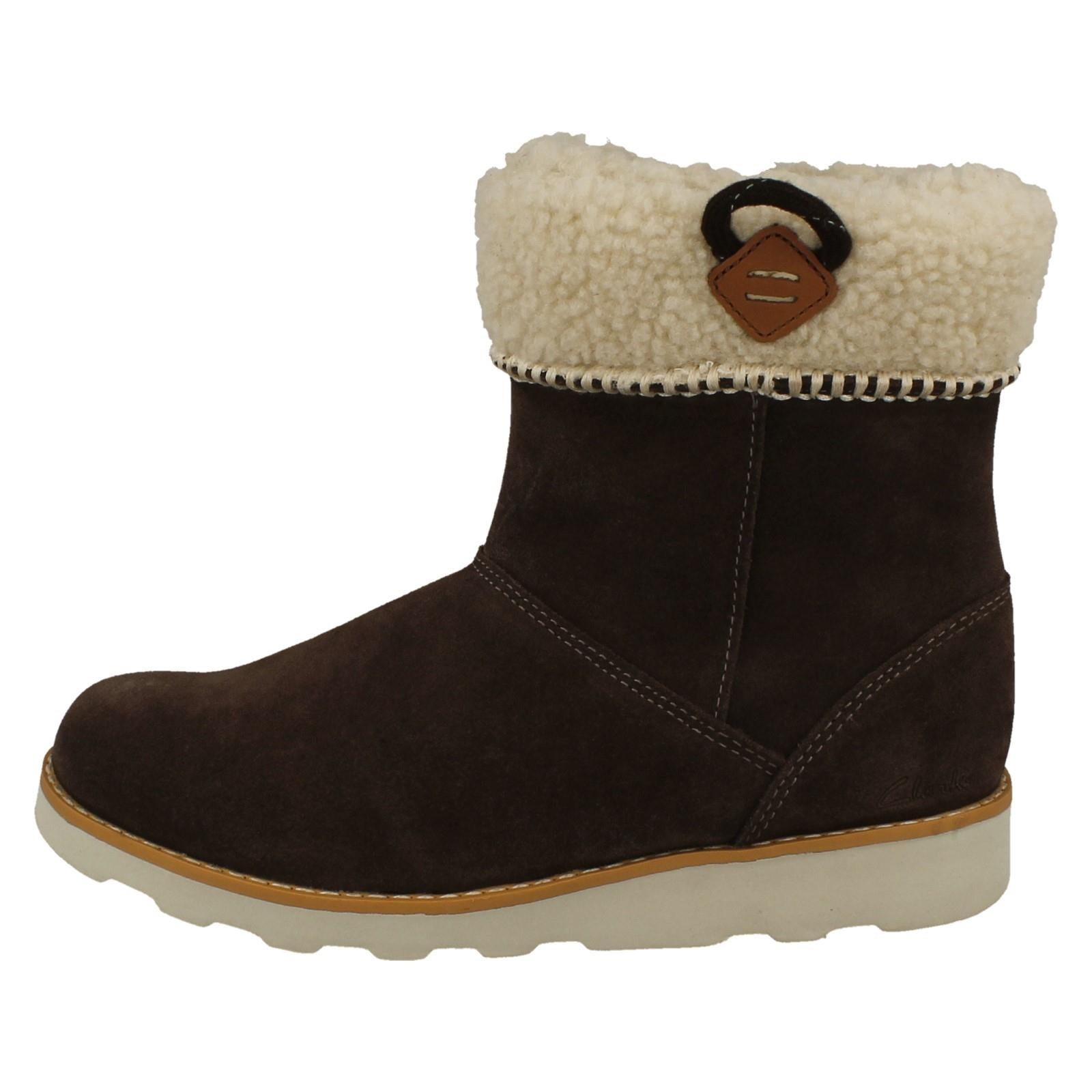 Girls Clarks Teddy Inspired Fur Cuff Boots Crown Loop