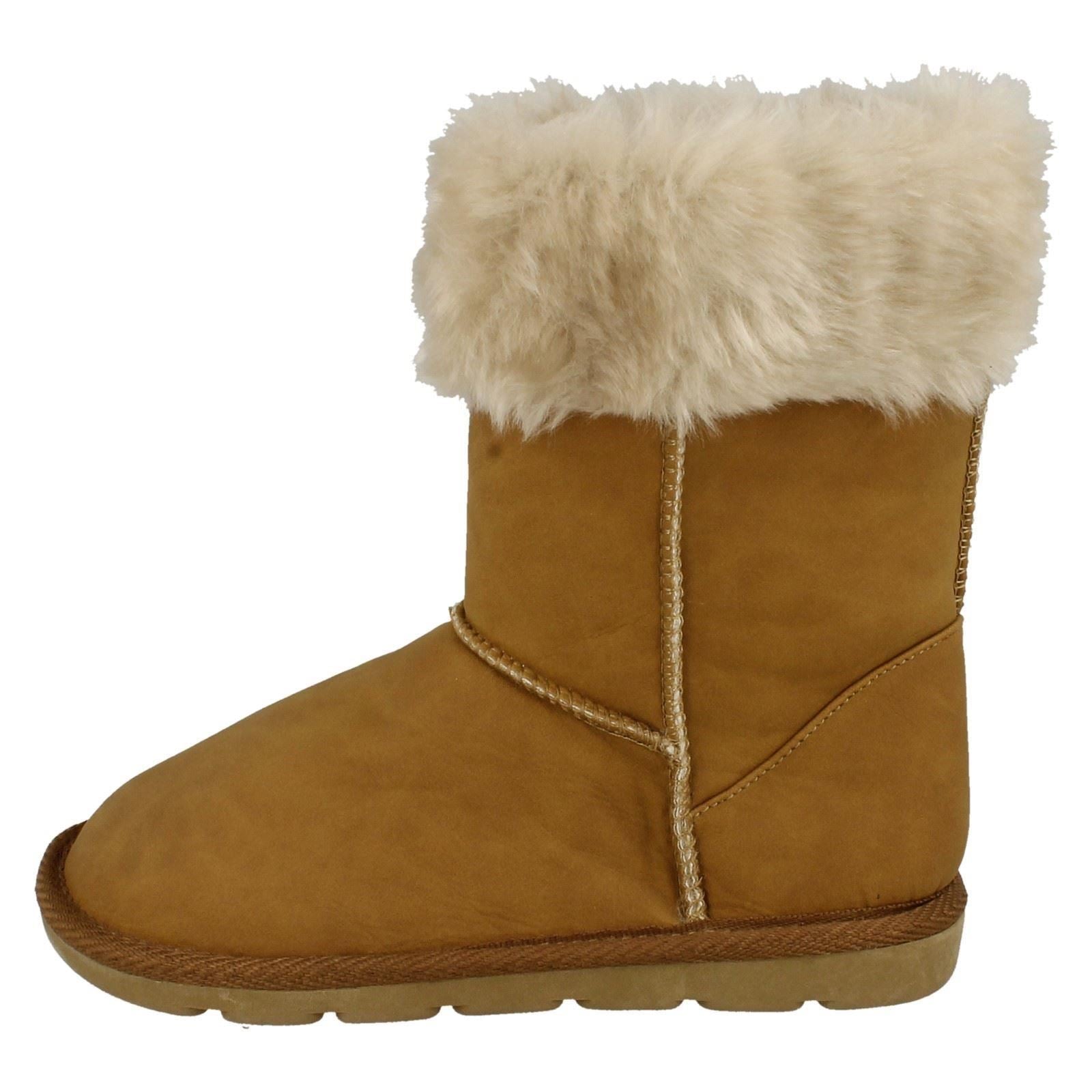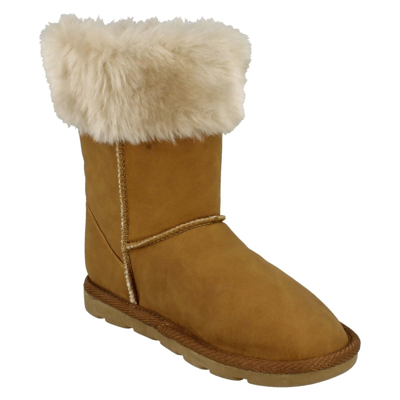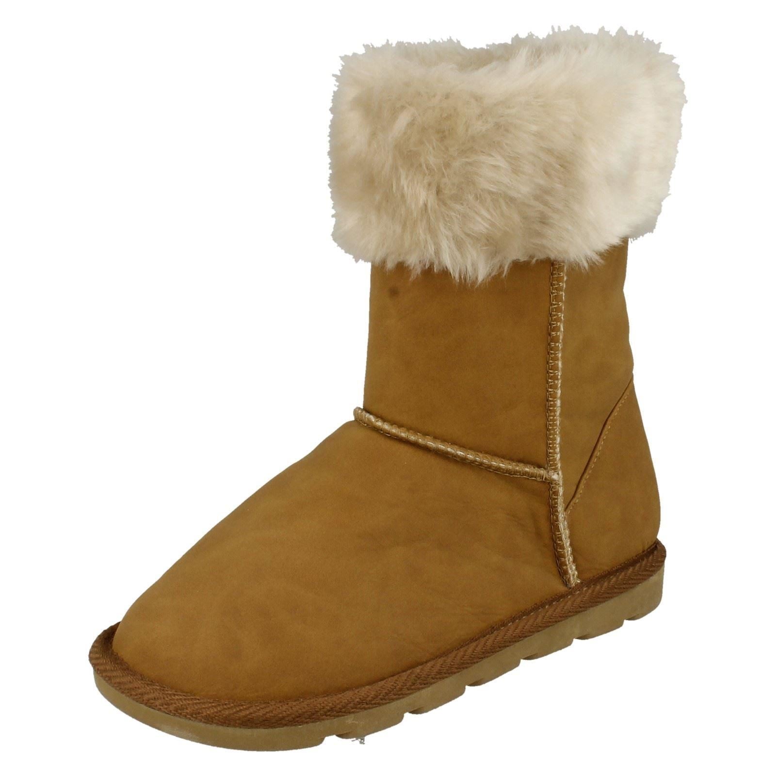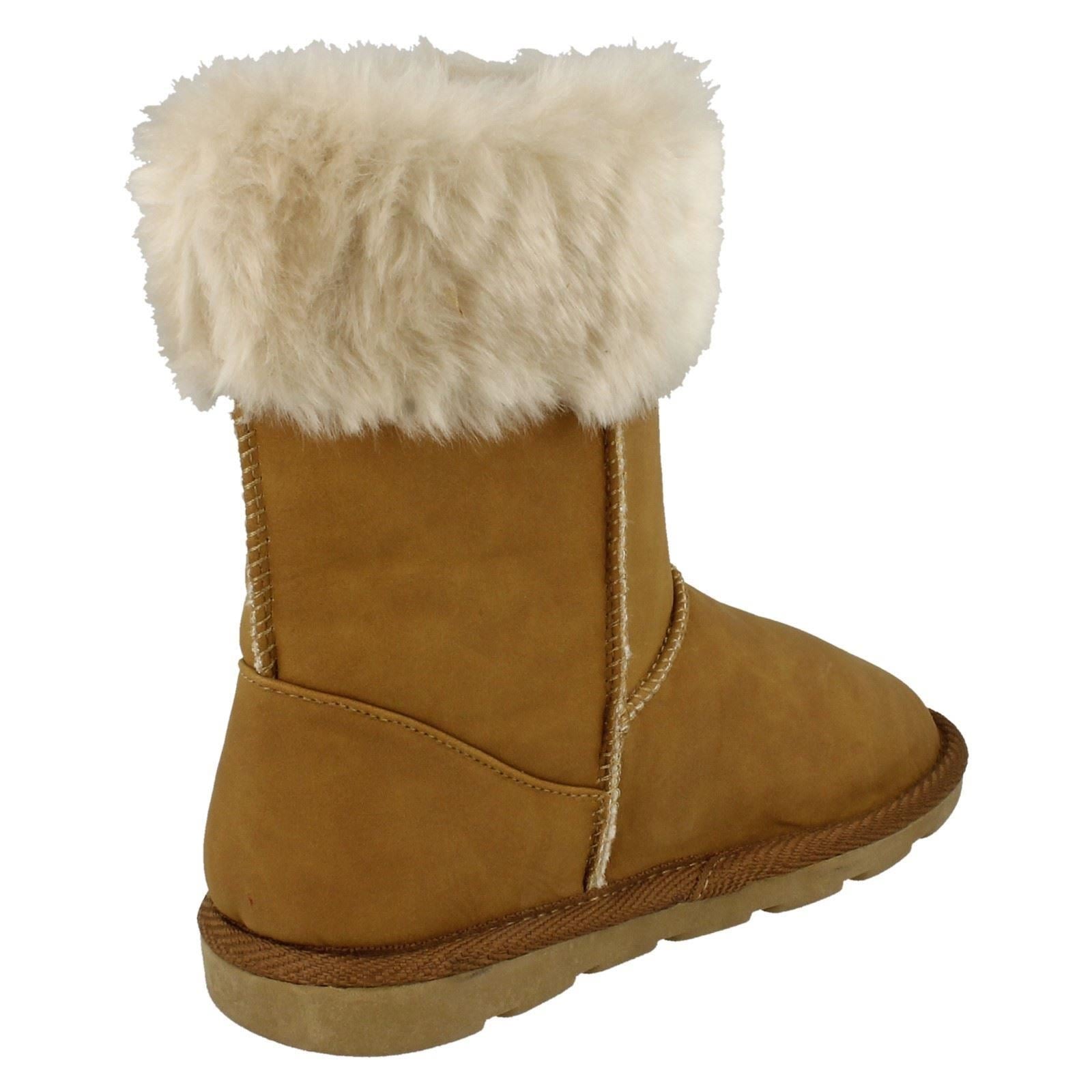 Girls Spot On Faux Fur Trim Casual Boots