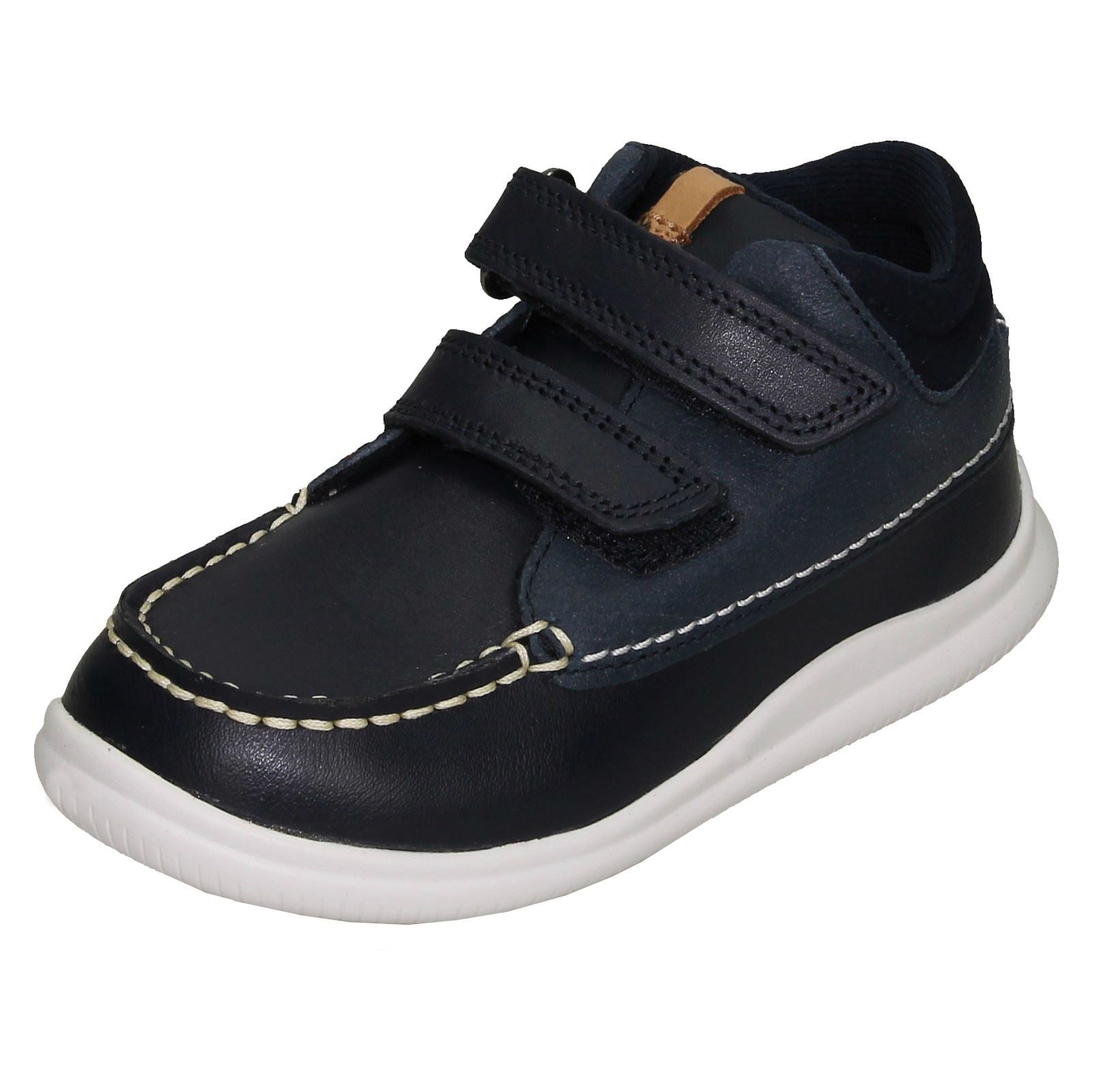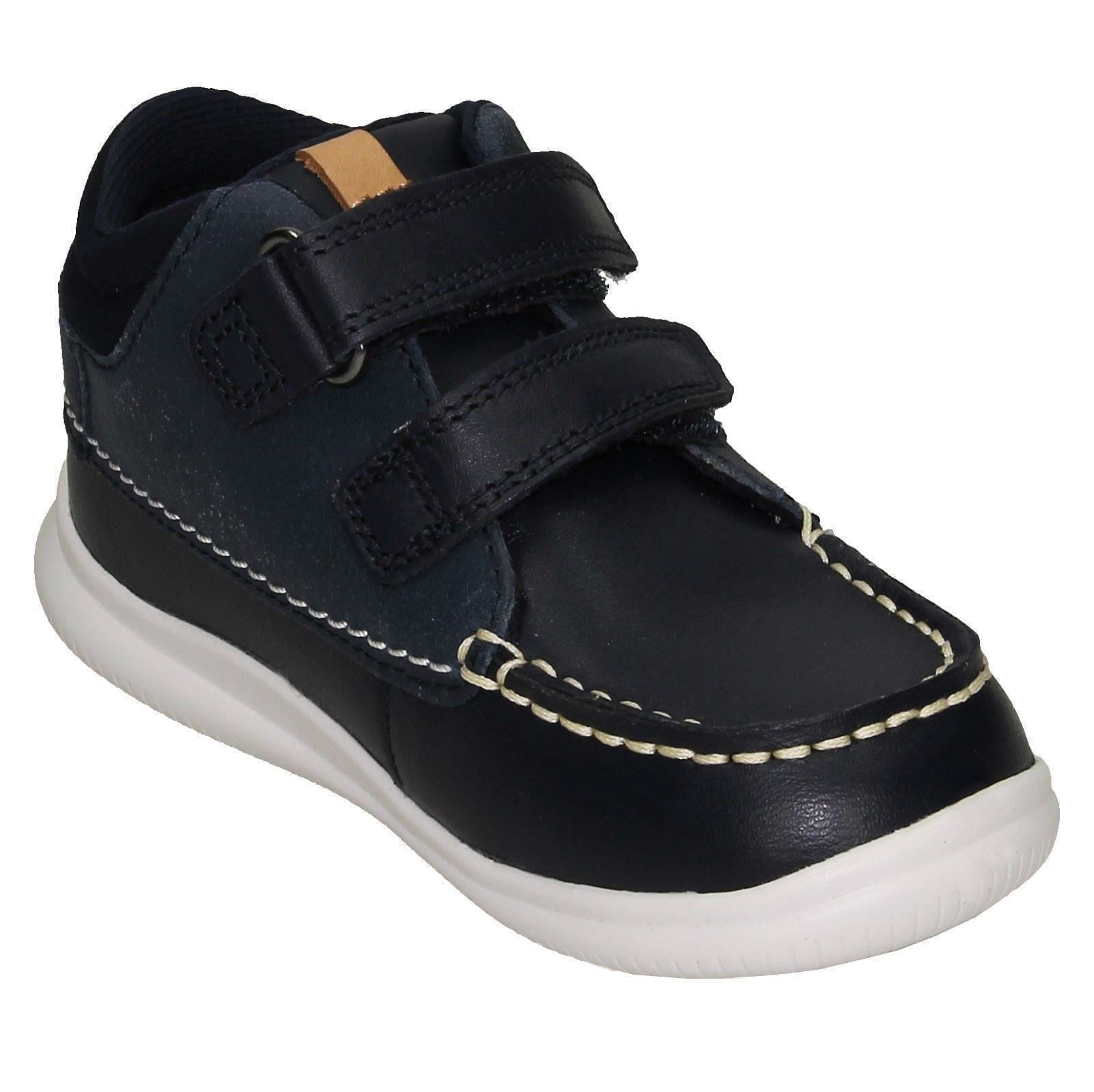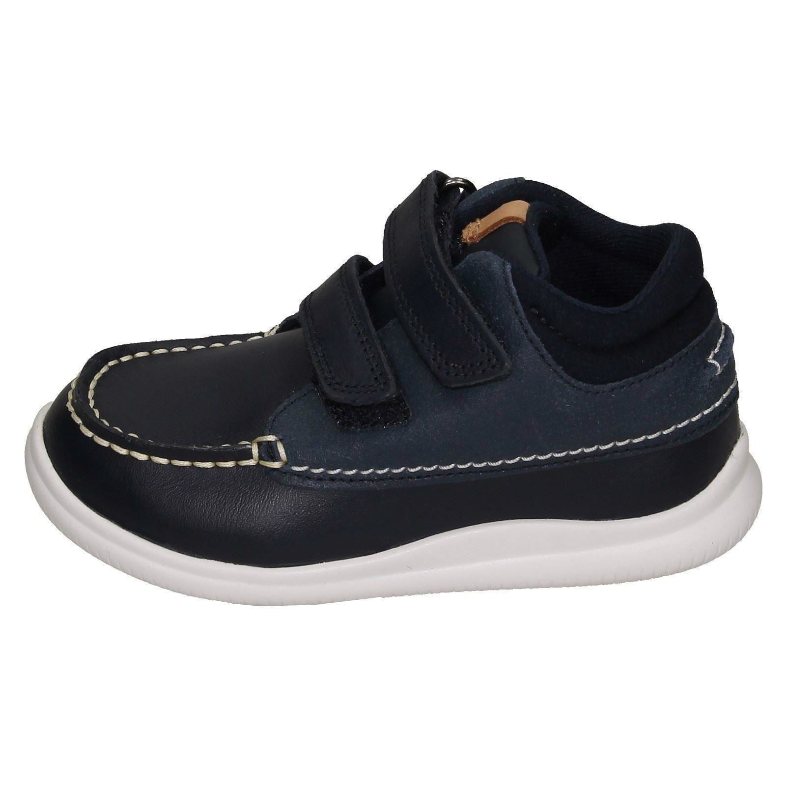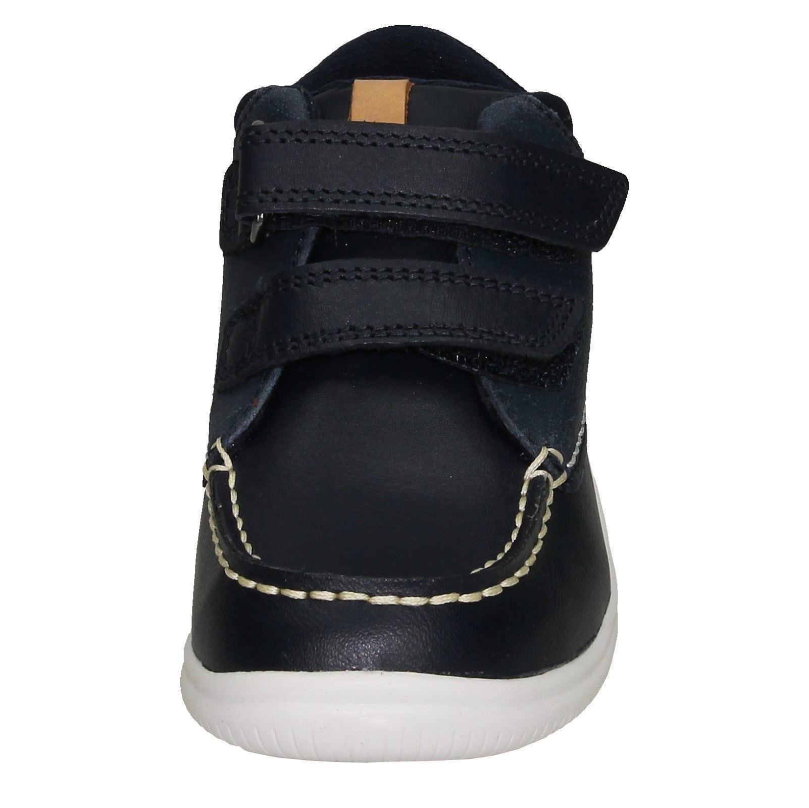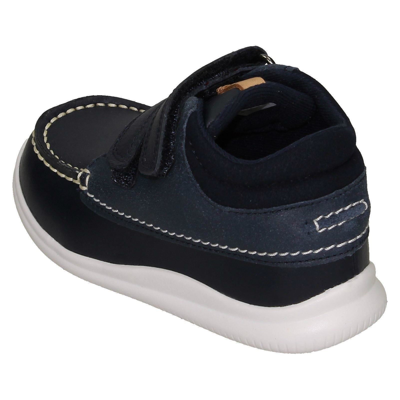 Clarks Crest Tuktu 19 ankle boots empower your child's daily adventures with durable leather and textile. Watch them confidently stride and explore; the easy hook & loop fastening means less fuss, more freedom. Lined for comfort and built with a sturdy synthetic sole, these unisex boots handle playtime while keeping little feet snug and supported. They're ready for anything!