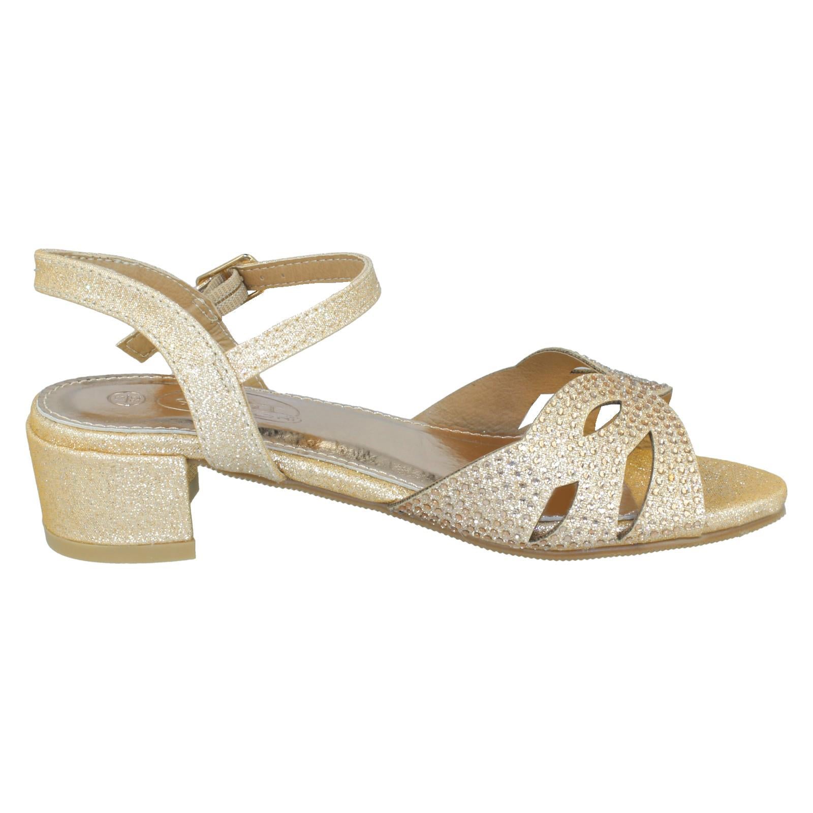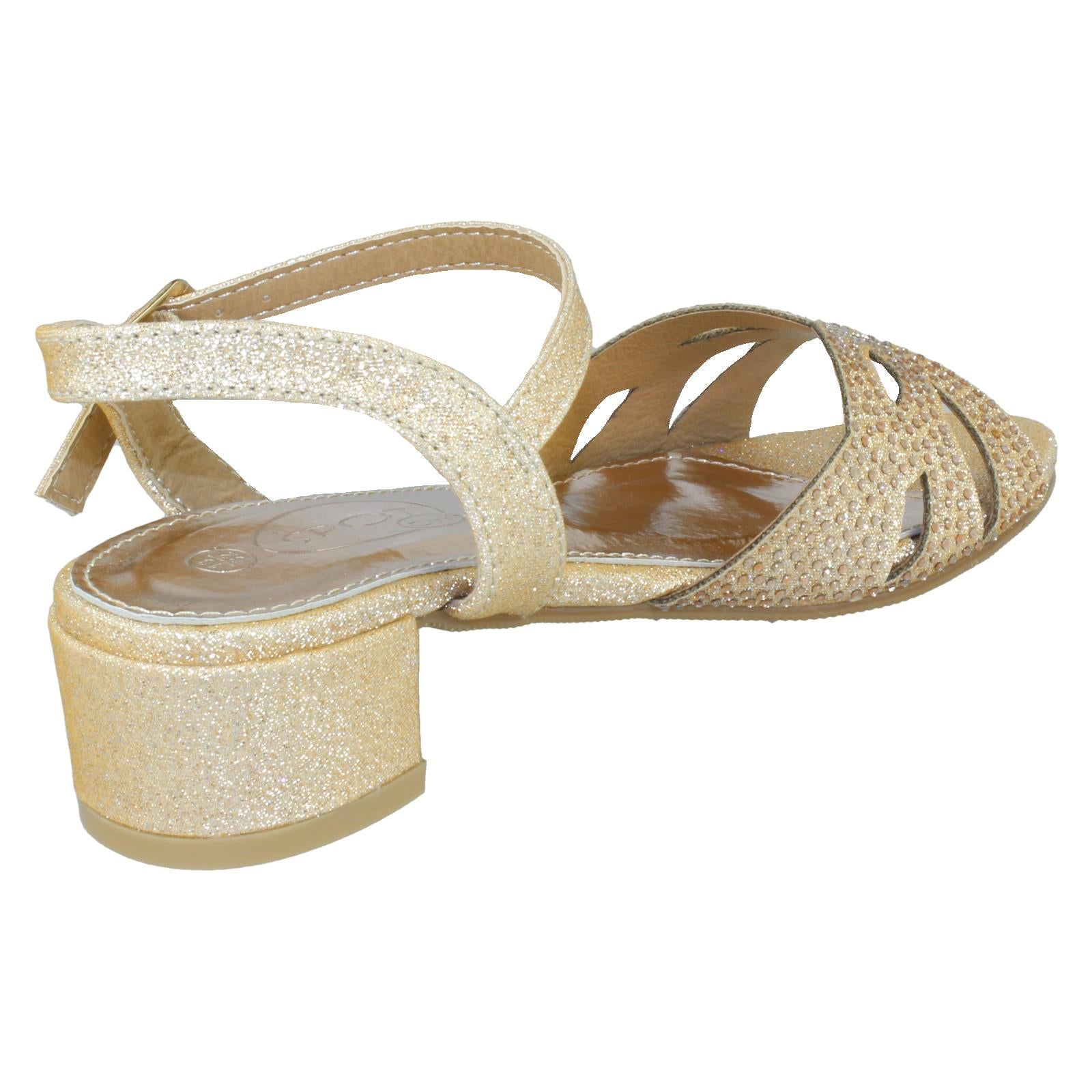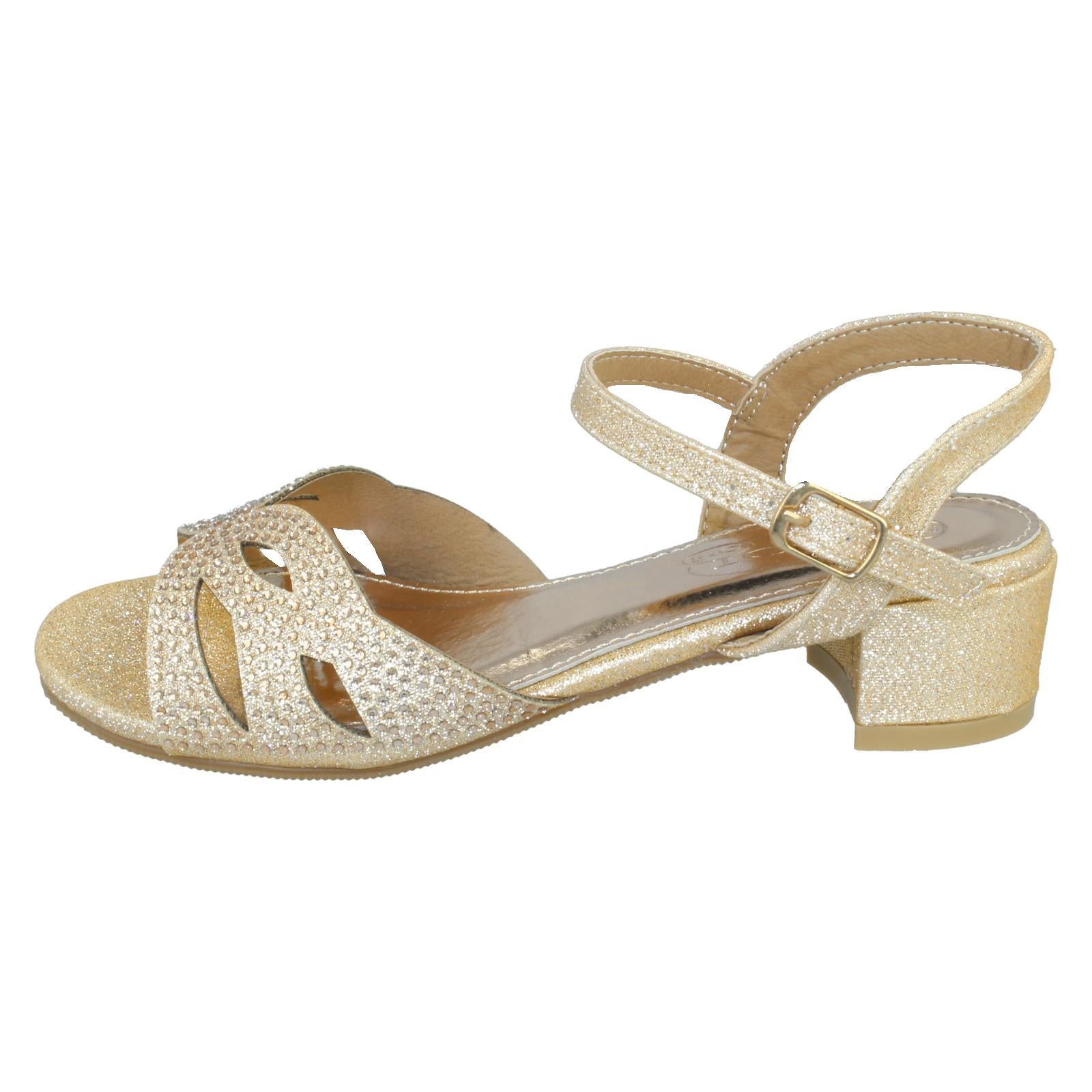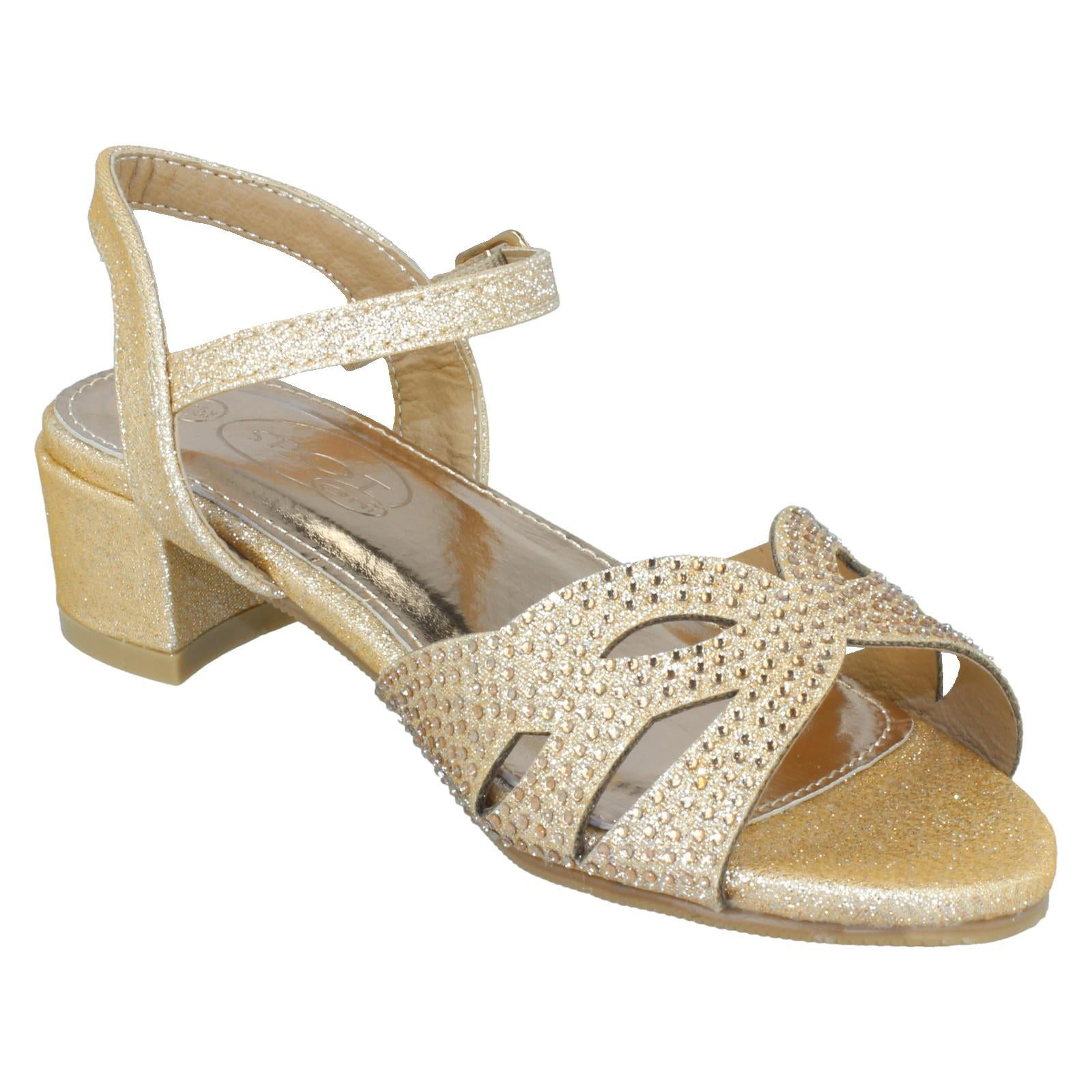 Girls Spot On Mid Heel Glitter Sandals H1111