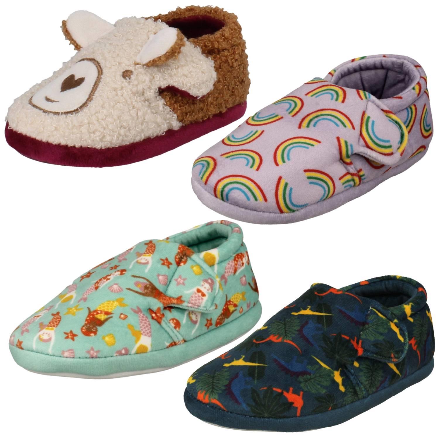 Childrens Clarks Print Detailed Slippers - Fluffy Snug T