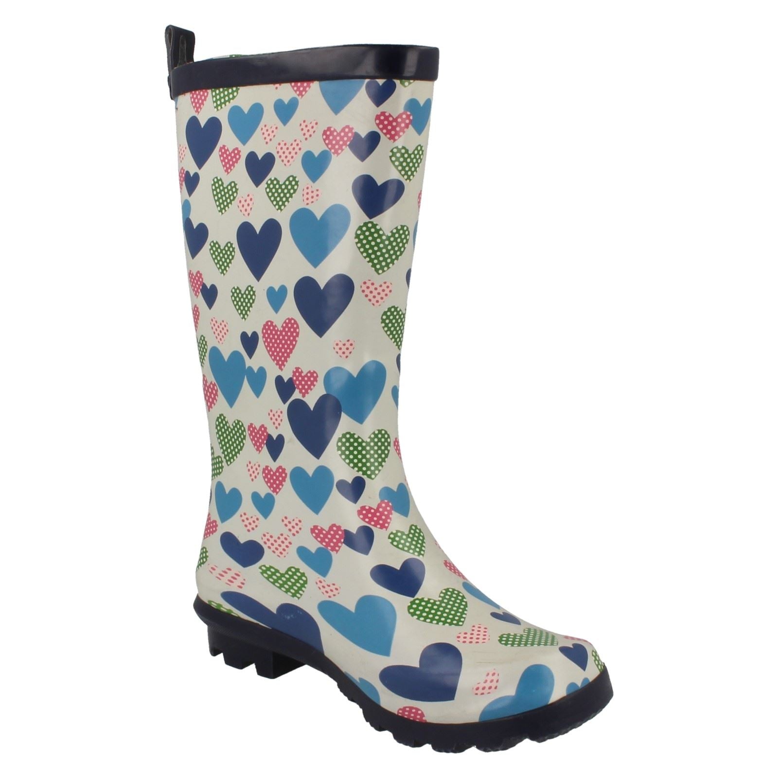 Spot On Girls Heart Print Wellingtons are ready to conquer the rainiest days, letting little adventurers splash, jump, and explore without limits! Crafted with a protective rubber upper and sole, these boots slip on easily, keeping tiny feet dry and cosy thanks to the textile lining. Watch her imagination bloom as she steps into every puddle with heart-covered glee. Rainy day fun starts here!
