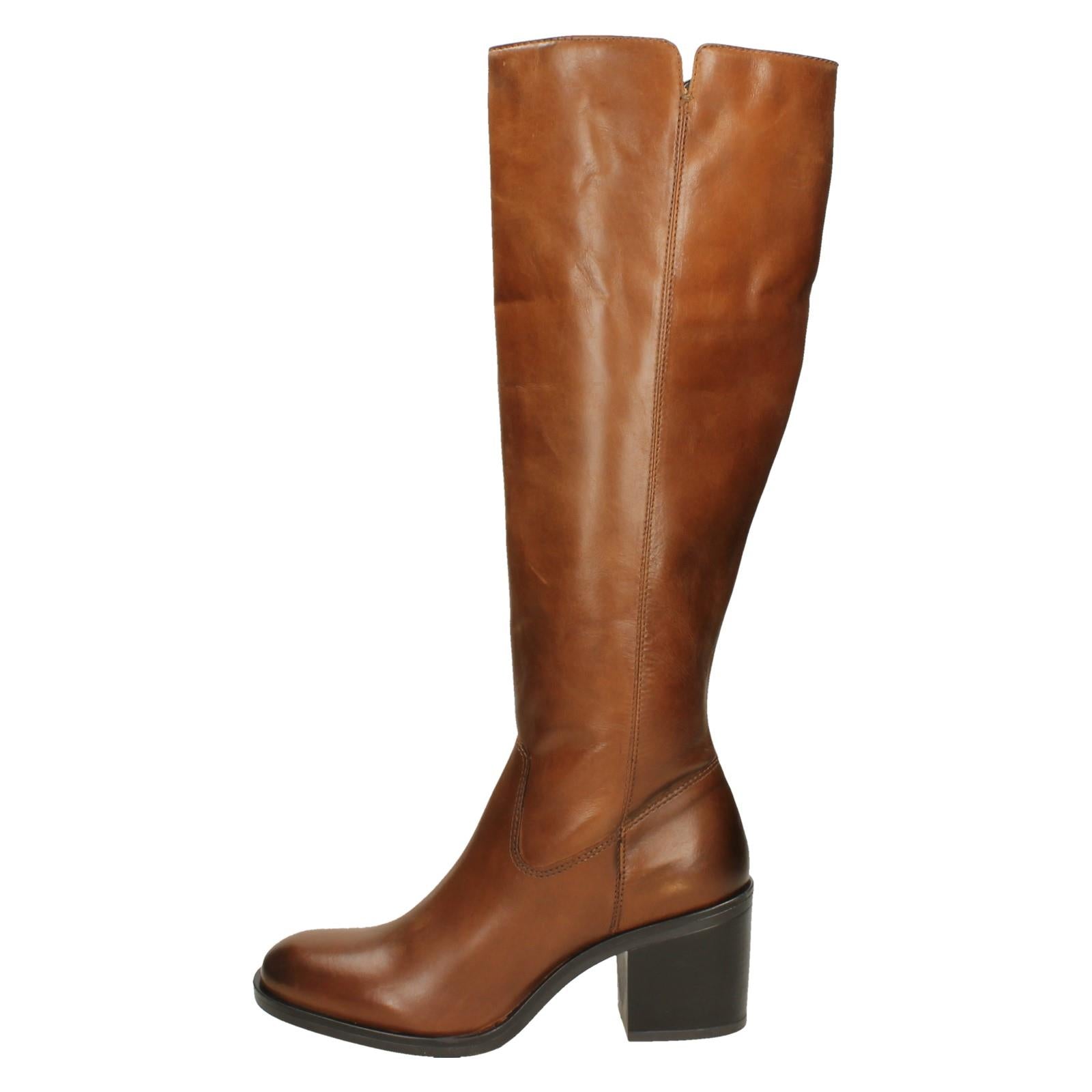 Clarks VALVESTINOHI leather knee high boots: Zip into instant confidence this season. Supple leather embraces your stride while a textile lining cushions every step. Feel utterly pulled together as the synthetic sole grips the pavement. These boots elevate your look and empower your day, proving chic style and comfort truly coexist.