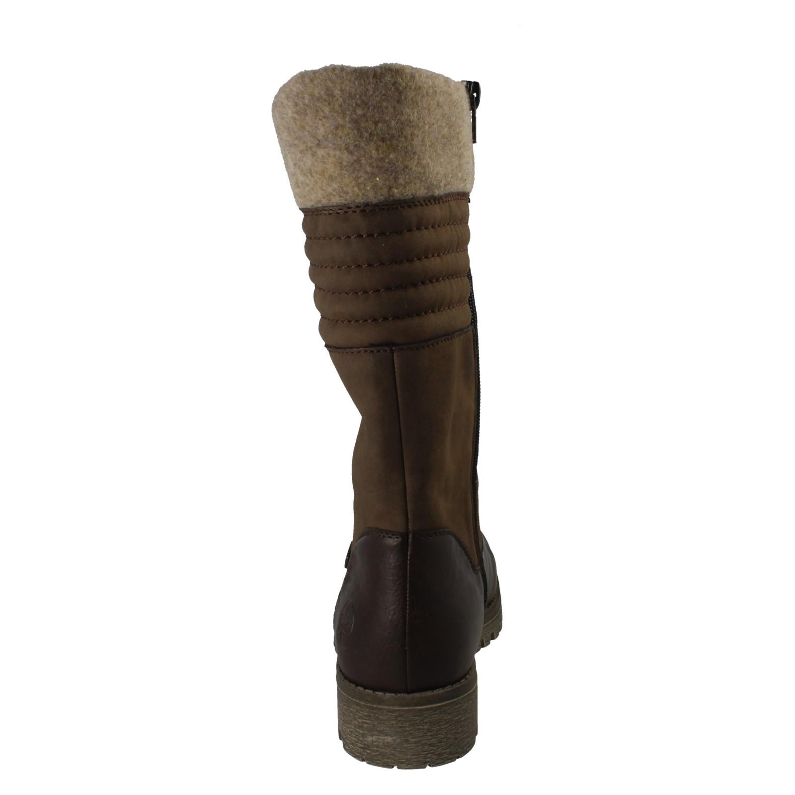 Ladies Rieker Zip Mid Calf Fleece Lined Water Repellent Boots 78585