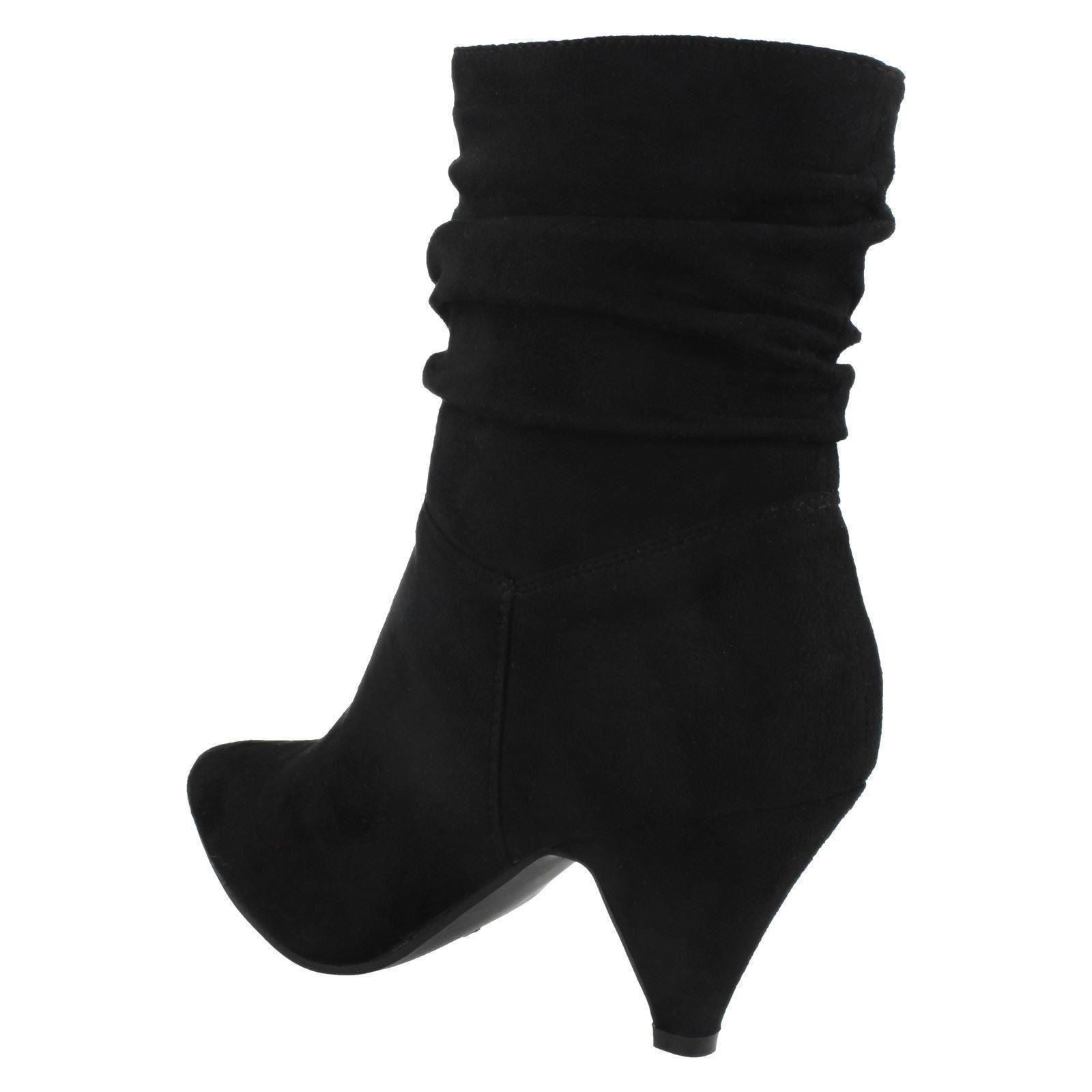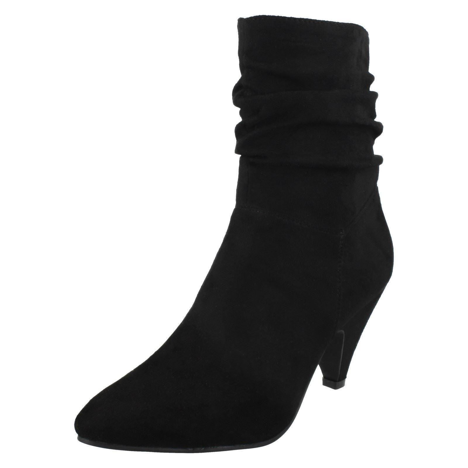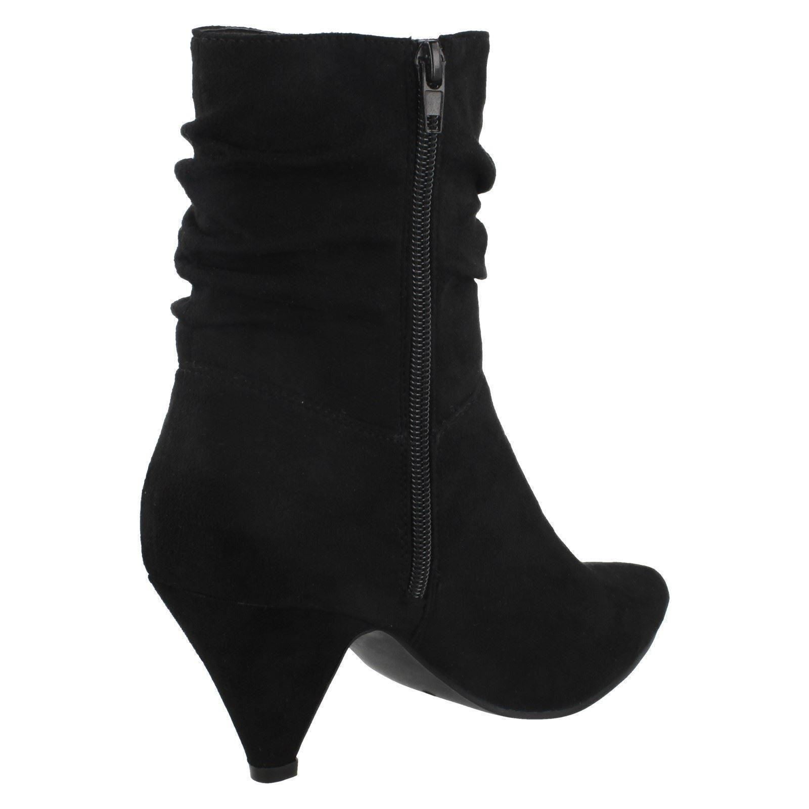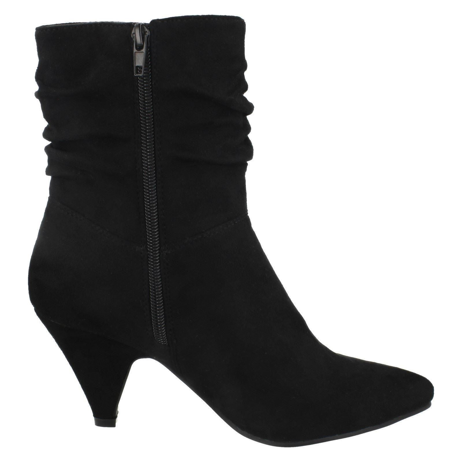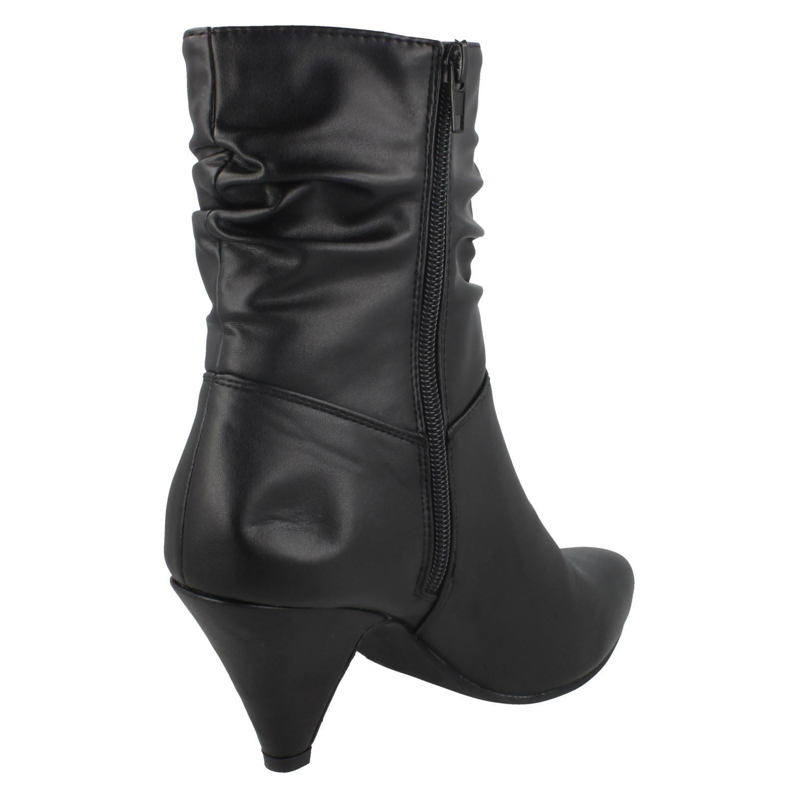 Ladies Spot On Mid Heel Rouched Ankle Boots F50897