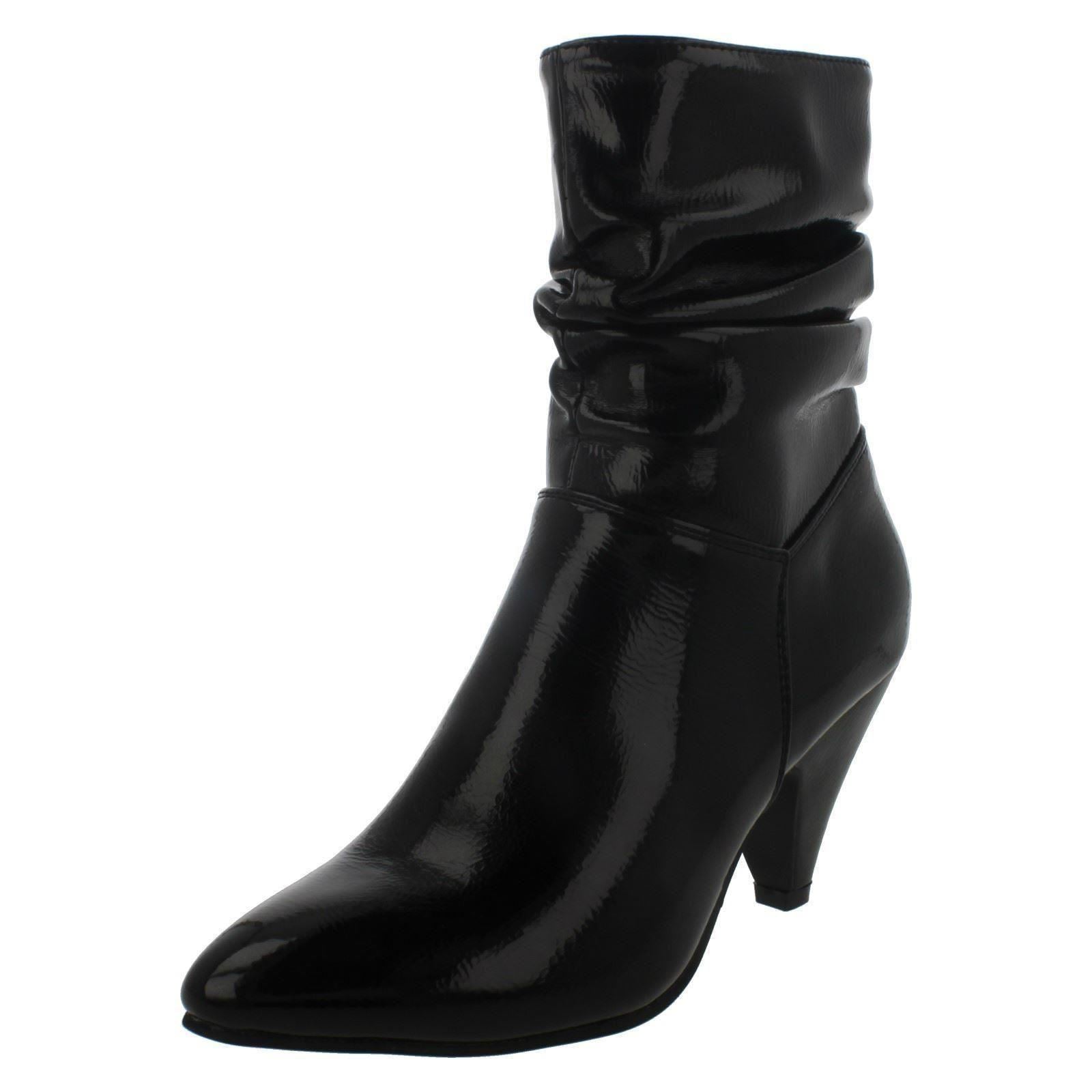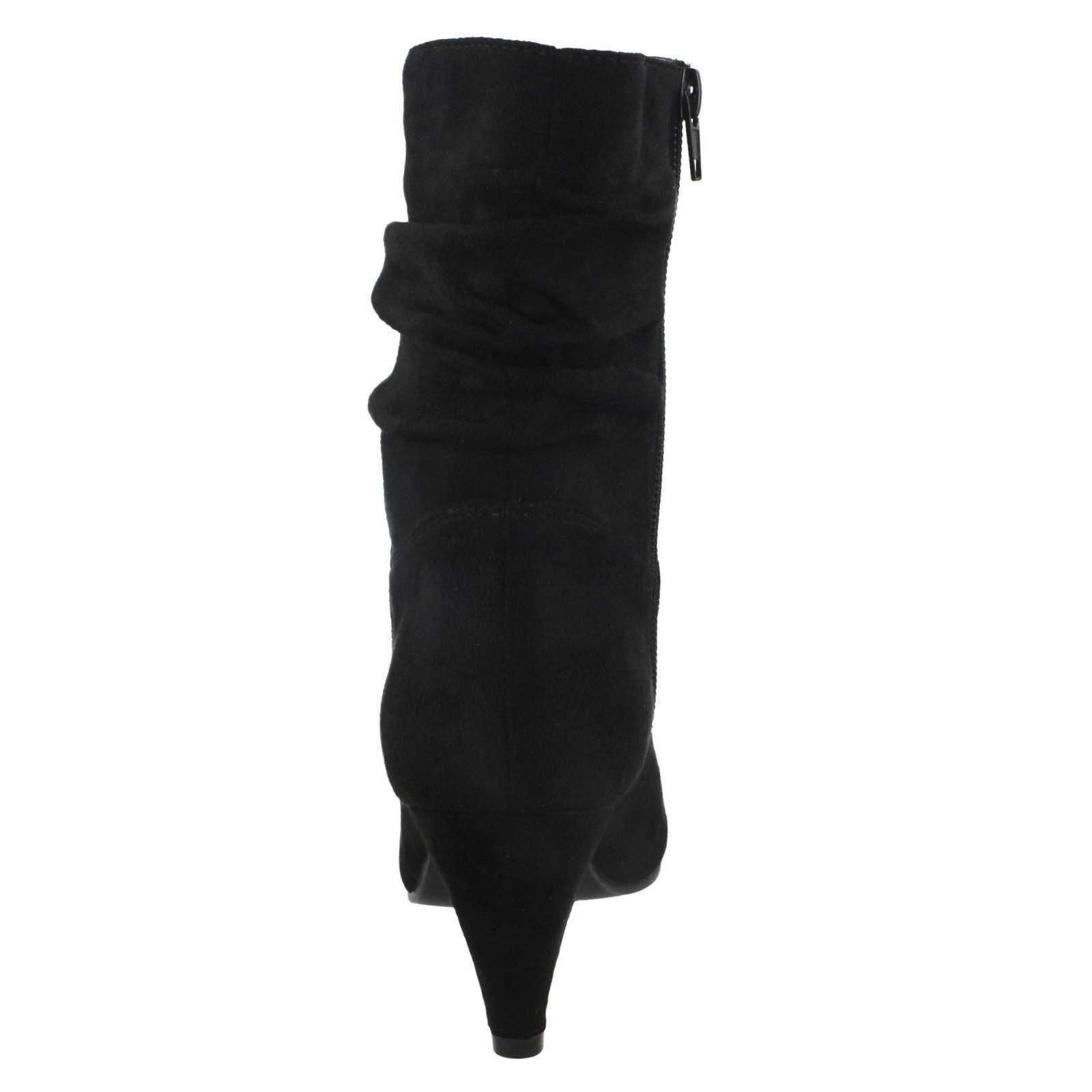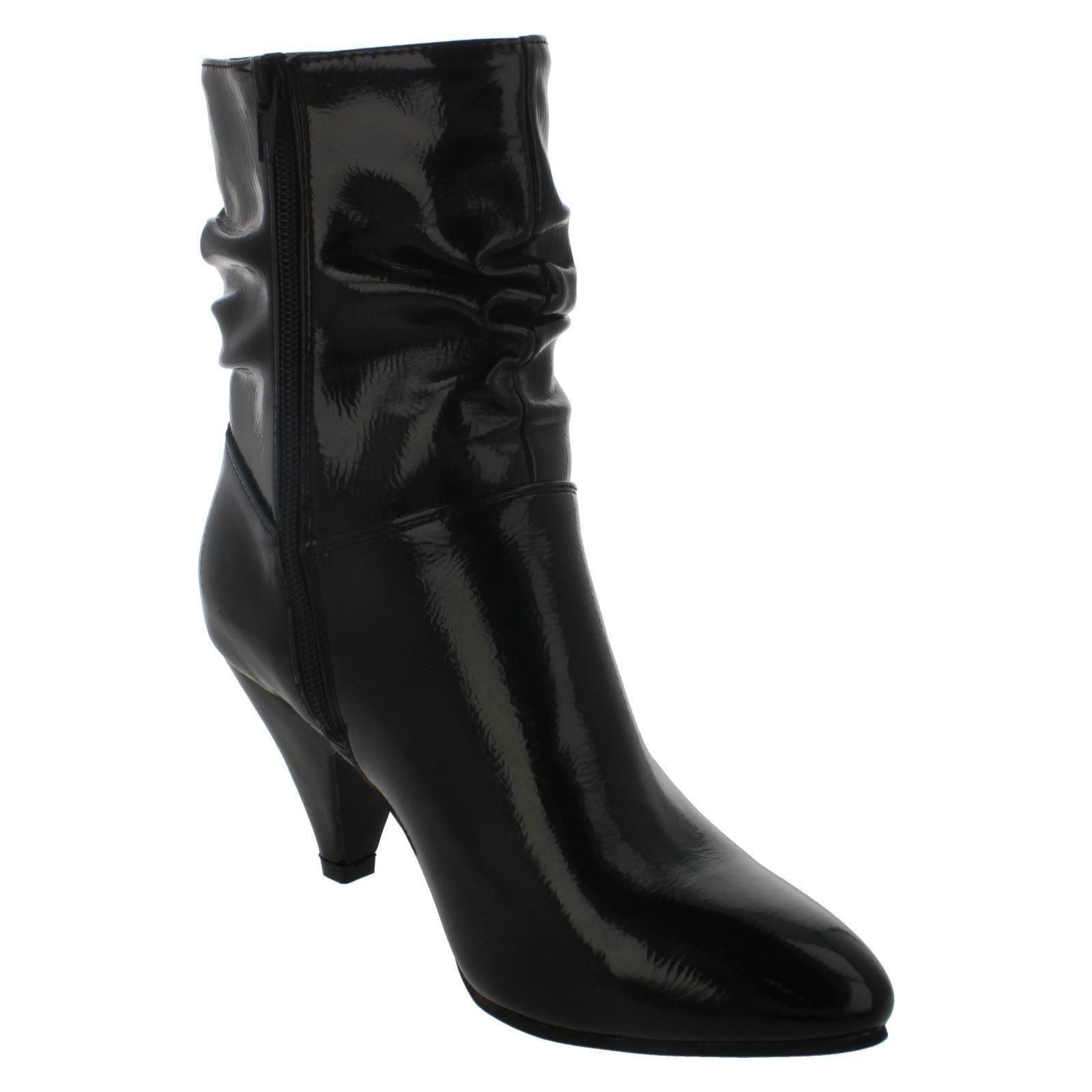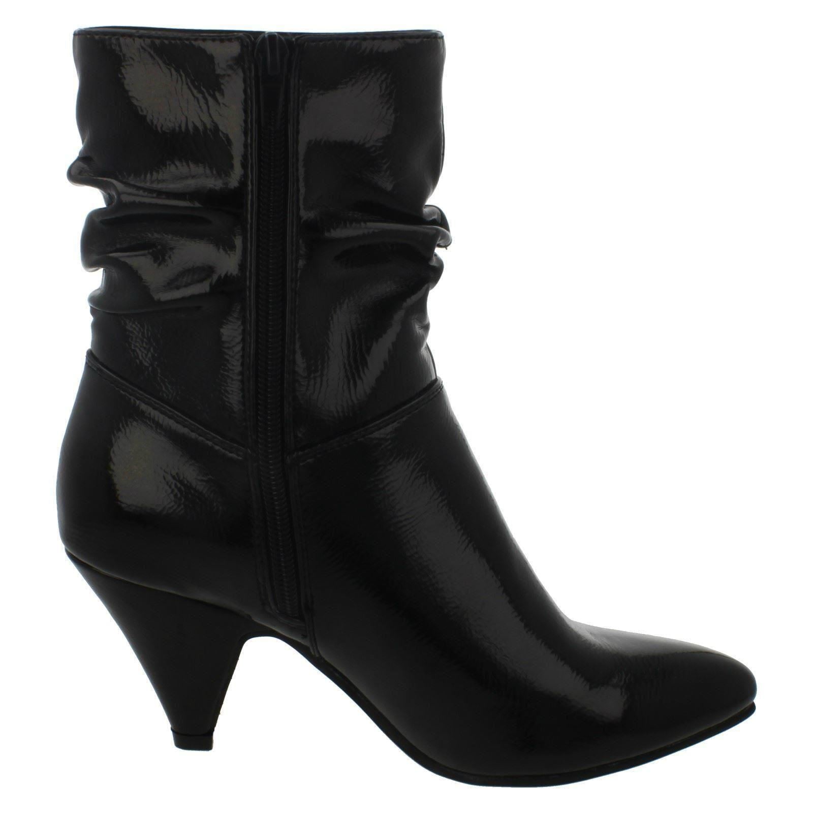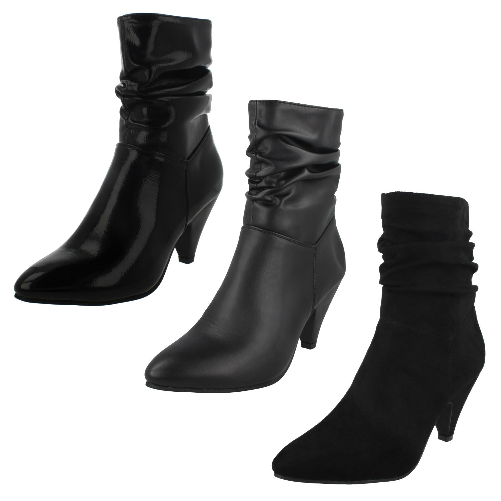Ladies Spot On Mid Heel Rouched Ankle Boots F50897