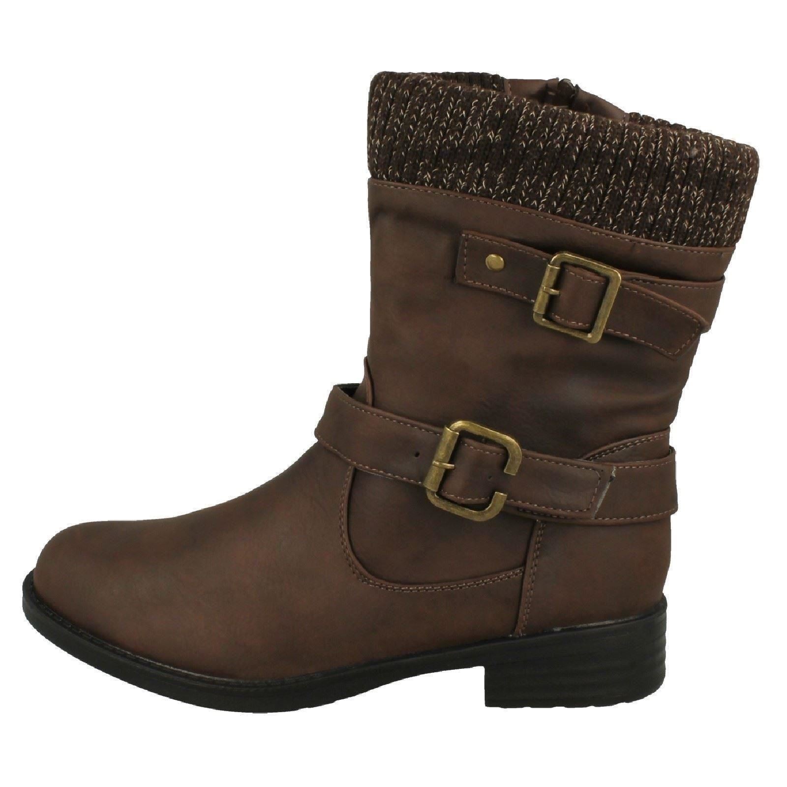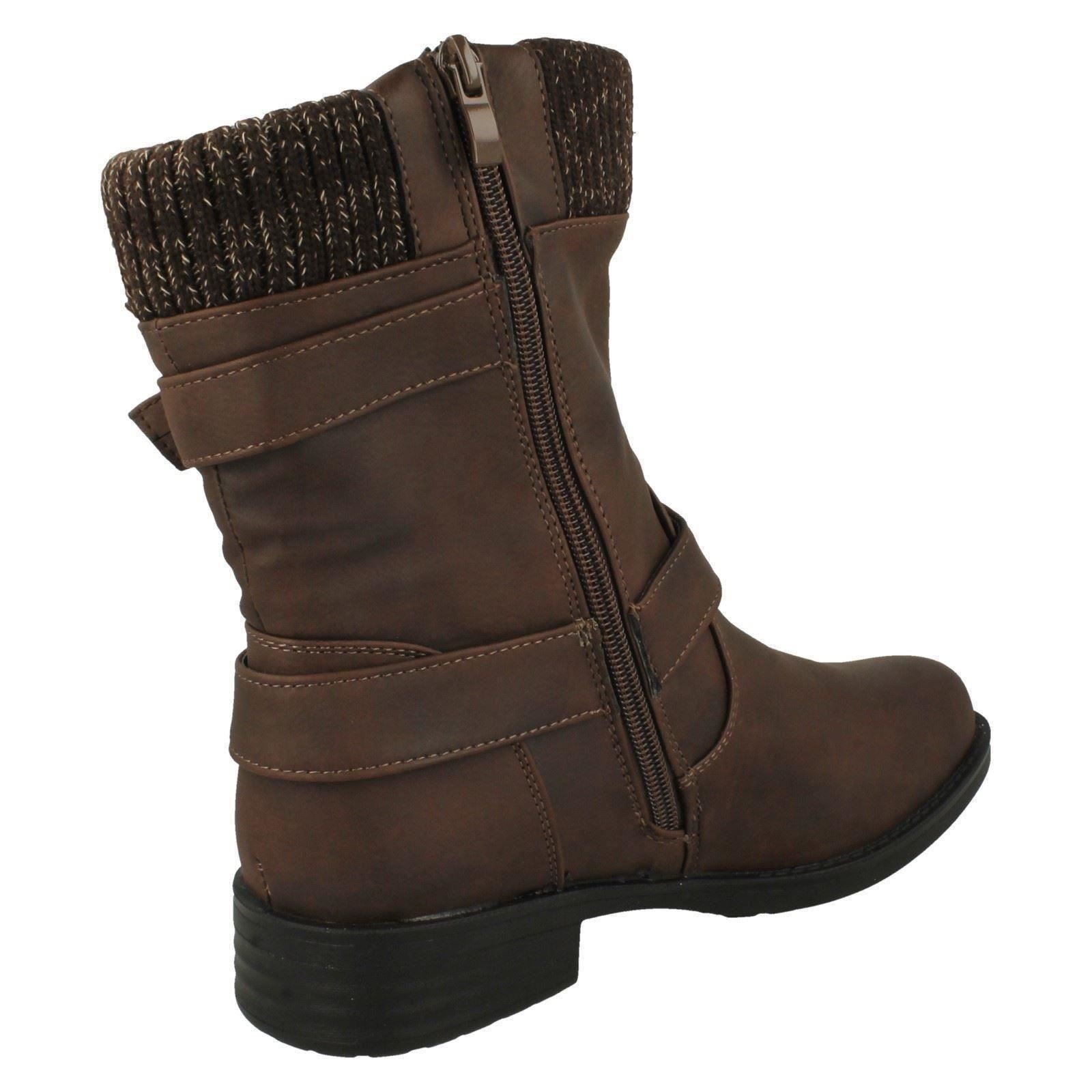 Ladies Spot On Warm Lined Buckle Detailed Mid Calf Boots F51182