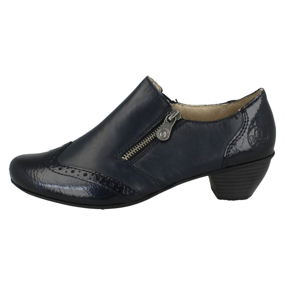 Rieker Ladies Leather Brogue Detailed Shoes 41757: Glide through your day with cushioned confidence. These court shoes, crafted with a supple leather upper and snug textile lining, feel instantly familiar. A simple zip fastening ensures a seamless fit. Forget rushing; you own the pavement. These sophisticated smart shoes elevate every stride, making mundane moments memorable.