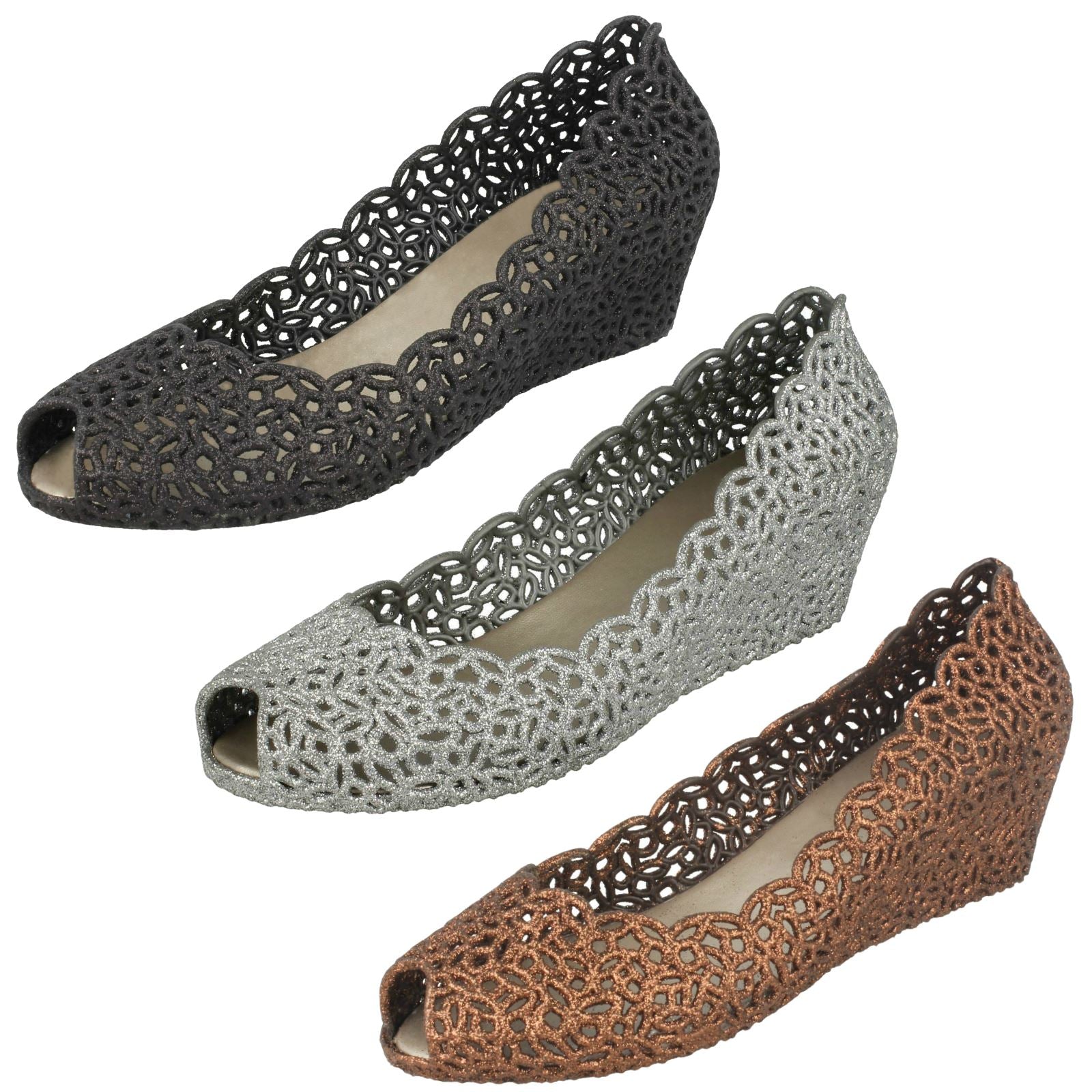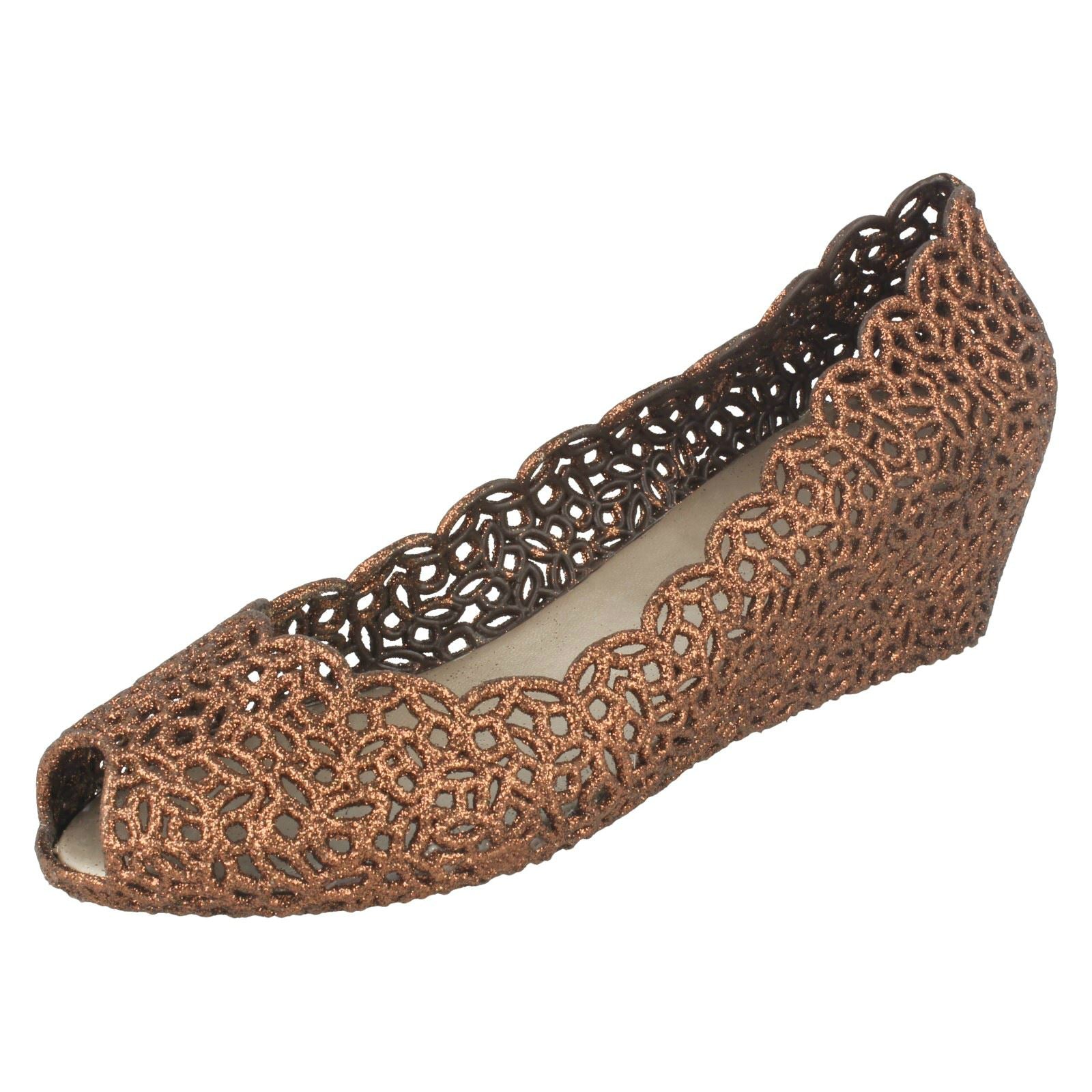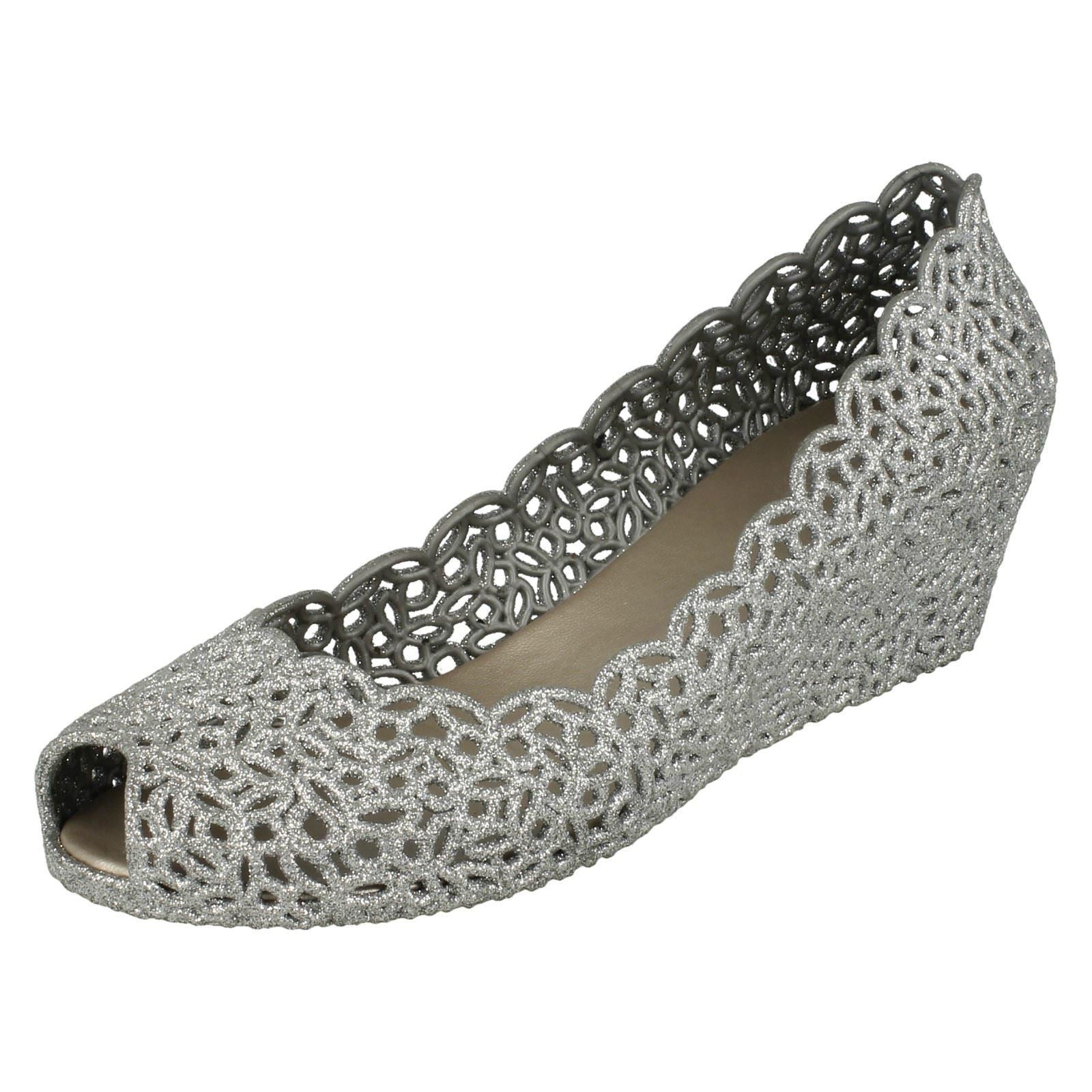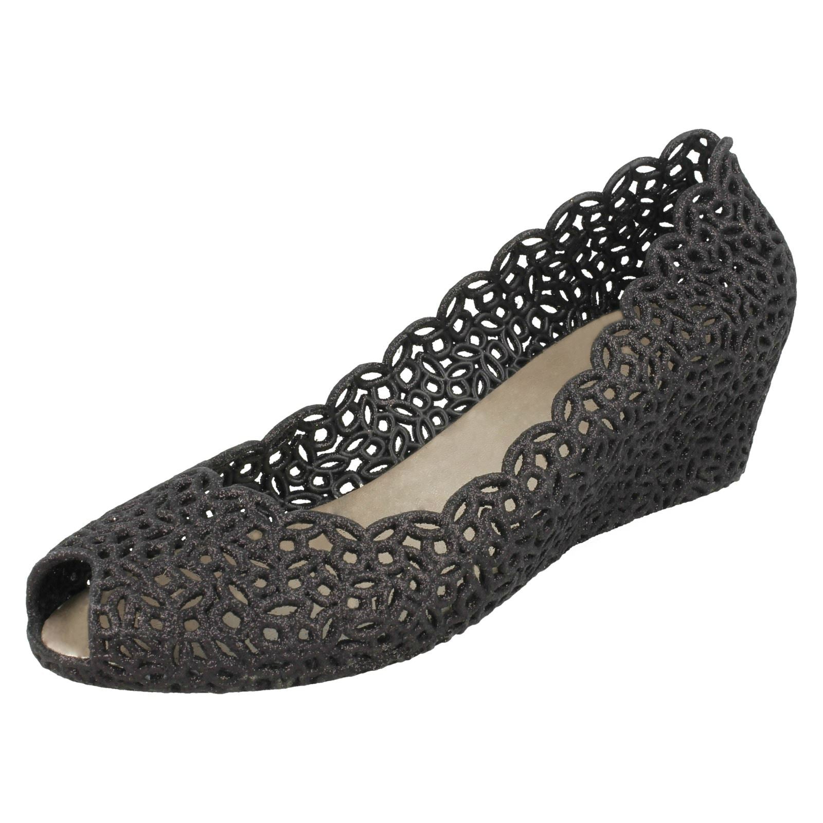Ladies Savannah Slip On Open Toe Ballerina Style Wedge Shoes