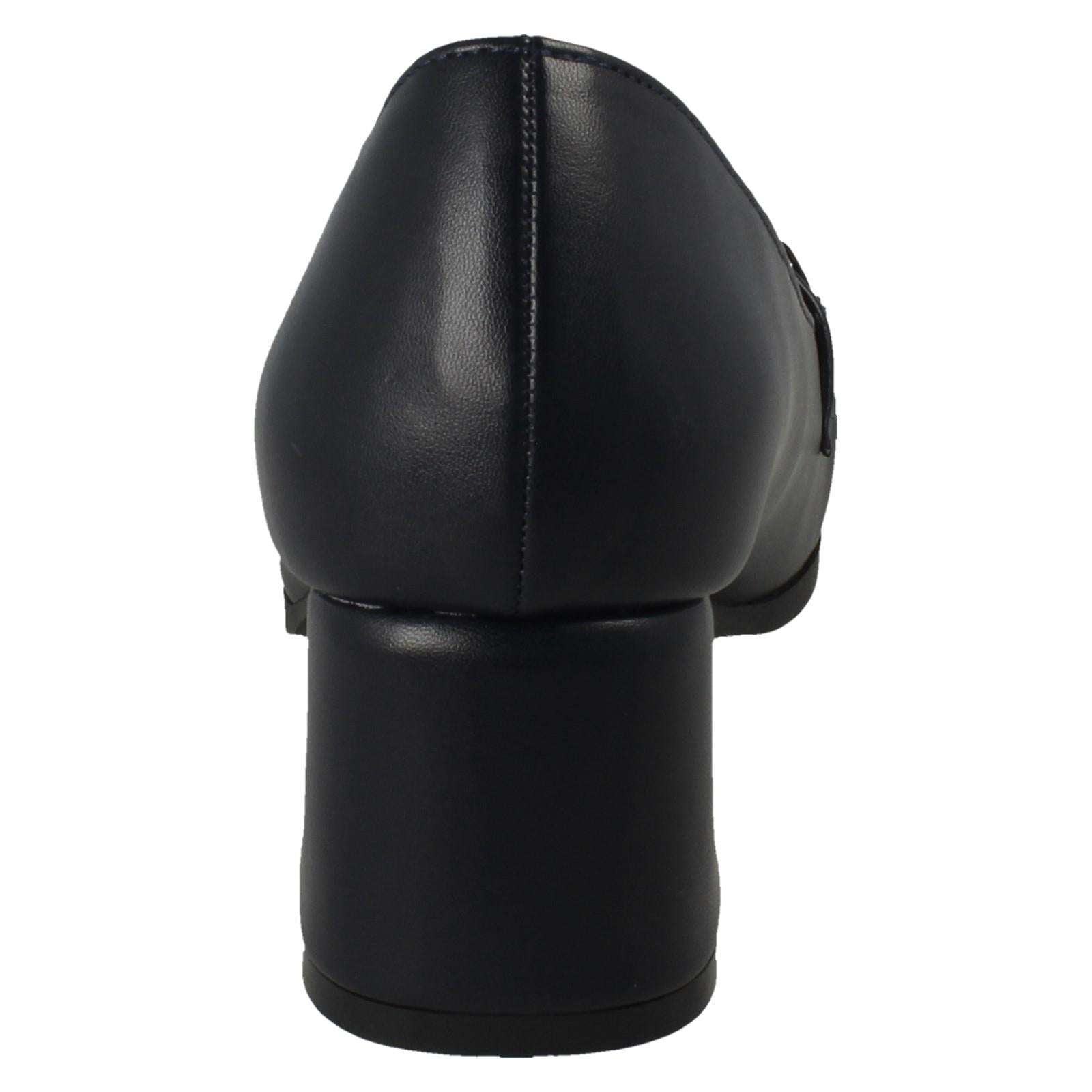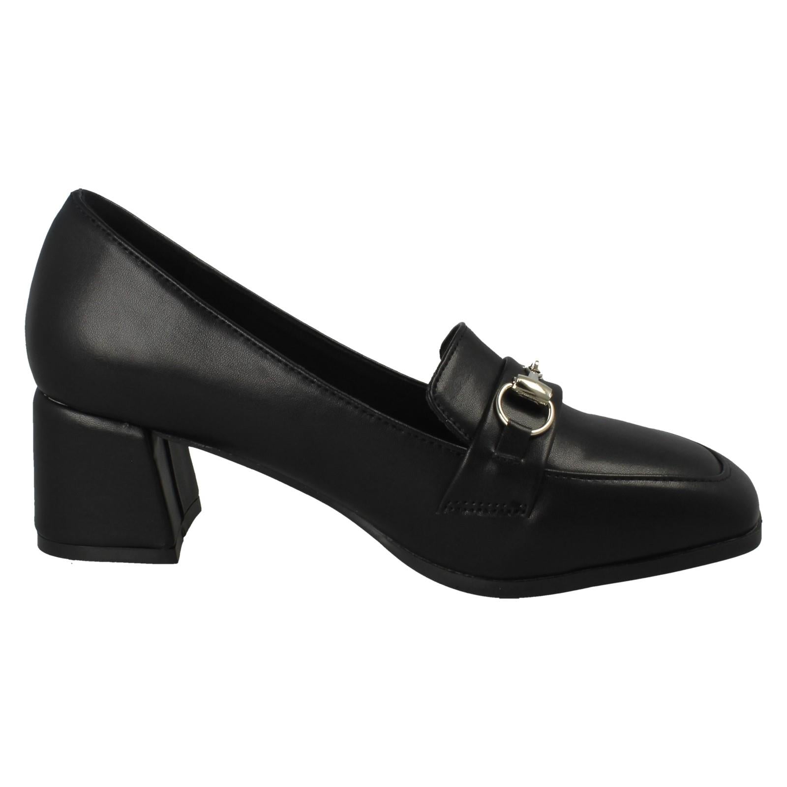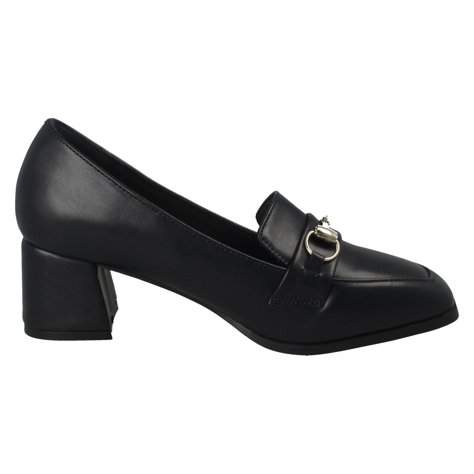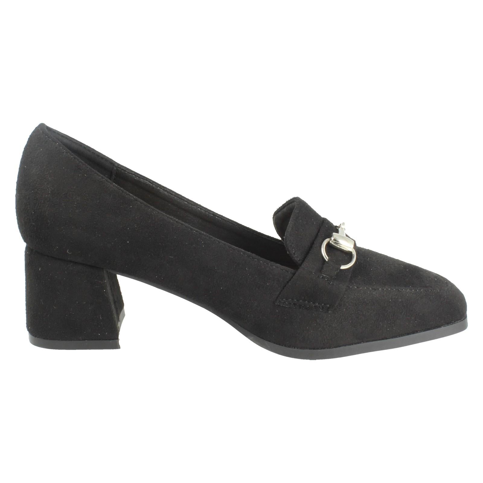 Ladies Spot On Buckle Detailed Slip On Mid Heel Court Shoe F90154