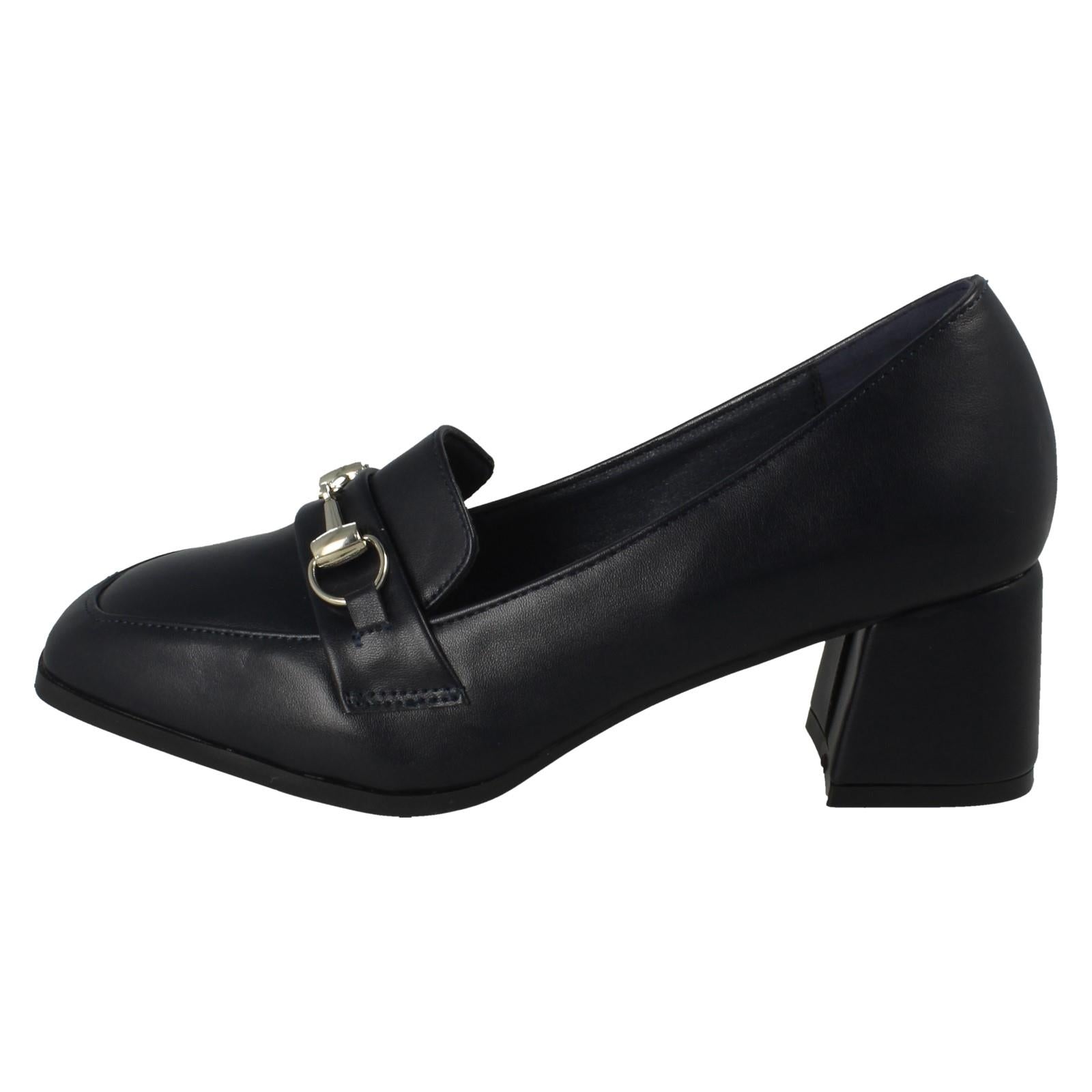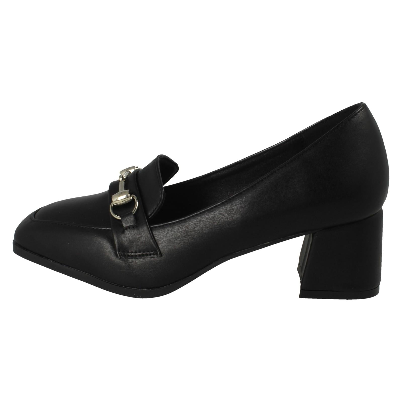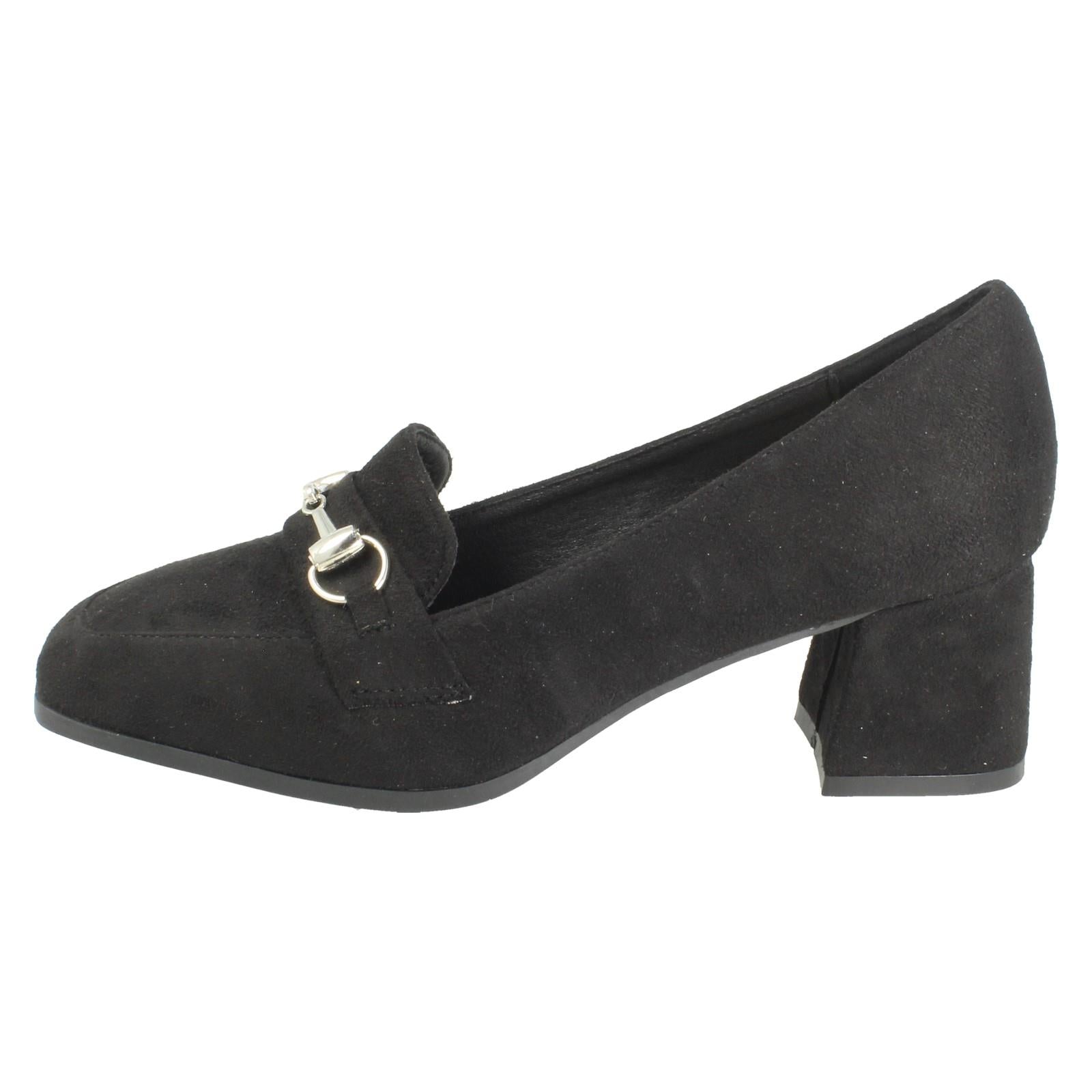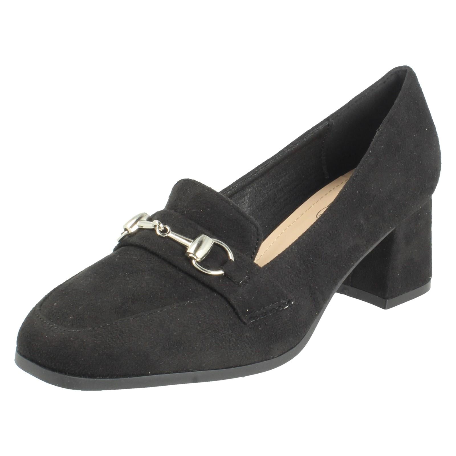 Ladies Spot On Buckle Detailed Slip On Mid Heel Court Shoe F90154