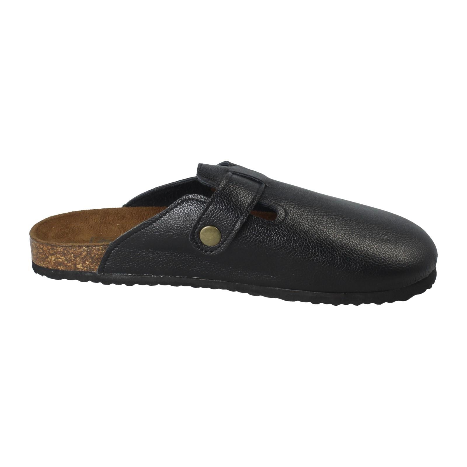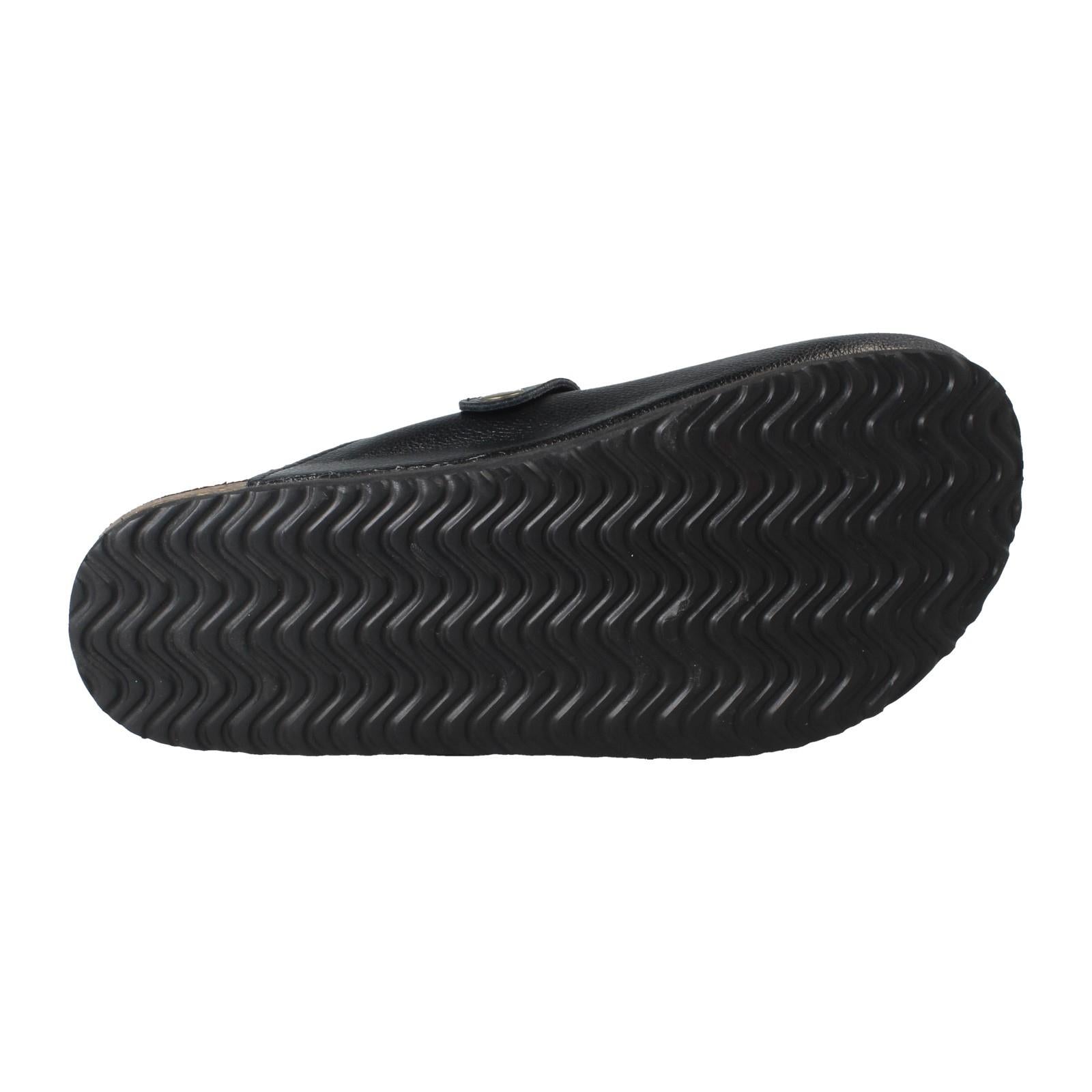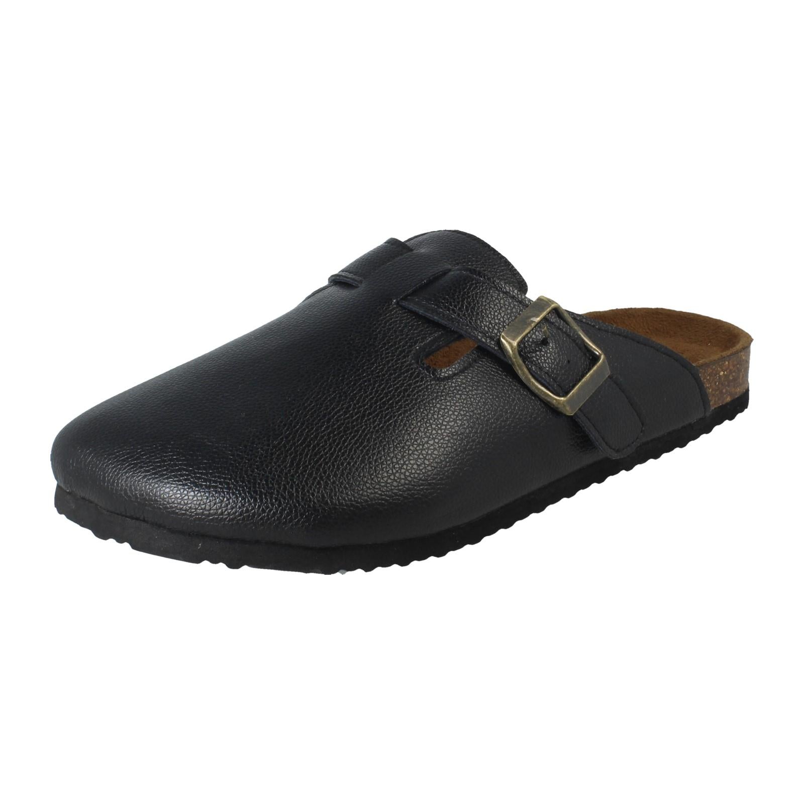 Down To Earth Ladies' Leather Slip-On Mules are your wardrobe's new shortcut to effortless chic. Just slide and conquer! The supple leather upper and snug textile lining embrace your foot, while that statement buckle elevates every step. Ditch the fuss; these comfy, synthetic-soled sandals promise stylish ease from pavement to patio.