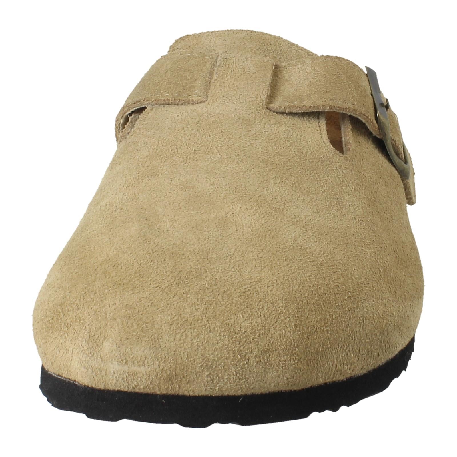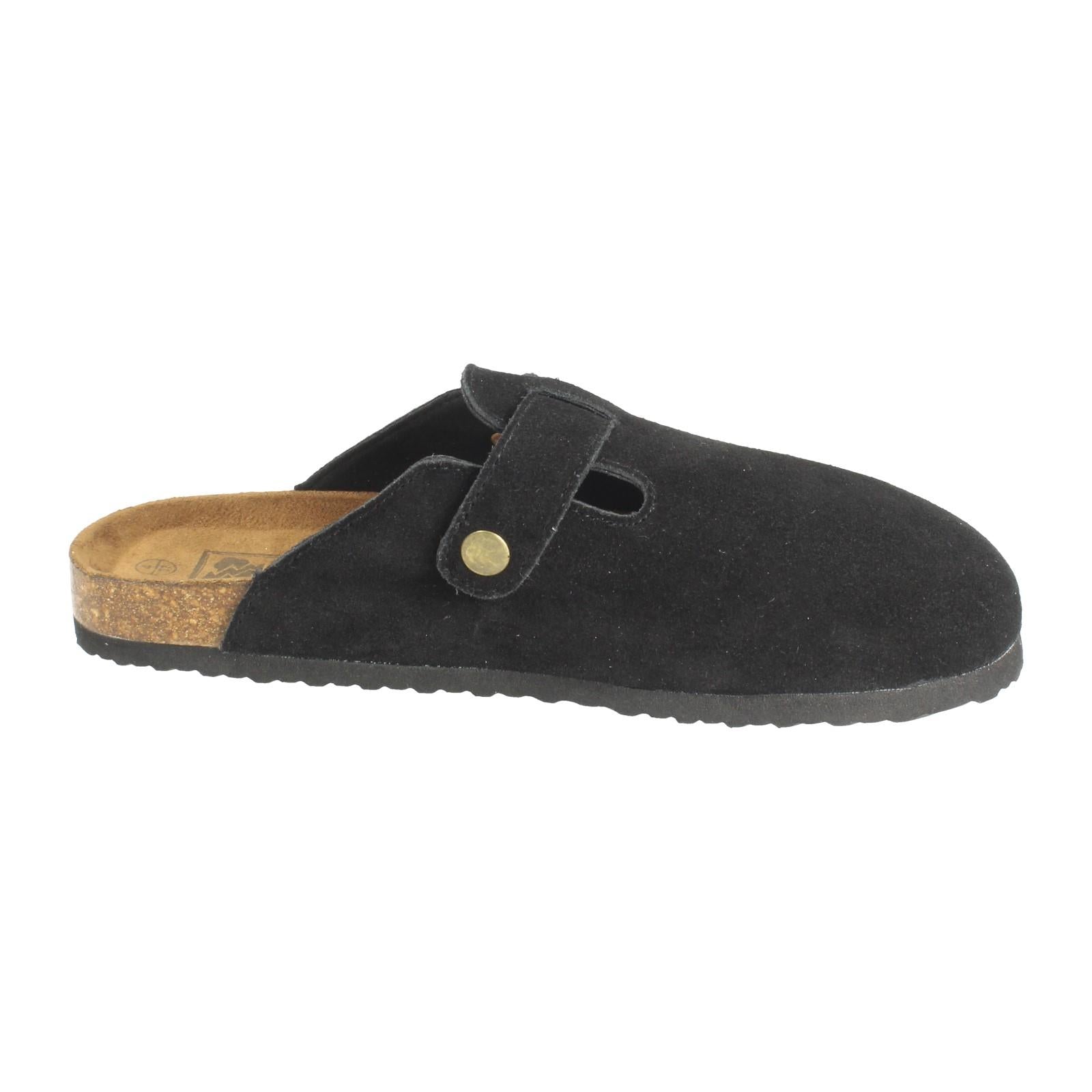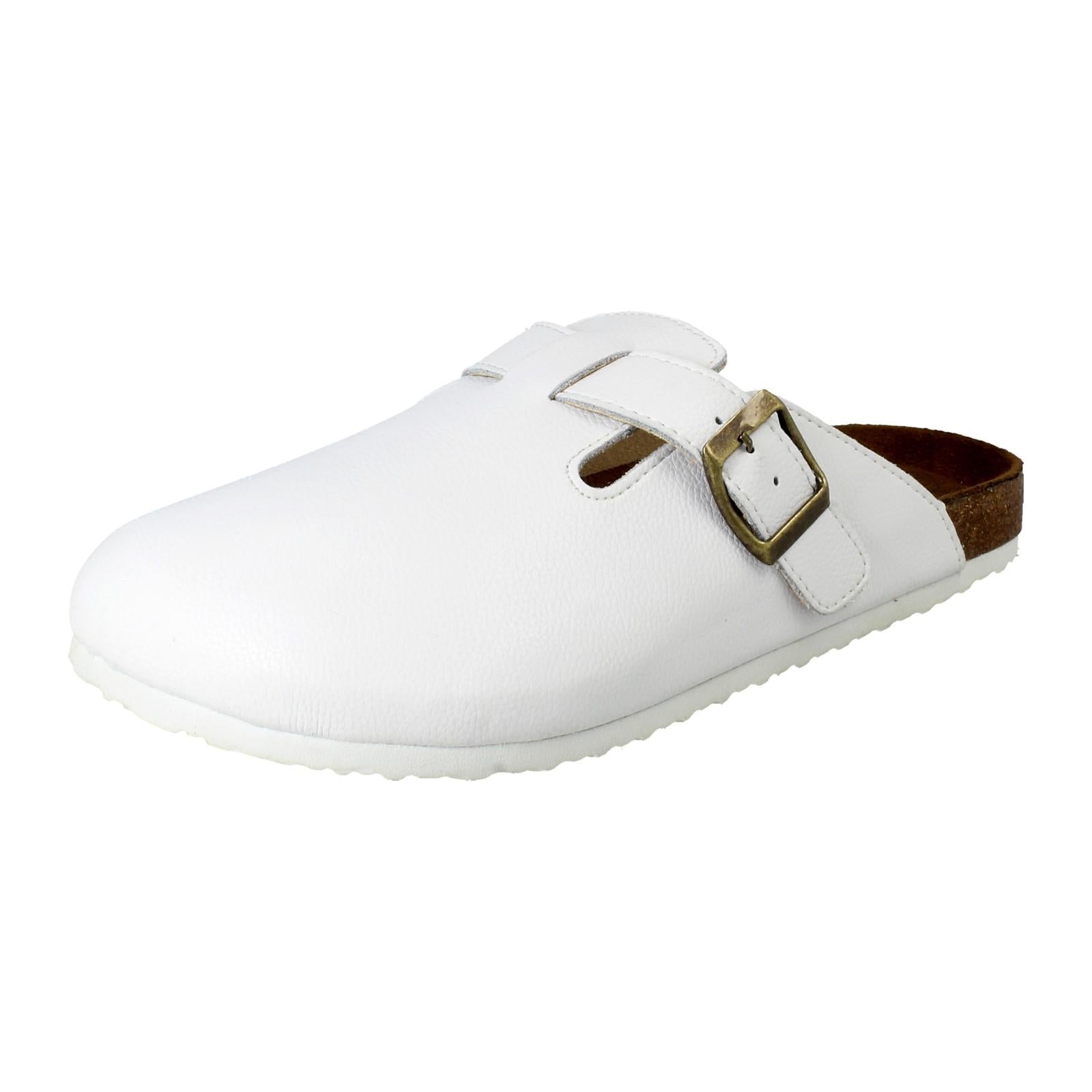 Down To Earth Ladies' Leather Slip-On Mules are your wardrobe's new shortcut to effortless chic. Just slide and conquer! The supple leather upper and snug textile lining embrace your foot, while that statement buckle elevates every step. Ditch the fuss; these comfy, synthetic-soled sandals promise stylish ease from pavement to patio.