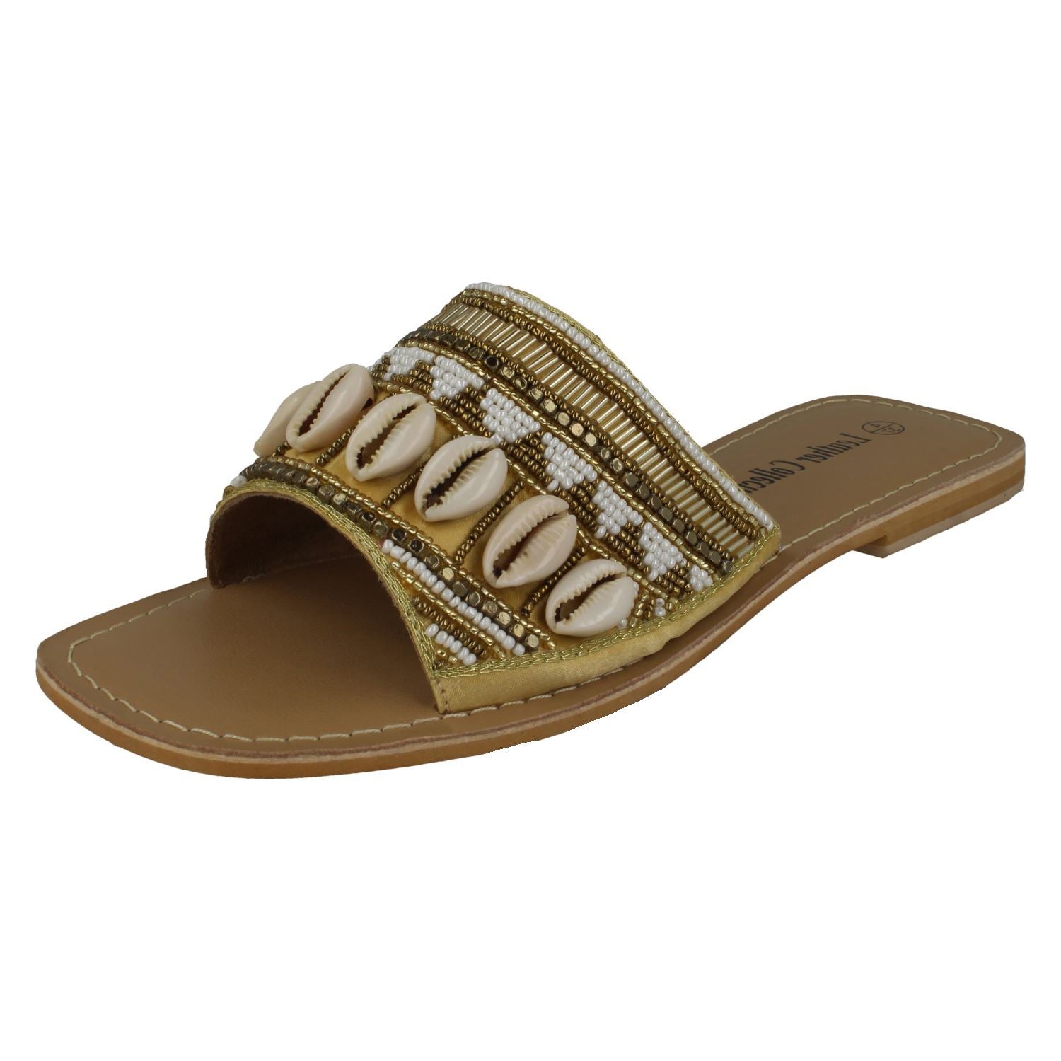 Leather Collection slip-on beaded mules effortlessly transform your summer wardrobe. Unpack that holiday feeling instantly as the premium leather hugs your foot and the sole cushions every stride. These chic, flat sandals inject a luxurious sparkle into everyday ease, allowing you to glide through warm evenings with unmatched style.