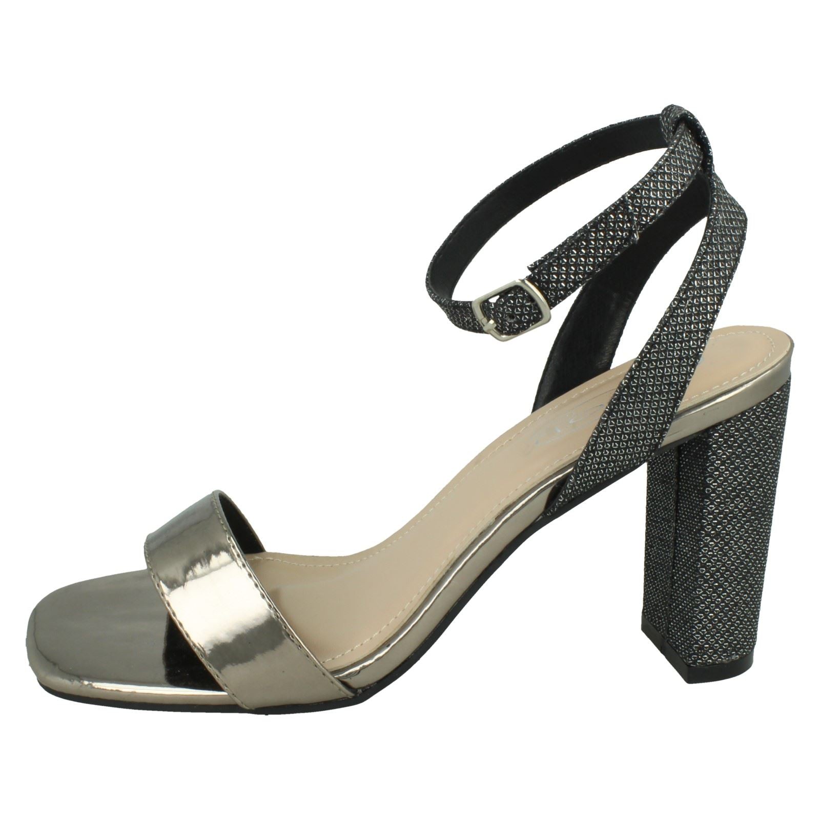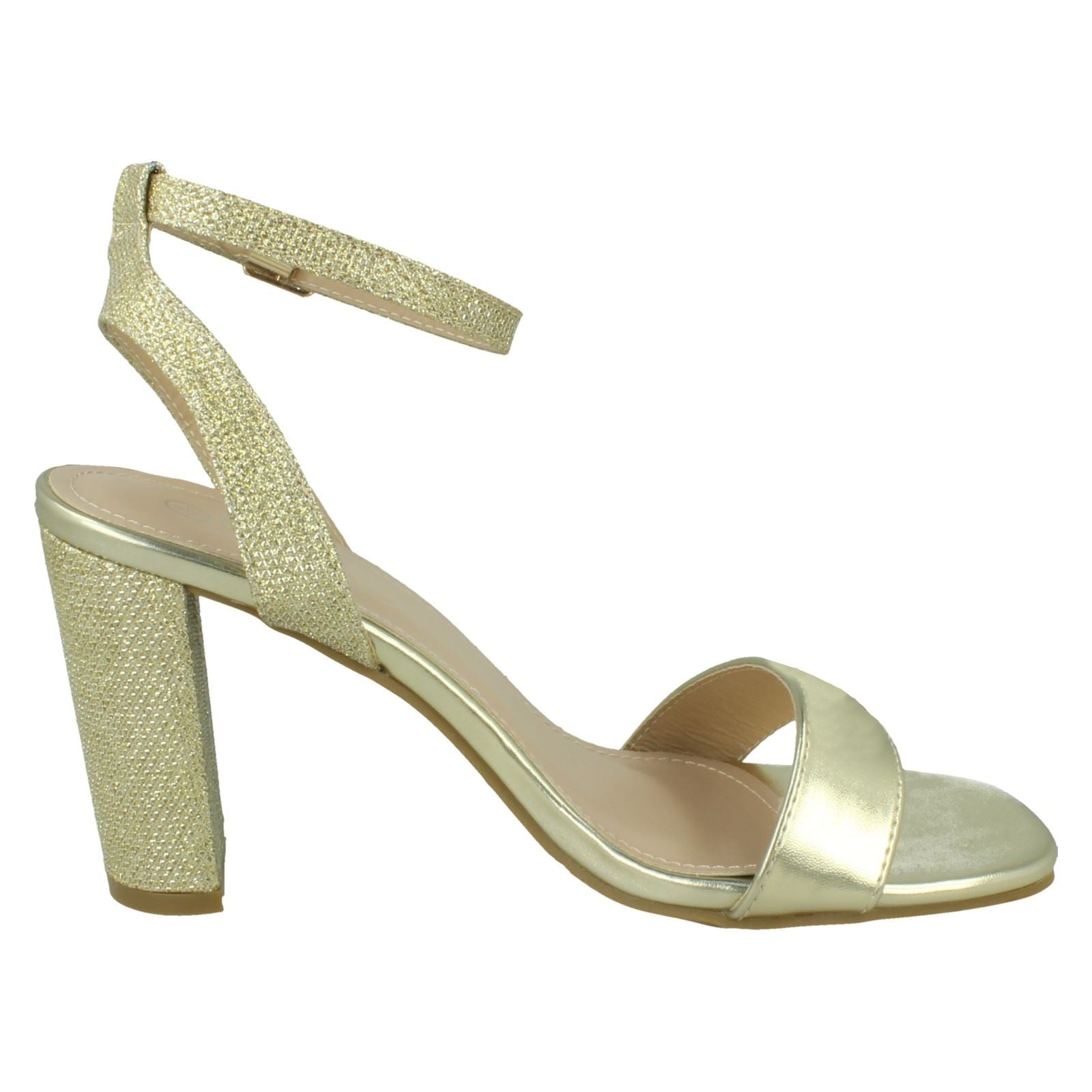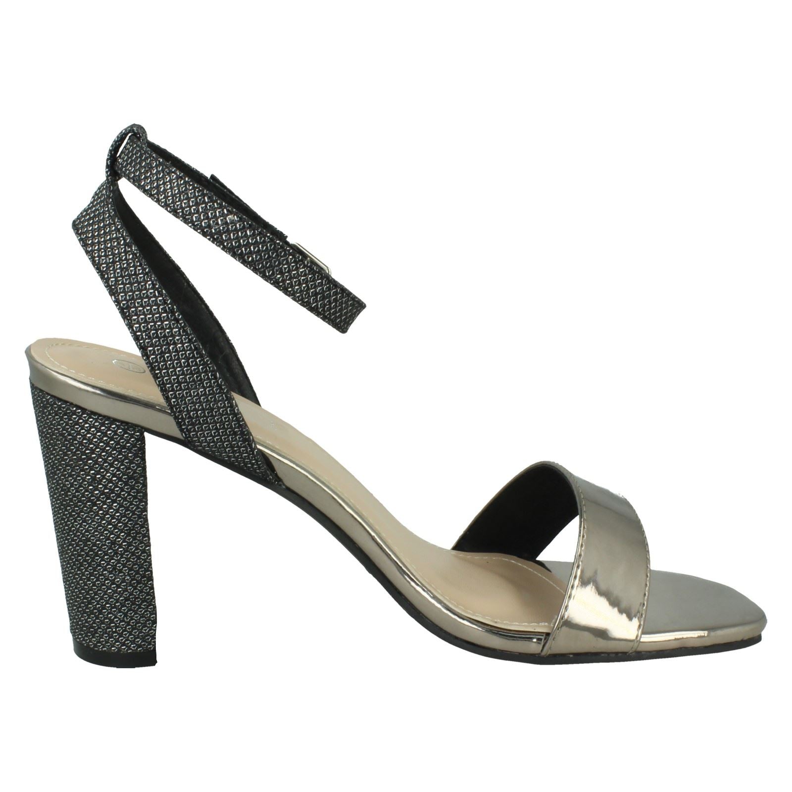 Ladies Spot On High Heel Sandal with Buckle Ankle Strap F12044