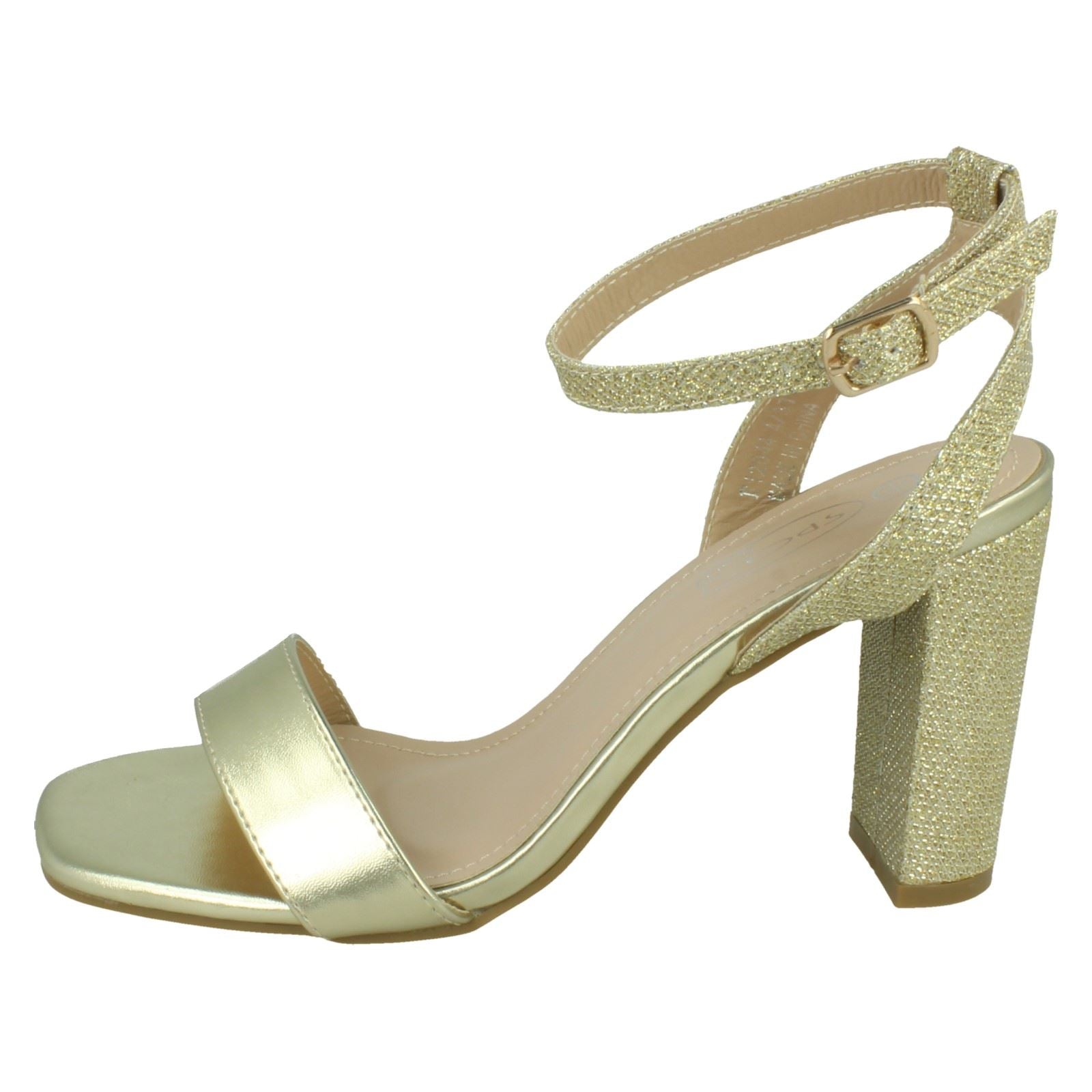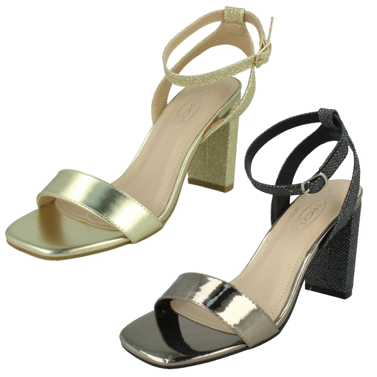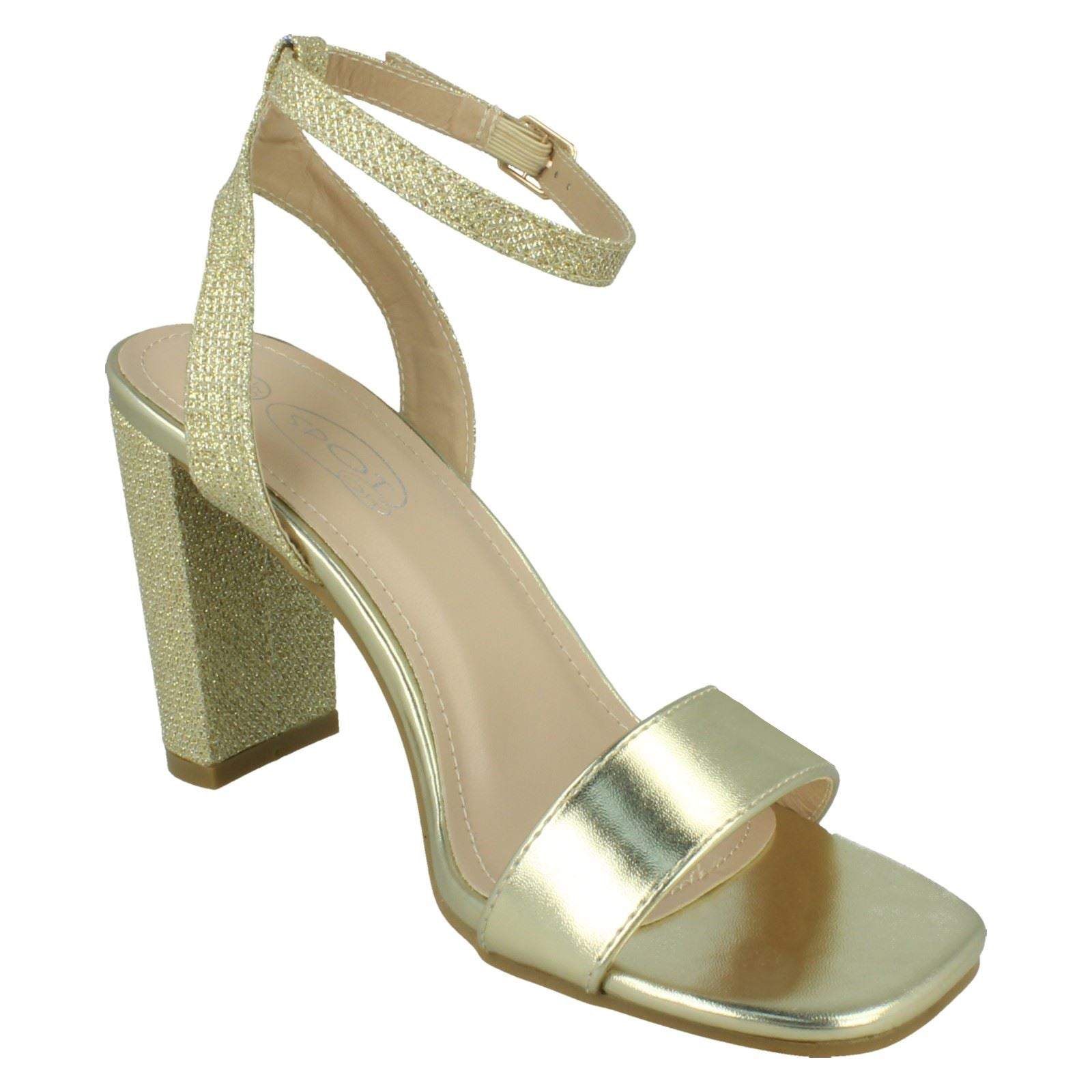 Ladies Spot On High Heel Sandal with Buckle Ankle Strap F12044
