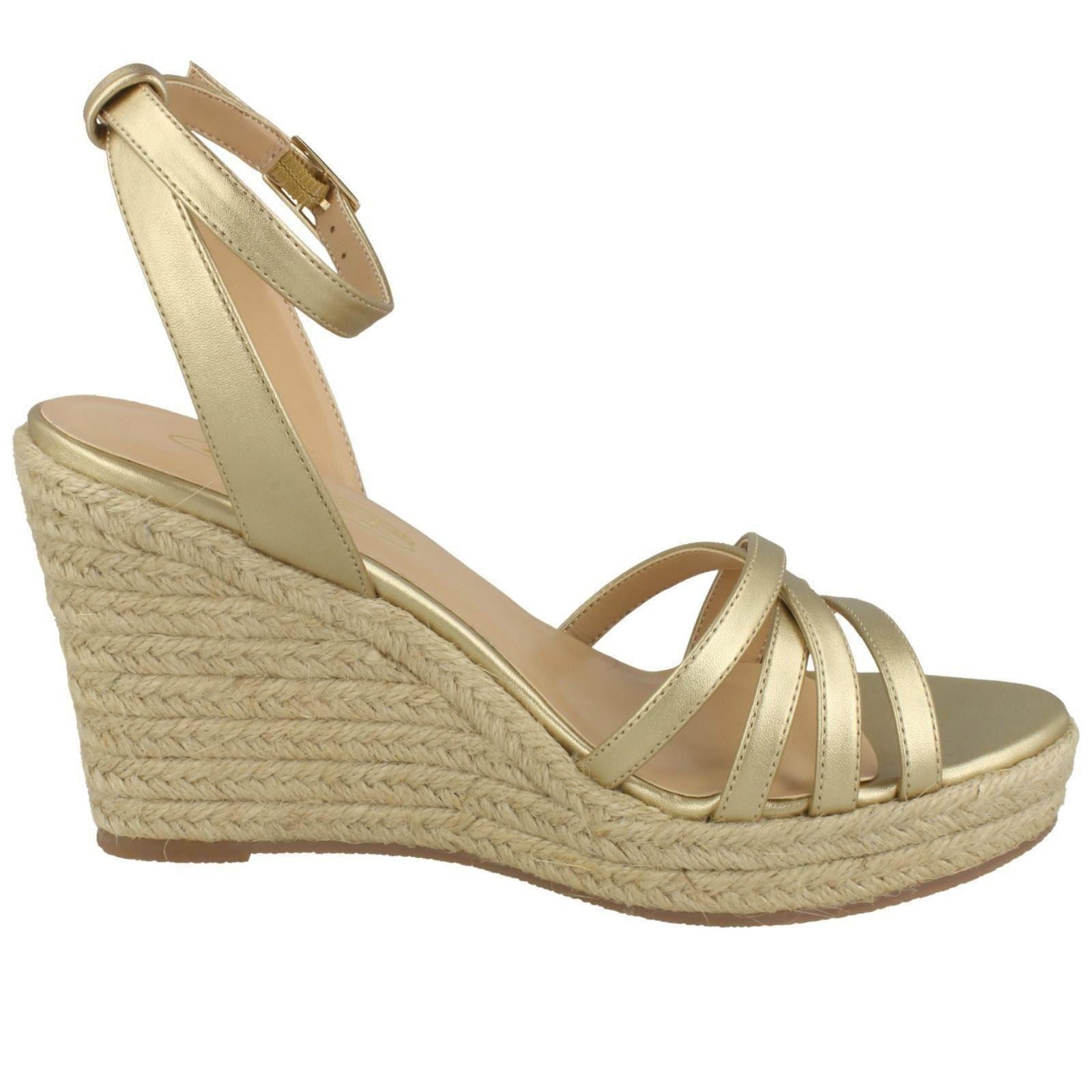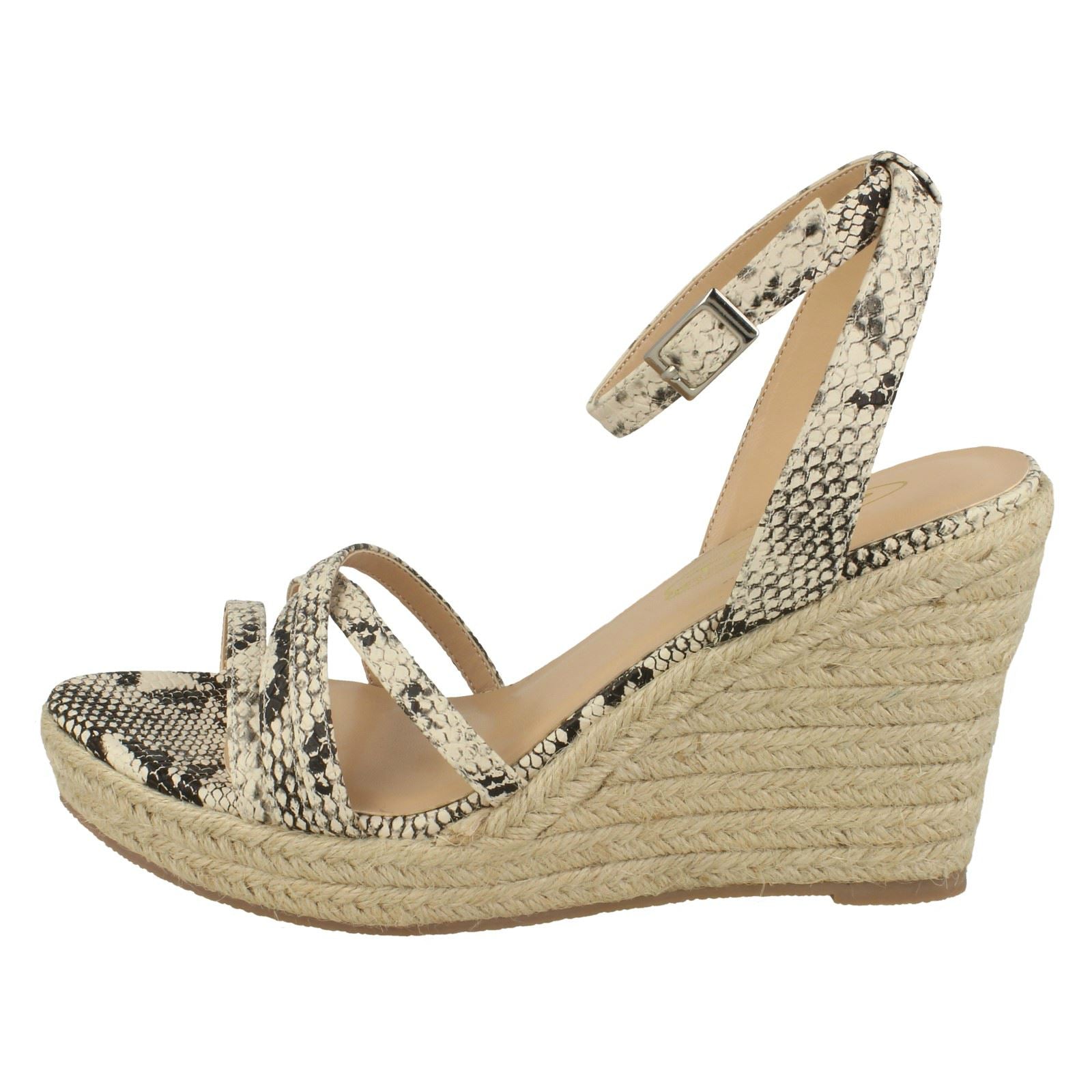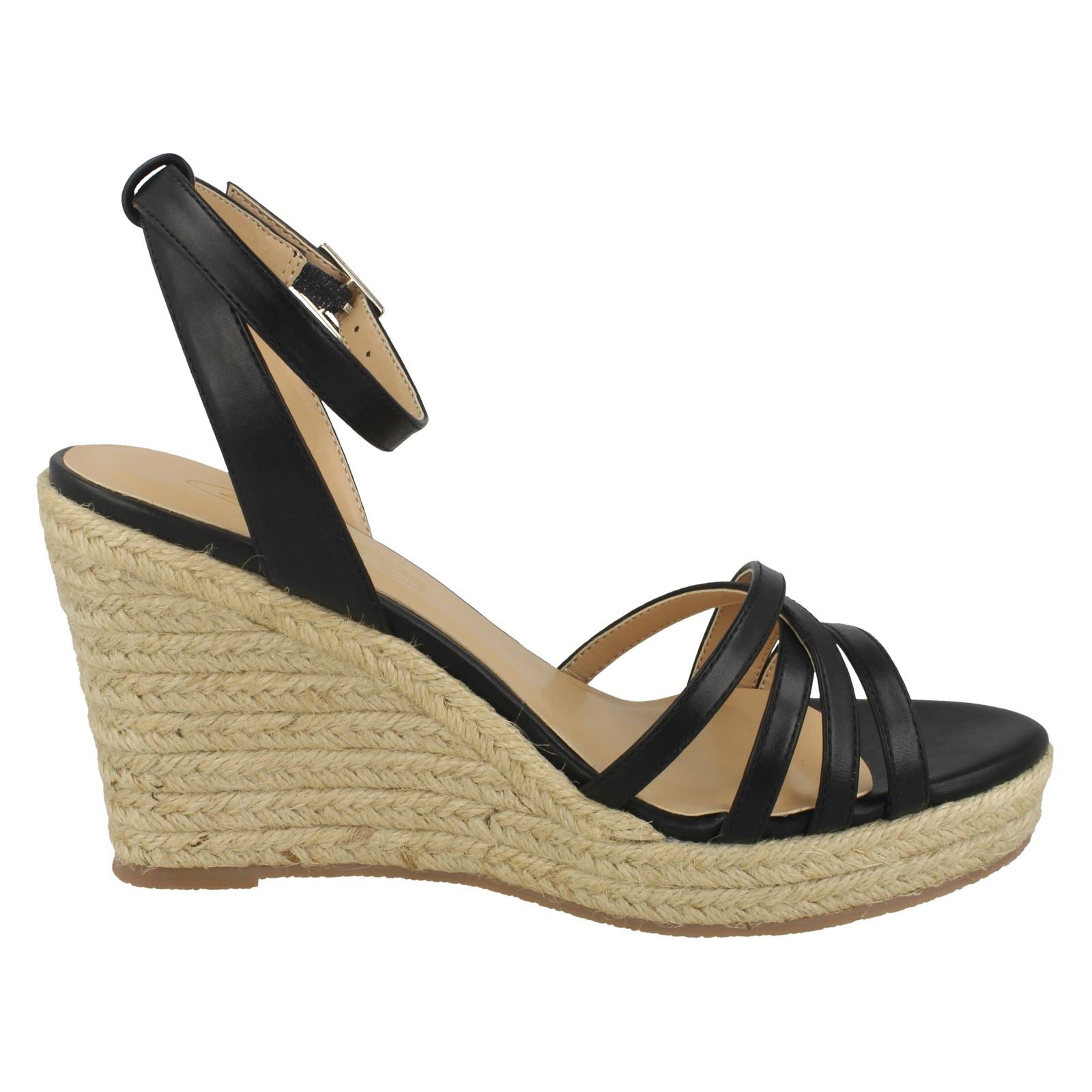 Ladies Spot On Rope Wedge Strappy Sandals F2275