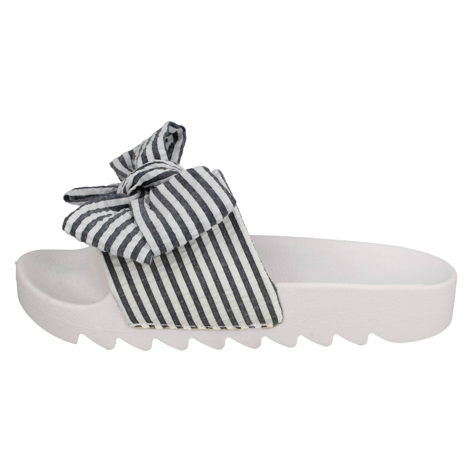 Ladies Spot On Striped Bow Vamp Sliders