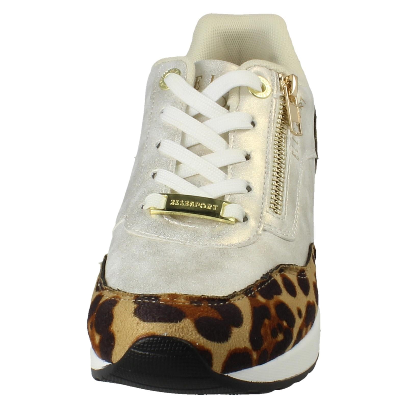 Sashay into your day with the **Elle Sport** Leopard Print Wedge Trainers. This fierce footwear fuses comfort with catwalk confidence, injecting an instant punch of wild style into any look. The synthetic upper and cushioned textile lining cradle your foot as the concealed wedge elevates your stance. Lace up and command attention—these trainers make every pavement your runway.