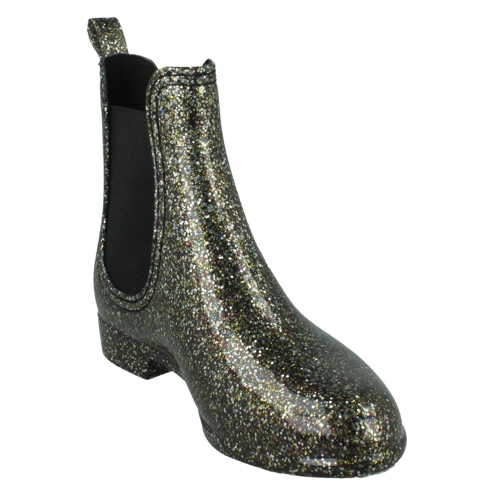 Ladies Spot On Glitter Ankle Wellingtons X1262