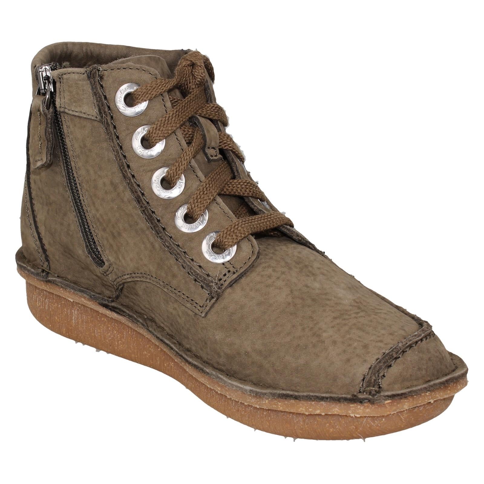 Ladies Clarks Lace Up Casual Ankle Boots Funny Cedar