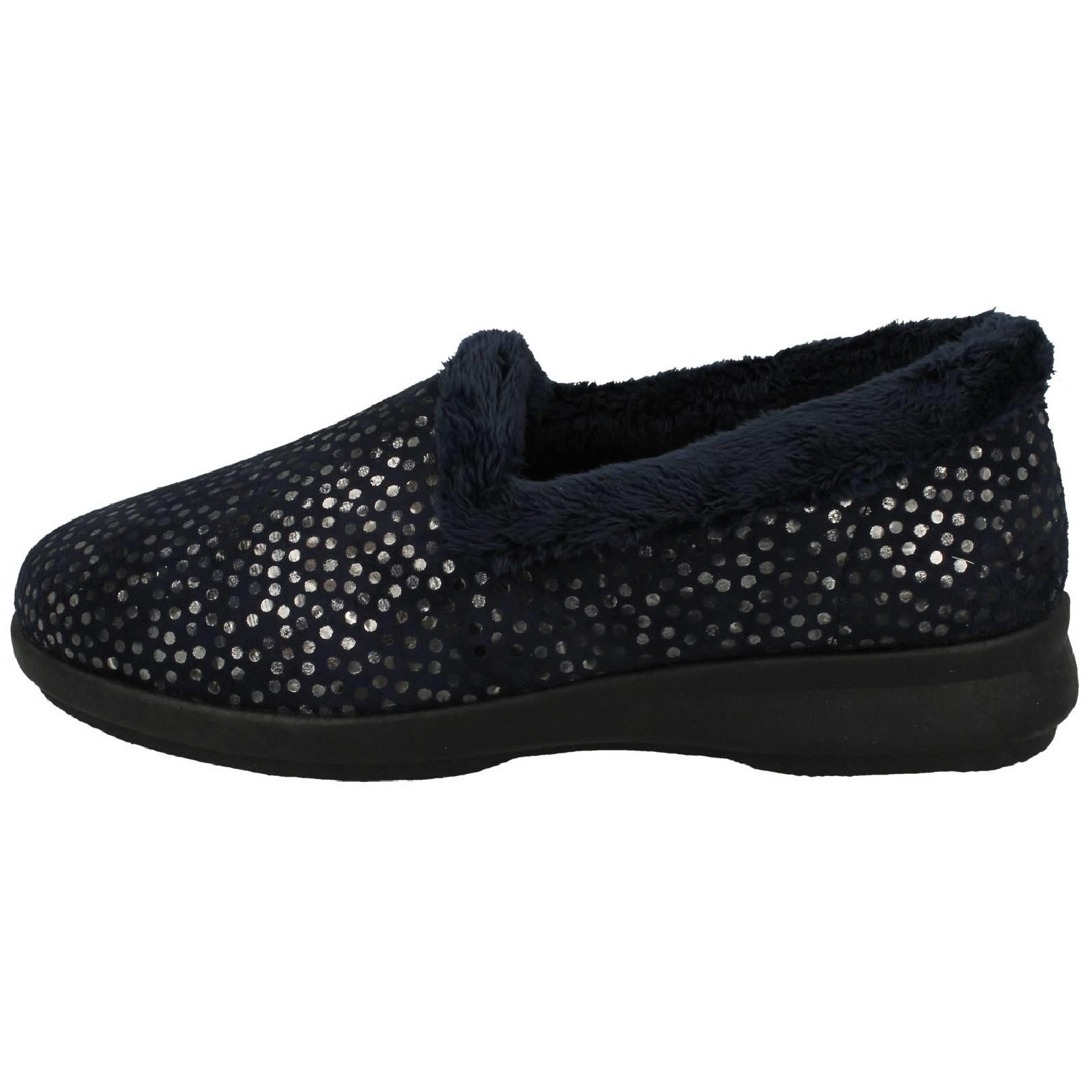 Ladies DB Shoes 2V Fitting Full Slippers With Fur Trim Spots