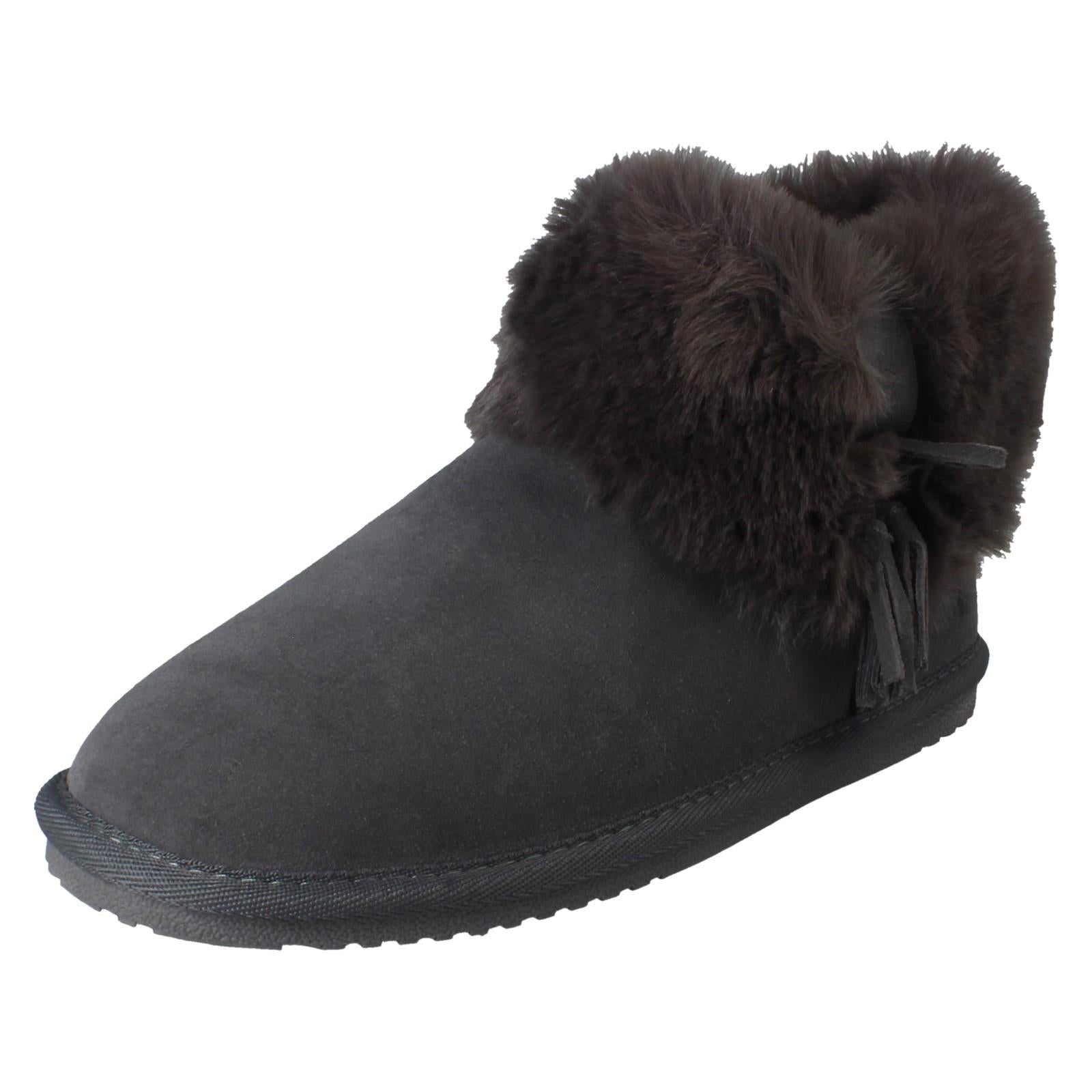 Ladies Hush Puppies Memory Foam Leather Warm Lined Bootie Slippers Ayana