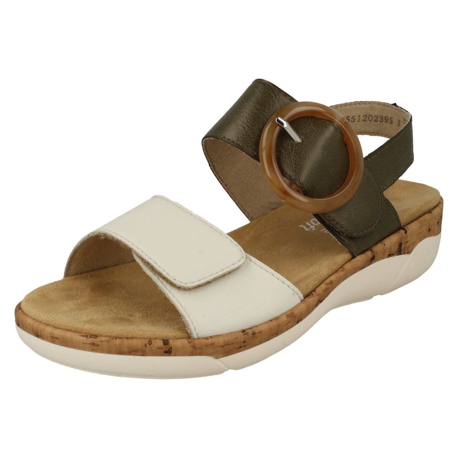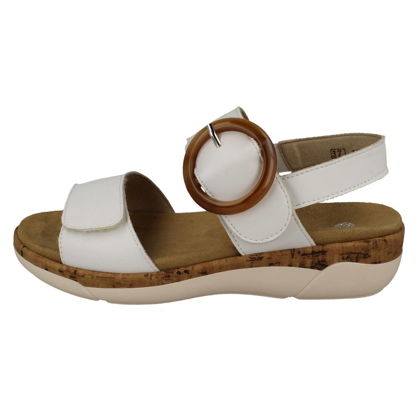 Remonte ladies, step into effortless style with the R6853 sandal. These leather upper, strappy beauties promise all-day bliss. The textile lining cuddles your foot, while the hook and loop fastening guarantees the perfect fit, ready for whatever your day demands. Forget fiddly buckles—these sandals seal the deal on comfort and chic. Stroll, saunter, and shine in synthetic-soled perfection.
