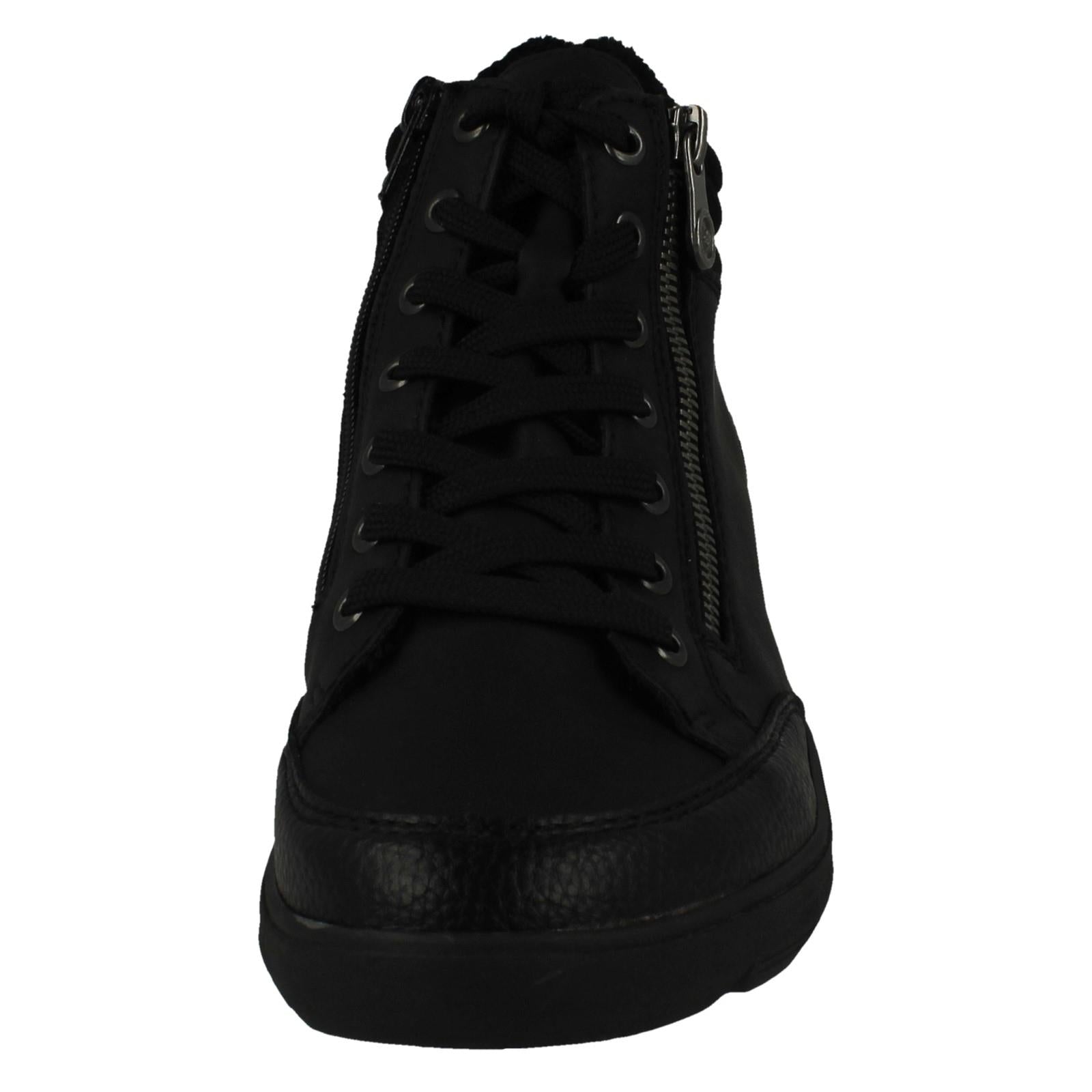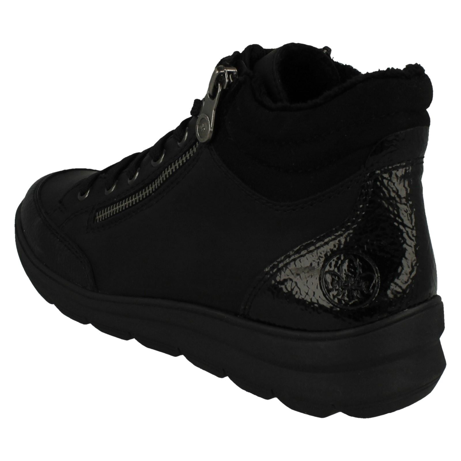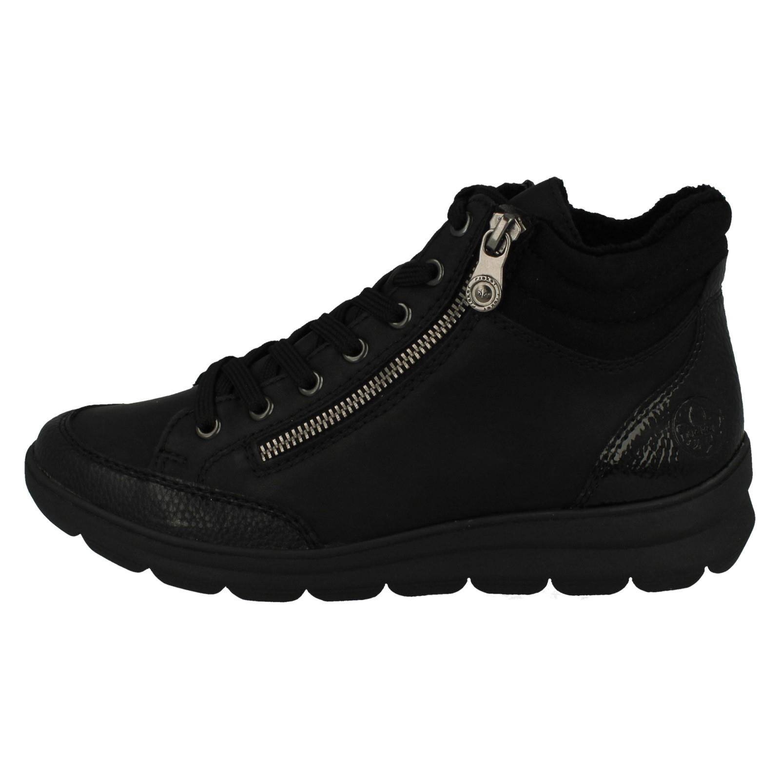 Rieker Z0040 Ladies Casual Ankle Boots conquer every path with confidence. This dual-fastening boot (zip and lace) secures your stride, while the snug textile lining cocoons your feet in all-day comfort. Don't just walk—own the pavement. Step into instant, chic versatility with this essential synthetic boot.