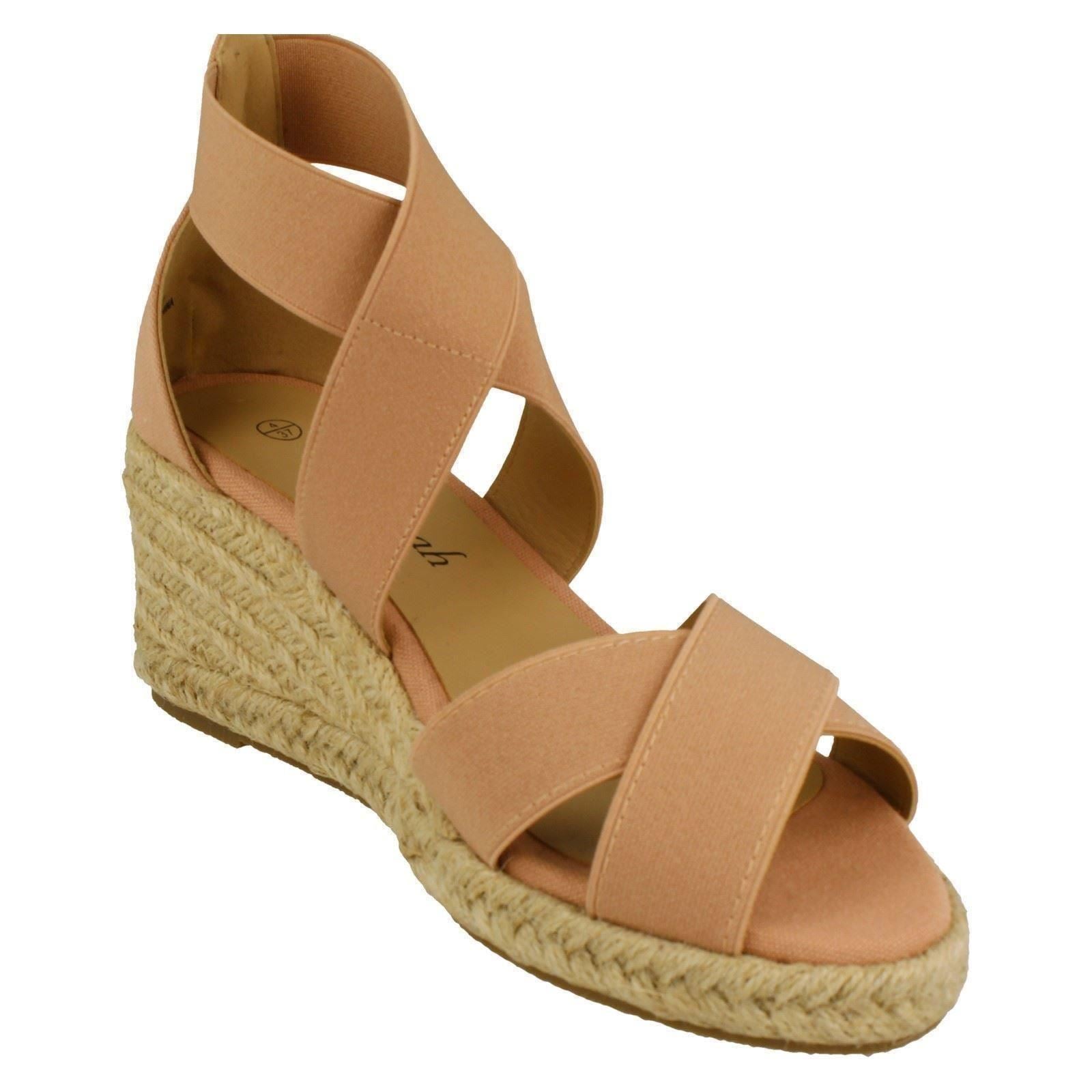 Ladies Savannah Elasticated Strap Wedge Heeled Sandals F2300
