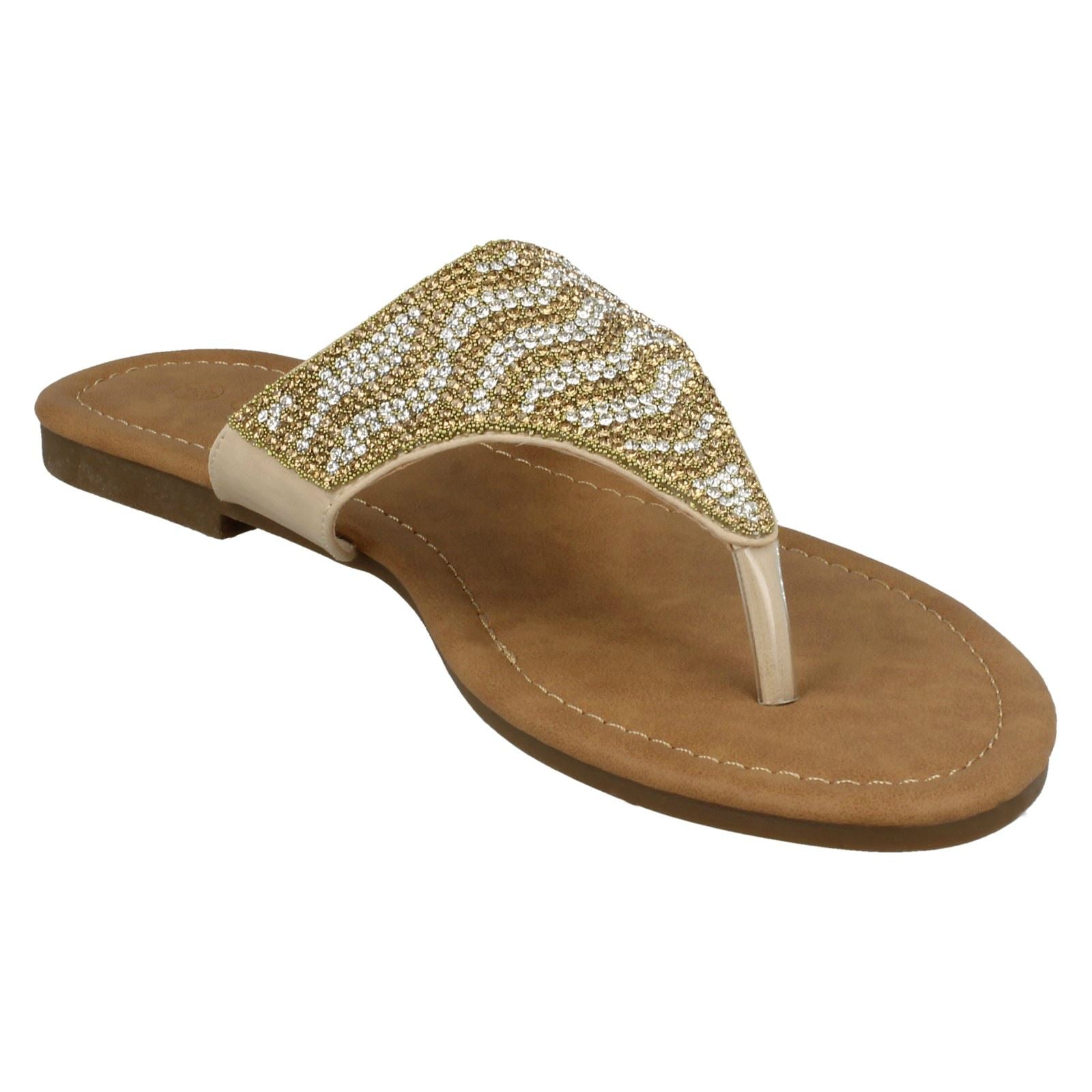 Ladies Savannah Flat Diamante Toe Post Sandals