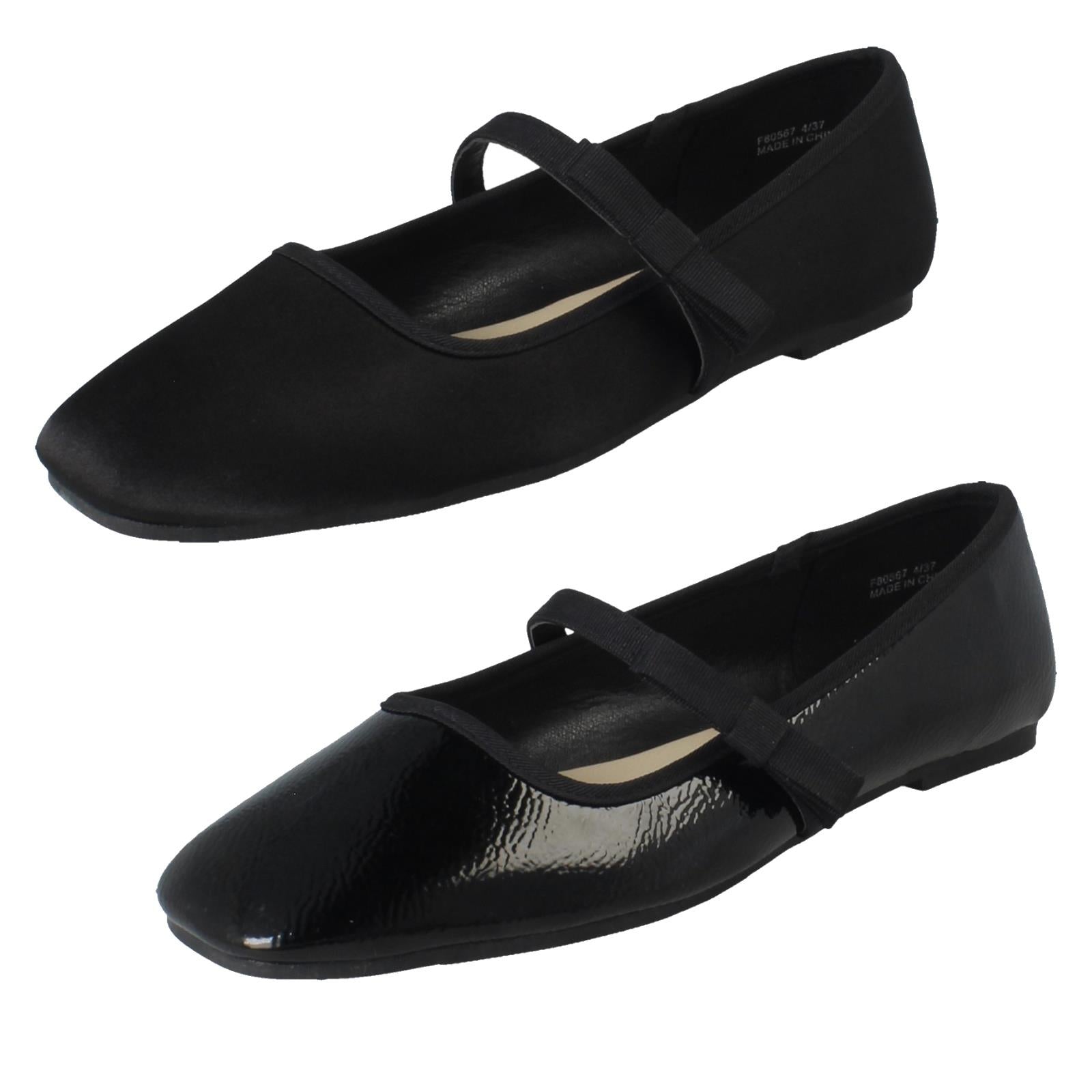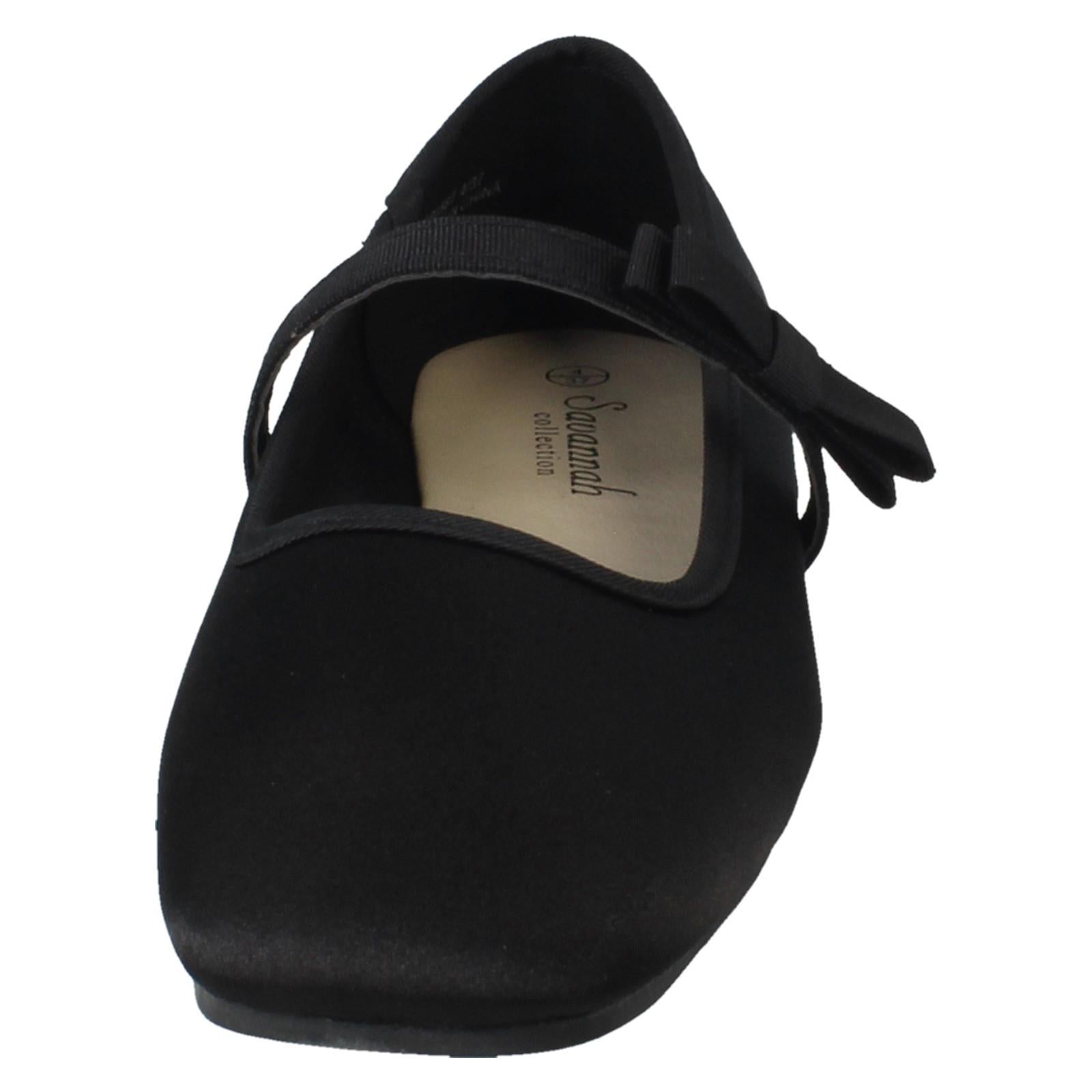 Ladies Savannah Slip On Elastic Strap Bow Detailed Mary Jane Shoes F80567