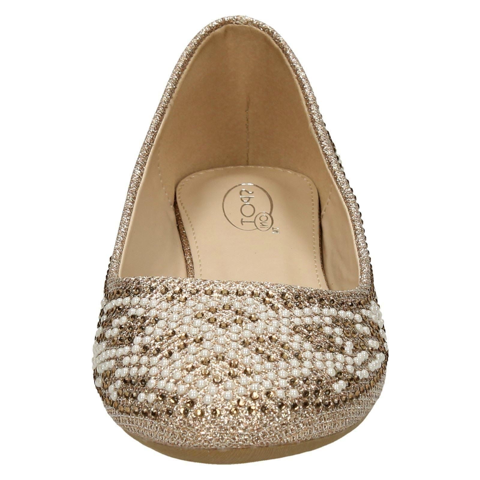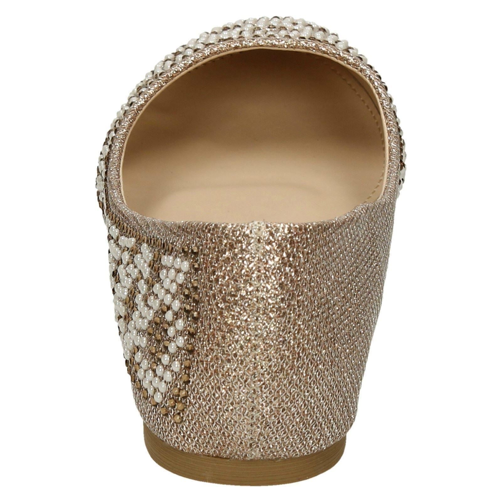 Ladies Spot On Diamante Bead Ballerinas F80385