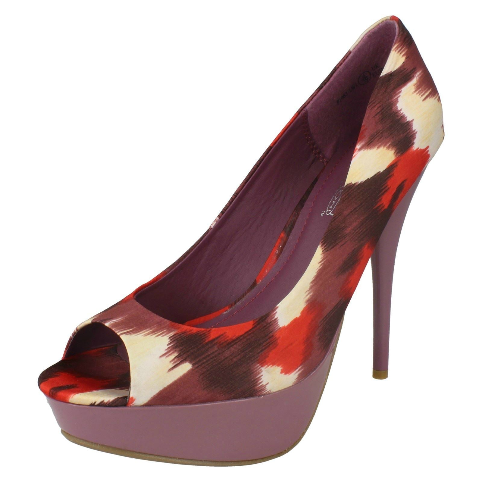 Ladies Spot On High Heel Platform Open Toe Court Shoe