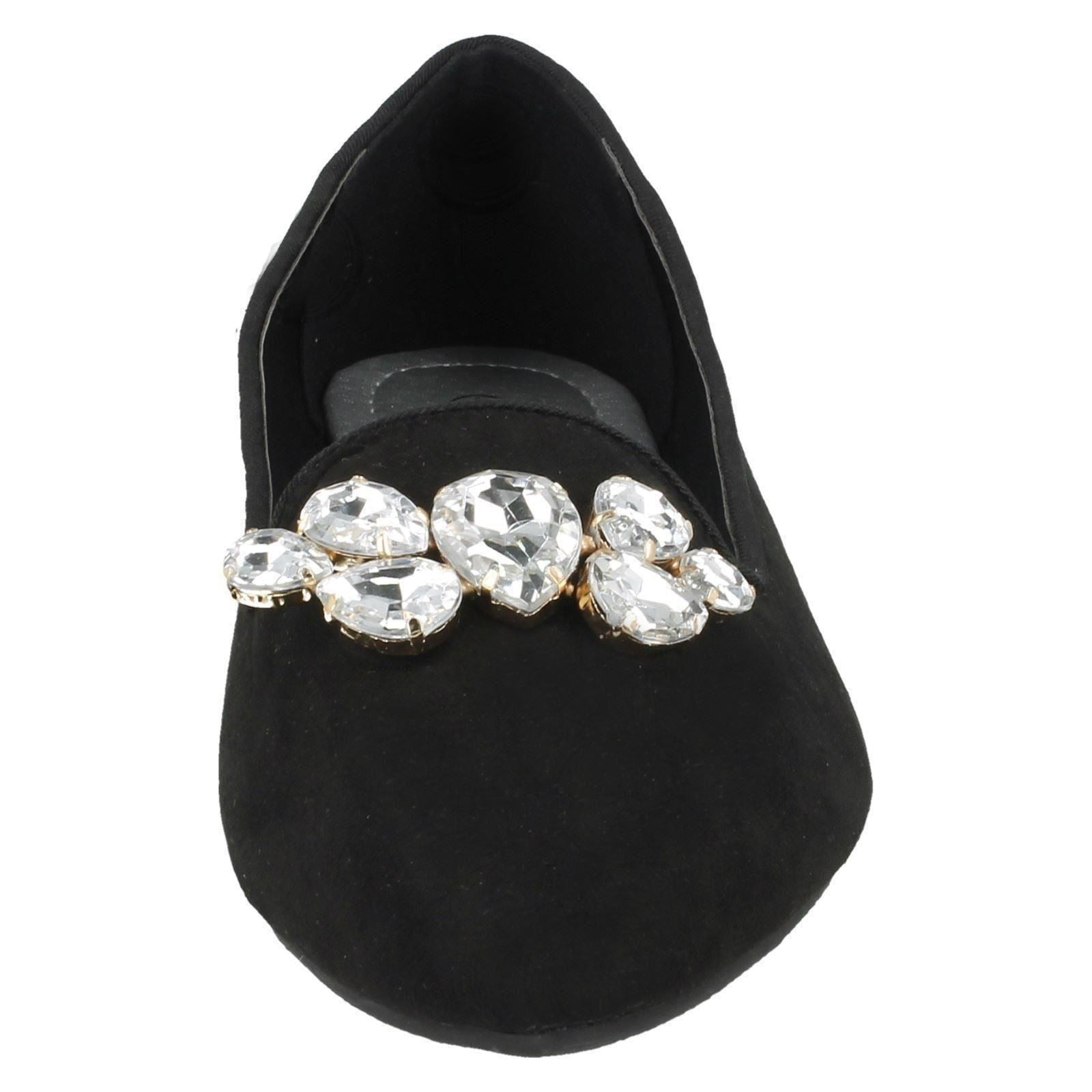 Ladies Spot On Jewel Trim Vamp Ballerinas