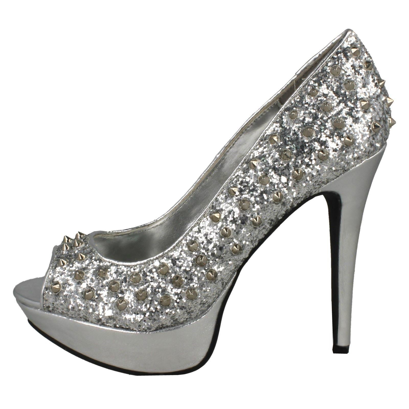 Ladies Spot On Slip On Glitter Heels