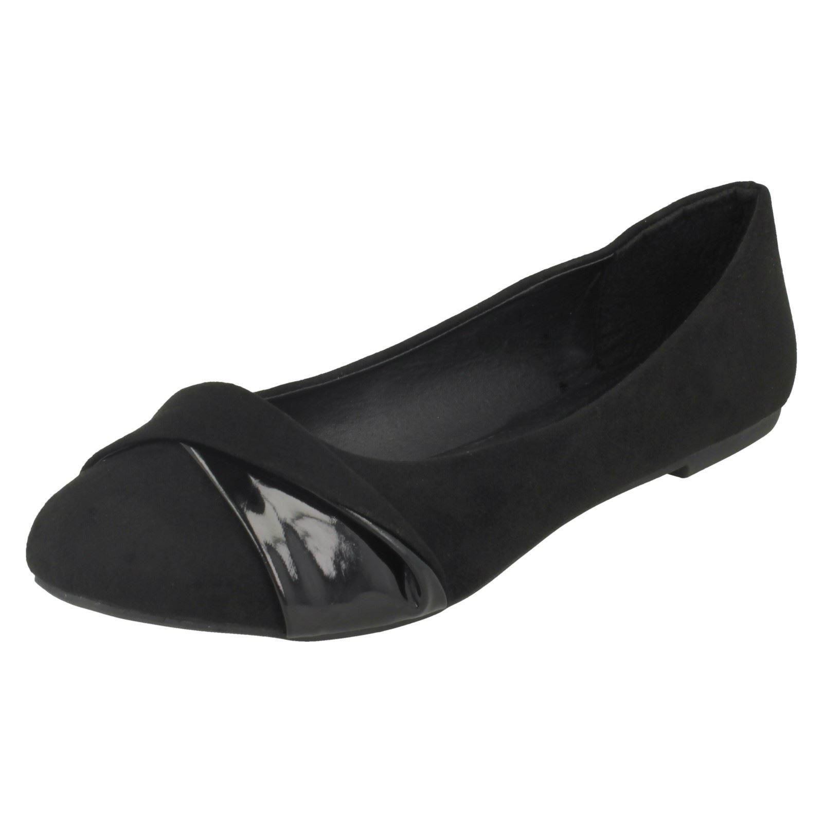 Ladies Spot On Twist Vamp Trim Ballerinas